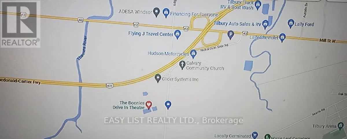 Cross Streets: Morris Road. ** Directions: Morris Rd. For more information, please click the Brochure button. This unique property presents an excellent opportunity for a transient campground or recreational commercial venture. Zoned CT-5 (Recreational/Tourist Commercial), it offers high exposure with direct visibility from Highway 401 and is located just one minute off the highway. Centrally situated between Windsor and Chatham, and only 45 minutes from the Canada/USA border, its ideally positioned for travelers and tourism-based business. Currently operating as The Boonies Drive-In Theatre and Campground, the property spans 11.5 acres, including 5.5 acres of mature trees and 6 acres of grassed, open space - perfect for flexible development or expansion. Infrastructure includes municipal water with a 2-inch line, a 1-inch high-pressure natural gas line, and underground high-voltage service leading to a padmount transformer with central metering. With established utilities and zoning in place, this property is ready for your vision - whether continuing its current use or reimagining it for a new recreational venture. (id:27476)
