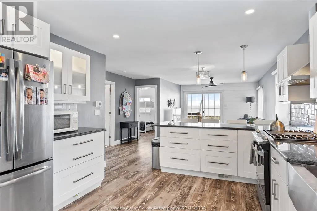 from county rd 22, North on Rourke line then west on Caille 1458 Caille Ave - Lakefront Retreat in Lakeshore Enjoy stunning sunrises and serene lake views at this beautifully updated waterfront ranch on Lake St. Clair. Renovated in 2019, the home features a modem kitchen with gas stove and granite countertops,a stylish 3-piece bath with glass shower, new windows, upgraded attic and crawl space insulation, and a tankless water heater. The open-concept layout maximizes natural light and lake views throughout. Step outside to your private shoreline--perfect for boating, paddle boarding or simply unwinding with a view. The backyard is equipped with a gas hookup for your BBQ, making outdoor entertaining even more effortless. A rare opportunity to own a tum-key lakefront property in a peaceful and sought-after location. Whether you're looking for a serene weekend getaway or a full-time waterfront lifestyle, this is your opportunity to own a little piece of paradise on Lake St. Clair. (id:27476)