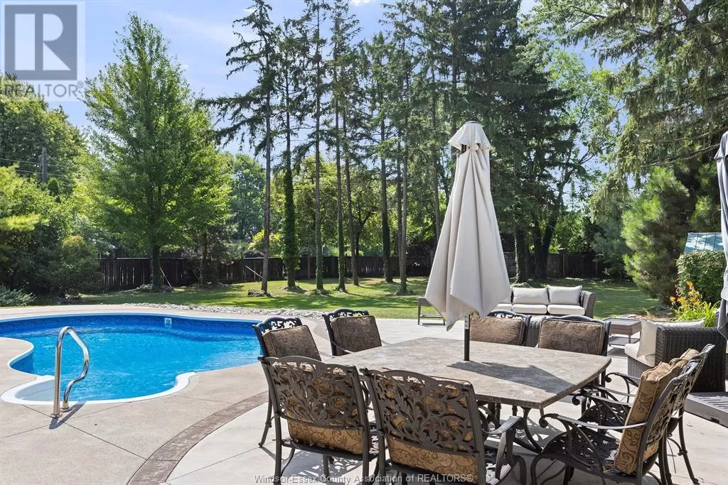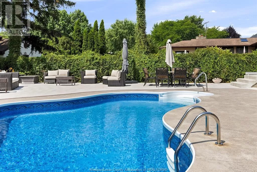 A beautifully maintained two-story home set on an extra-deep, park-like lot over 290 feet deep in a prime location near the water. This 4-bedroom, 5-bathroom home features a spacious and open-concept main floor with oak trim, custom cherry wood kitchen cabinetry, a large island, and high-end stainless steel appliances including a 36"" Thermador dual-fuel stove and Electrolux fridge/freezer combo. The main floor includes a bedroom with a full ensuite, while the upper level offers a large primary suite with walk-in closet and ensuite, plus another bedroom with its own walk-in closet. Enjoy both a natural wood-burning fireplace and a gas fireplace, along with hardwood and ceramic floors throughout. Granite staircase leading to the basement. The home is equipped with smart automation for garage doors, lighting, pool pump, and security system, as well as a tankless water heater, ERV, high-efficiency furnace and AC, central vacuum, and video surveillance around the perimeter. The professionally landscaped backyard is a true paradise, featuring a saltwater sports pool with a new liner (2024), updated salt system, heater (2023), safety cover, and a raised patio with glass railings overlooking the yard. Additional features include a large double garage with hot/cold water tap and counter, rear access to the basement and garage, gas BBQ hookup, three storage sheds, stair access to storage above the garage and below the sunken sunroom, and an irrigation system for the front yard. Premium lot in a highly desirable area. (id:27476)