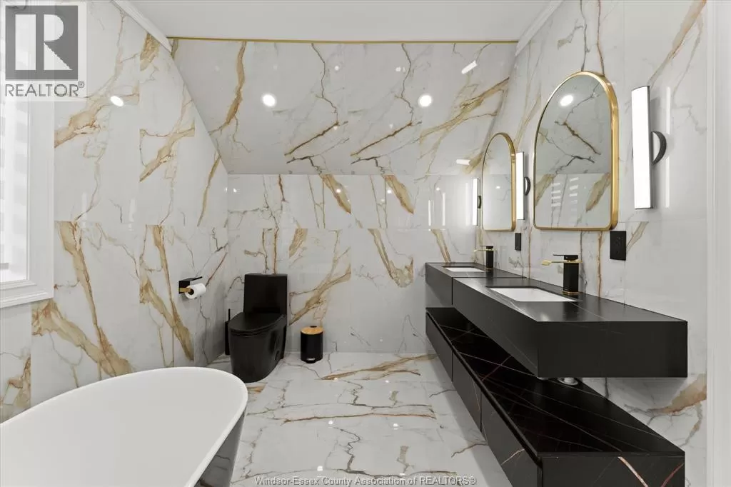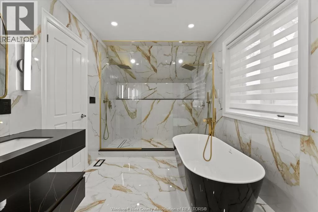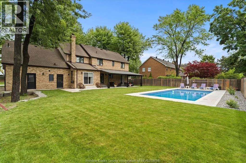 Step into luxury with this completely renovated 2 story home, showcasing exceptional craftsmanship and modern finishes throughout. Featuring rich hardwood floors, new kitchen, bathrooms and elegant new staircases, every detail has been thoughtfully designed. The spacious main floor includes a formal living room, office, a cozy family room with natural fireplace & a stylish main floor bathroom. SECOND LEVEL offers 4 generously sized bedrooms including luxurious Primary BDRM WITH 5 PC ENSUITE BATH with porcelain tiles, a soaking tub, and shower. An additional full bath with double sinks and an upstairs laundry room. FULL UNFINISHED BSMNT READY FOR FINISHING. PRIVATE BACKYARD WITH NEW HEATED, salted INGROUND POOL. NEW COVERED BACK PORCH, MAINTENANCE-FREE, 3 CAR GARAGE (2 TANDEM). The long driveway provides ample parking, and the home is ideally located near waterfront views and scenic walking trails. Don't miss the chance to live in one of Russell Woods most sought-after neighborhoods! (id:27476)