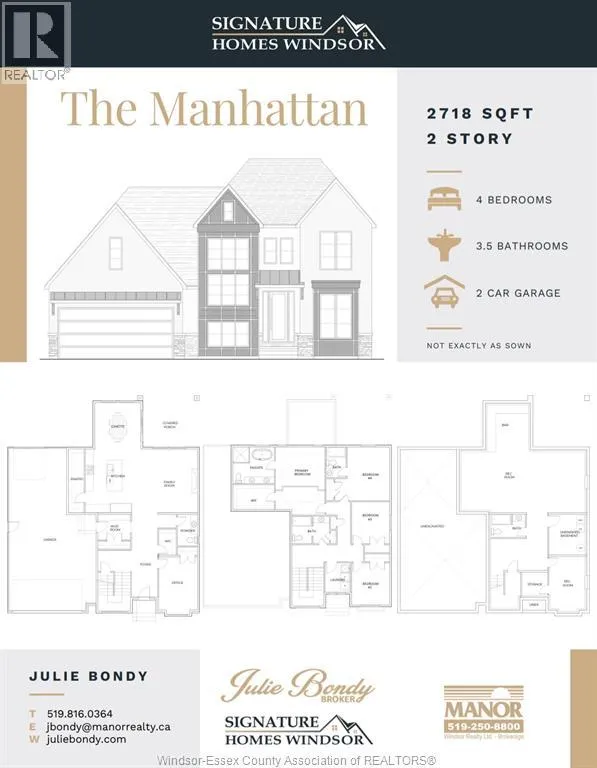 WELCOME TO SIGNATURE HOMES WINDSOR NEWEST 2 STORY MODEL ""THE MANHATTAN "" NOW AVAILABLE IN LAKESHORE IN OAKWOOD ESTATES. ONLY 3 BUILD LOTS AVAILABLE AND ALSO MANY OTHER MODELS AND STYLES TO CHOOSE FROM AT OUR WEBSITE WWW.SIGNATUREHOMESWINDSOR.COM . EXTRA DEEP LOTS 60.38' X 174' THIS 2 STY DESIGN HOME FEATURES GOURMET KITCHEN W/LRG CENTRE ISLAND FEATURING GRANITE THRU-OUT AND HUGE WALK IN KITCHEN PANTRY AND BEAUTIFUL DINING AREA OVERLOOKING REAR YARD W COVERED REAR PORCH . OPEN CONCEPT FAMILY ROOM WITH WAINSCOT OR MODERN STYLE FIREPLACE. 4 UPPER LEVEL BEDROOMS. 3.5 BATHS INC STUNNING MASTER SUITE WITH TRAY CEILING, ENSUITE BATH WITH HIS & HER SINKS WITH CUSTOM GLASS SURROUND SHOWER WITH FREESTANDING GORGEOUS TUB. AND A SECONDARY BEDROOM W ENSUITE. 2ND FLOOR LAUNDRY. 2025 POSSESSION. SIGNATURE HOMES EXCEEDING YOUR EXPECTATION IN EVERY WAY! (id:27476)