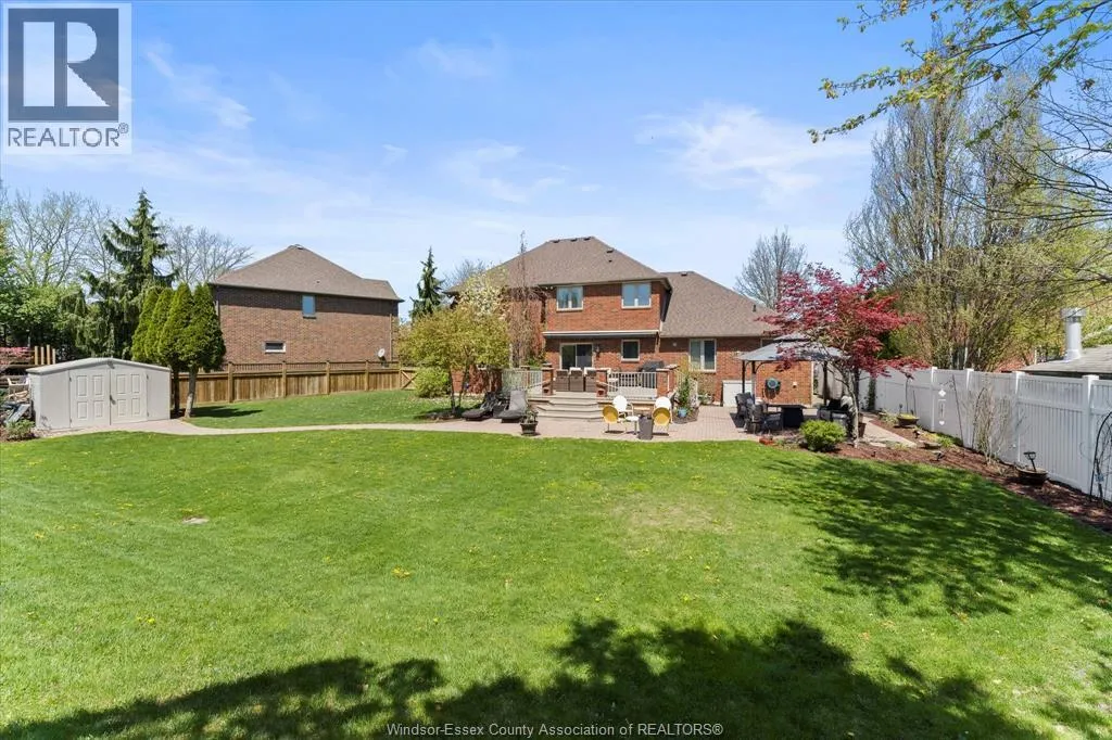 OLD TECUMSEH ROAD TO WALSTEDT WAY TO END OF STREET, TURN RIGHT ON GEORGE KENNEDY WAY. INCREDIBLE VALUE TO BE FOUND IN THIS DESRABLE LAKESHORE BRICK TO ROOF 2 STOREY ON A QUIET CUL DE SAC, GRAND FOYER WITH OPEN STAIRCASE, FORMAL LIVINGROOM AND DININGROOM WITH HARDWOOD FLOORS, FRENCH DOORS WITH BEVELLED GLASS, CROWN MOULDING, SPACIOUS EAT-IN KITCHEN WITH ISLAND OPEN TO FAMILYROOM WITH GAS FIREPLACE, PATIO DOORS TO A INCREDIBLE CONCRETE PATIO WITH POWER AWNING AND A GAS LINE FOR THE BBQ AND FAMILY ENTERTAINMENT, MAINFLOOR OFFICE, LAUNDRY ROOM, 2ND FLOOR BOASTS 4 SPACIOUS BEDROOMS INCLUDING THE LARGE MASTER SUITE WITH WALK-IN CLOSET A BRIGHT 5 PIECE ENSUITE, ,ADITIONAL PATIO AREA, PRIVATE LANDSCAPED YARD WITH STORAGE SHED. UPDATED ROOF, FURNACE AND AIR CONDITIONING, SPRINLER SYSTEM{ FRONT AND REAR YARDS} , ALARM, GARAGE WITH HOT/COLD WATER, REVERSE OSMOSIS WATER SYSTEM. HOME HAS NEW PEX WATERLINES THROUGH-OUT{ JULY 2025}NO KITEC PLUMBING. FULL HIGH UNFINISHED BASEMENT WITH ROUGHED-IN PLUMBING FOR A 4TH WASHROOM, INSULATED AND READY TO FINISH. DO NOT HESITATE ON THIS BEAUTIFUL HOME. PRICED TO SELL! (id:27476)