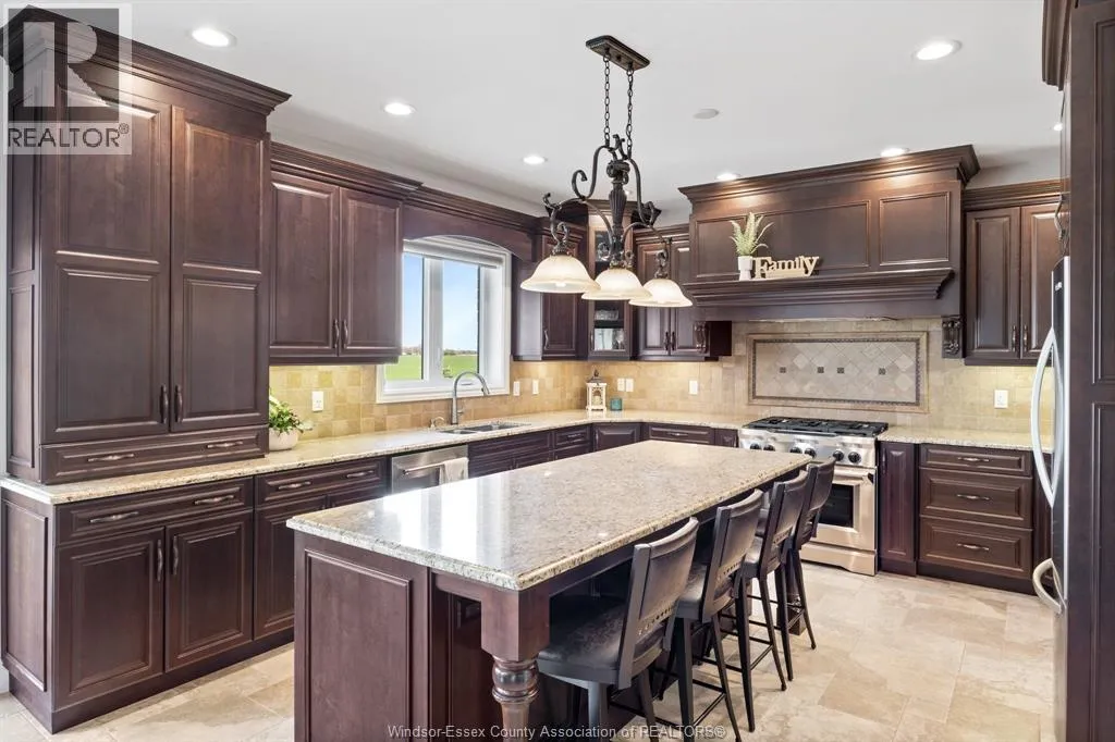 MANNING TO NORTH TALBOT Welcome to this meticulously maintained Brick & Stone 2story home ,on 1.13 acres with peaceful country side surroundings with 3 car garage with epoxy flooring, offering 4+2 bedrooms, 4 full baths, all hardwood & porcelains thru out (No carpeting) and full of natural light. Chefs style kitchen(Waynes Custom kitchen) with top of the line stainless steel appliances, beautiful great room w/fireplace, office/den, and main floor master w/ensuite and main floor laundry, all custom window treatments thru out. Perfect in law suite with its own entrance, 2nd kitchen, family room and 2 additional bedrooms. Sound proof flooring and walls thru out, and roughed in floor heating in basement and garage. Back covered patio overlooking beautiful serene landscape with in ground sprinkler system security and alarm system with cameras included. Pride of Ownership and truly a pleasure to show! (id:27476)
