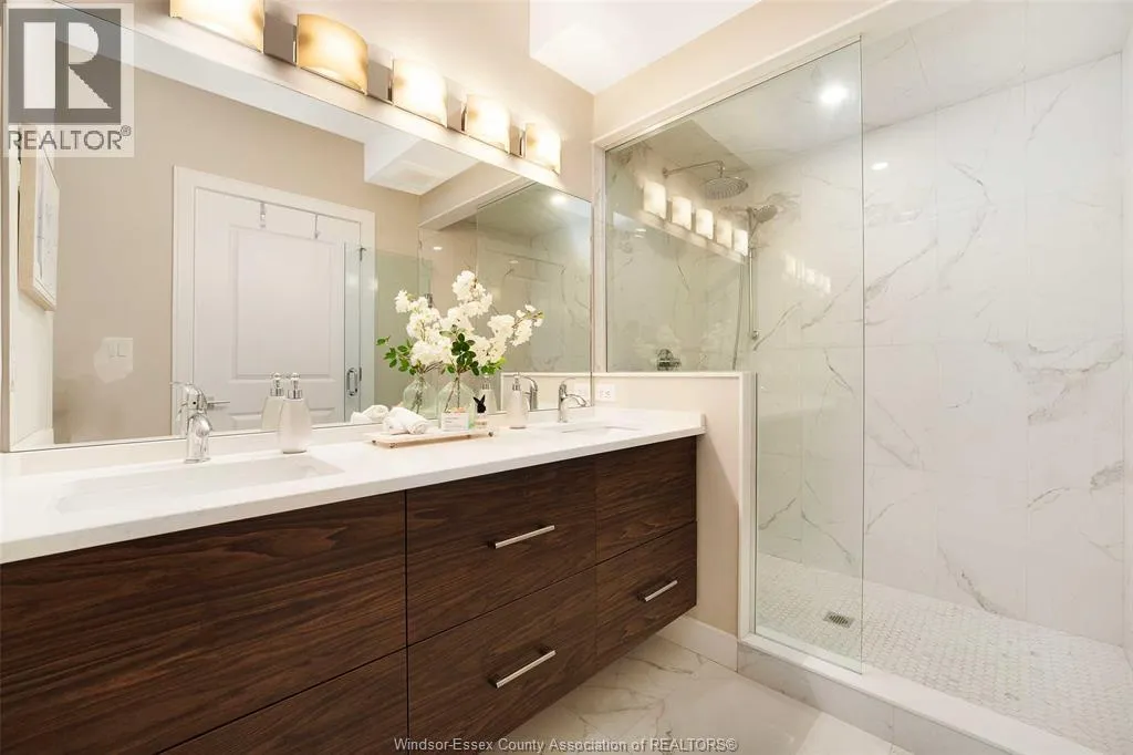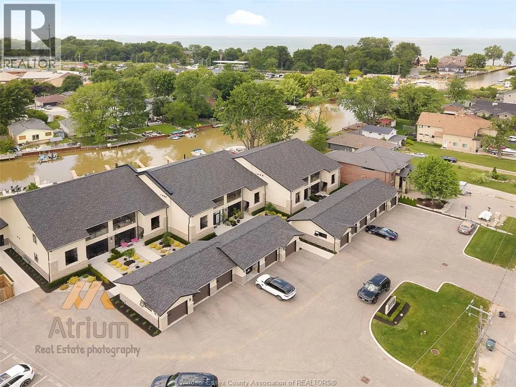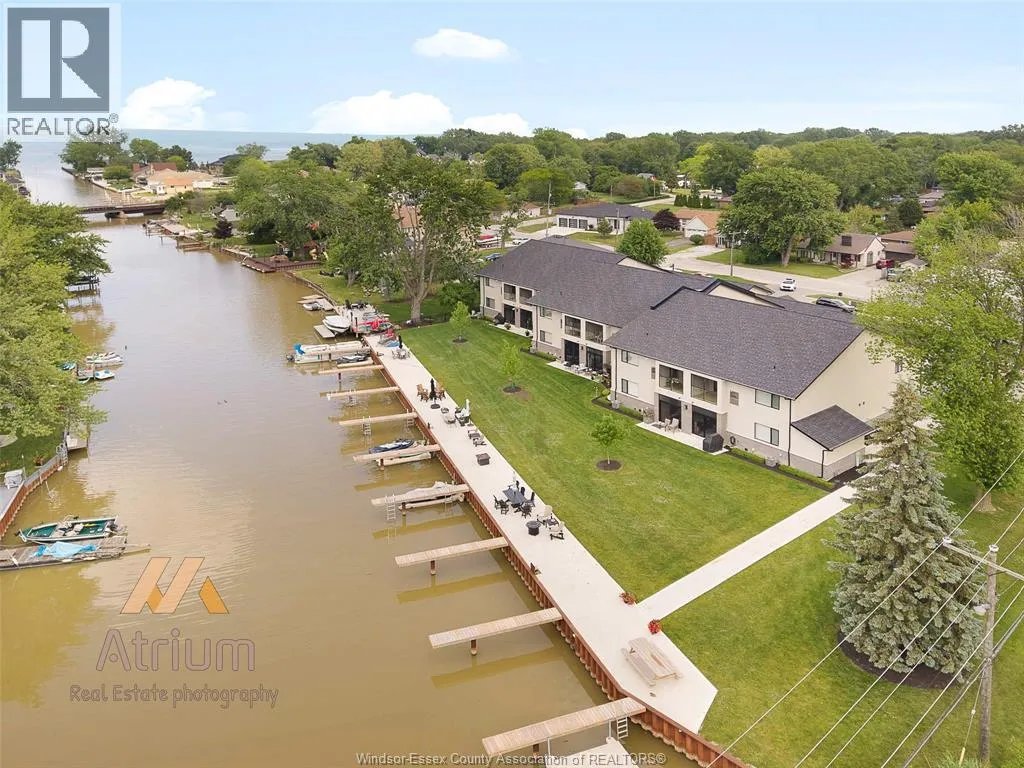 Riverfront living at its best! Dock your boat in your own slip with shore power and water and access to Lake St. Clair. This waterfront community is elegantly designed with only 12 units. This 2 bed, 2 bath floorplan is sure to impress from the front lanai to the back enclosed sunroom overlooking the water. High level finishes with hardwood, porcelain and some quartz in the kitchen with breakfast bar and fantastic appliances. Enjoy the breathtaking water views from the primary bedroom with a walk-in closet and ensuite bath. Unfinished lower level for easy storage and your own detached garage. Reward yourself with this luxury lifestyle of sophistication and ease. Lawn, dock and ground maintenance, snow removal and rest control incl in fees. (id:27476)