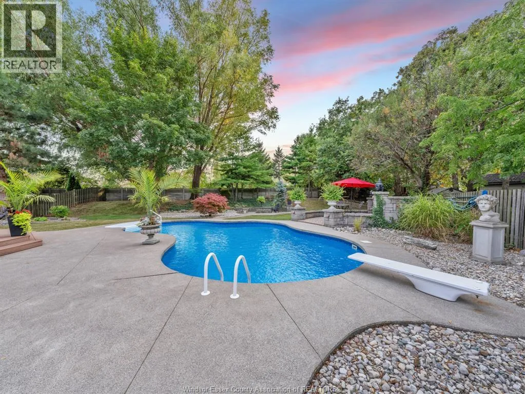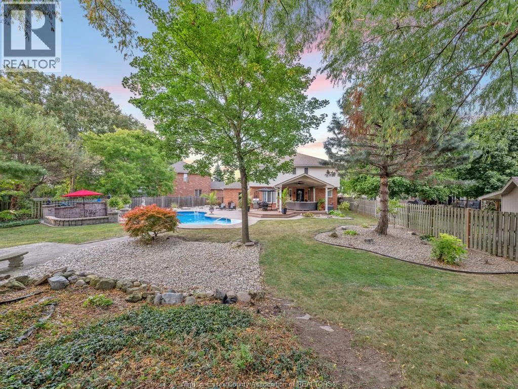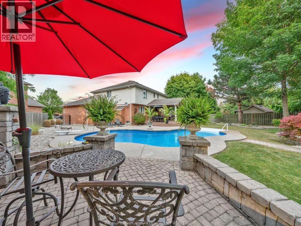 Welcome to your dream home in desirable Lakeshore! This stunning 2 storey brick beauty features a spacious foyer, main floor laundry & 2 pc powder room. The cozy living room with fireplace flows into a custom kitchen with granite counters, custom cabinetry, large eat-in island, coffee bar & pantry cabinets. Open concept dining is perfect for hosting. Upstairs, enjoy a luxurious primary suite with walk-in closet & 4 pc ensuite with spa tub, plus 2 more bedrooms & a full bath. The finished lower level boasts a wet bar, games area & family room. Step outside to your private oasis with a heated in-ground pool, covered porch, firepit, & lush landscaping. Double driveway & 2 car garage complete the package! (id:27476)