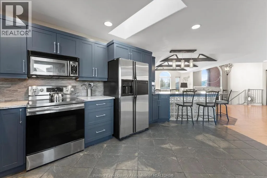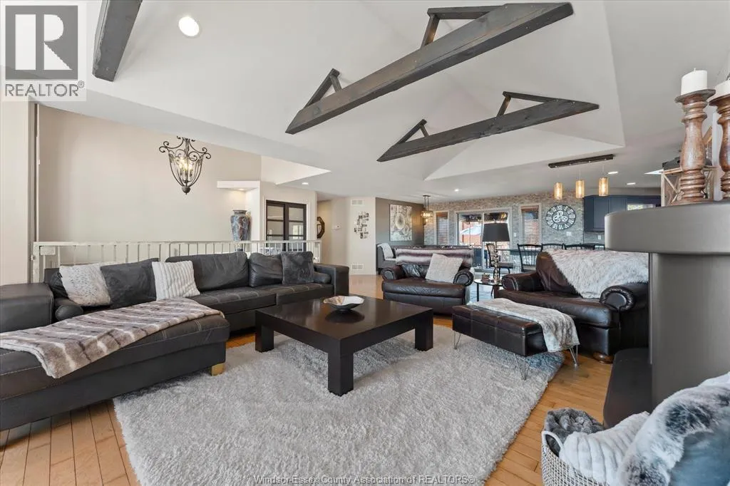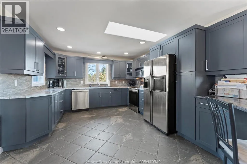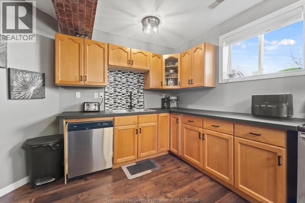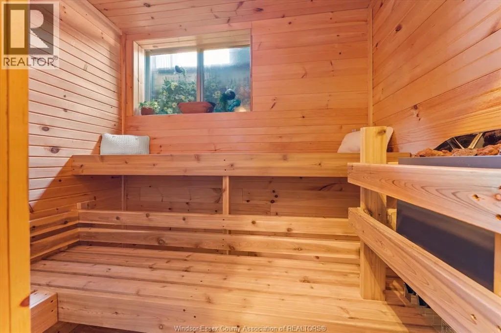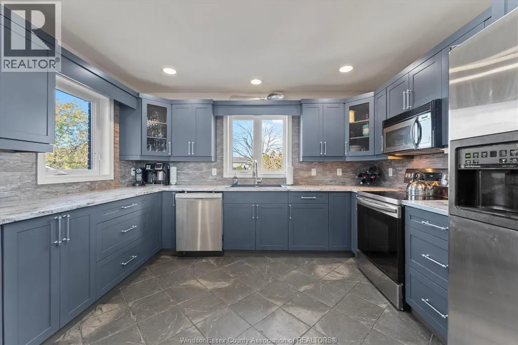 Beautiful extra large, brick to roof, raised ranch w/bonus room Primary Suite over large 2 car garage. Truly an amazing fully fenced rear yard for an entire family or an entertainers dream. You've only started to hear all this home, in sought-after area of Lakeshore near schools and all conveniences, has to offer. Modern open concept design w/newly updated kitchen cabinets, large farm sink, glass block XL kitchen Peninsula breakfast area, living room w/vaulted ceiling, accent beams & gas fireplace, and skylight. This home is very tastefully decorated w/stainless railings throughout, easy roll barn doors and more. Main floor features two bedrooms and a renovated bath, living room/dining room and a big walk-in pantry. Large primary suite, walk-in closet, and four piece bath w/Jacuzzi tub & corner shower. Downstairs features two more bedrooms, a three-piece bath and a full living and dining room plus a 2nd full kitchen with another set of appliances (10 in total with this lovely home). Perfect for a mother-in-law suite, an apartment for growing children or rental income. Lower level has its own grade entrance from garage. This home also includes a beautiful indoor cedar sauna for relaxing & unwinding after a long day. Outside has a hot tub, and a pool with a brand new winter cover (pool is in 'as is' condition - needs new liner). Huge 2 tier deck out back with an outdoor bar and new awning. Beautifully landscaped front and rear yards and incredibly private large pie shaped lot. (id:27476)