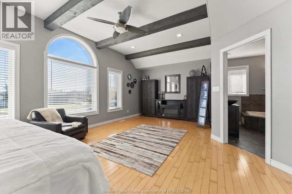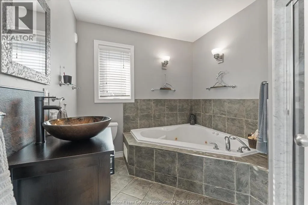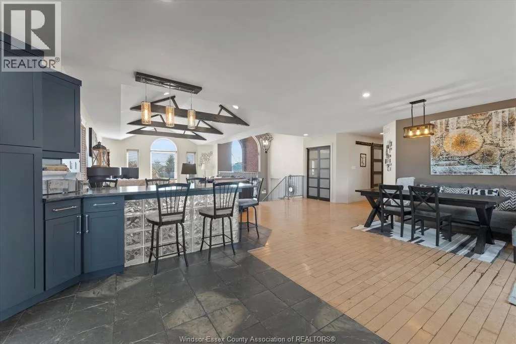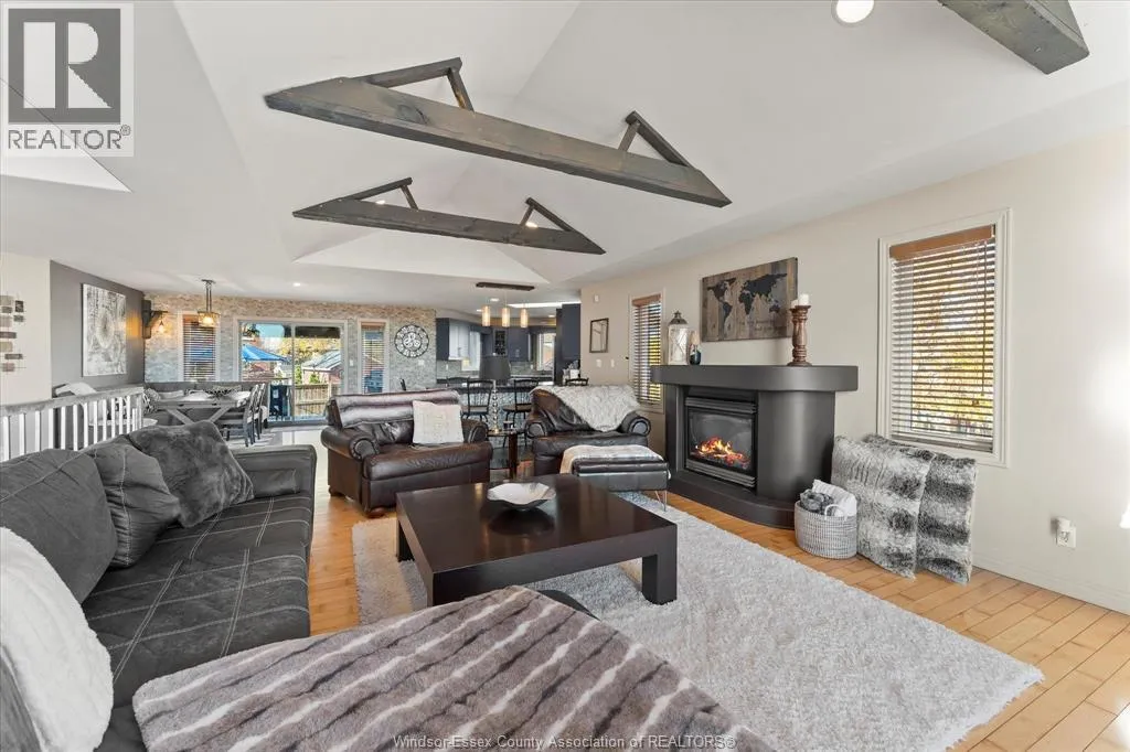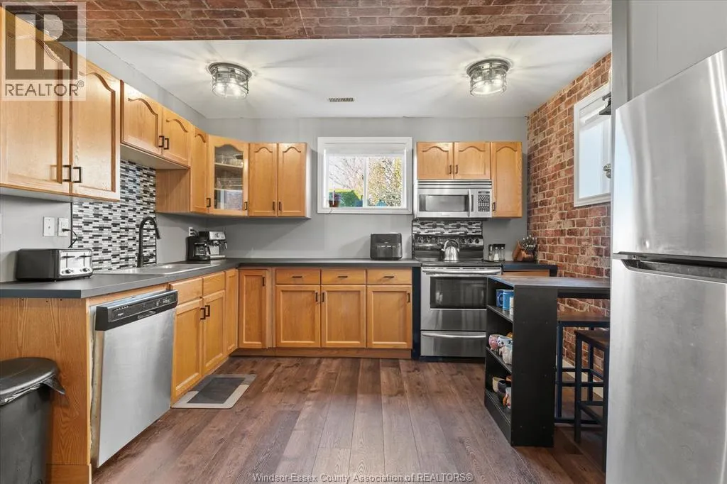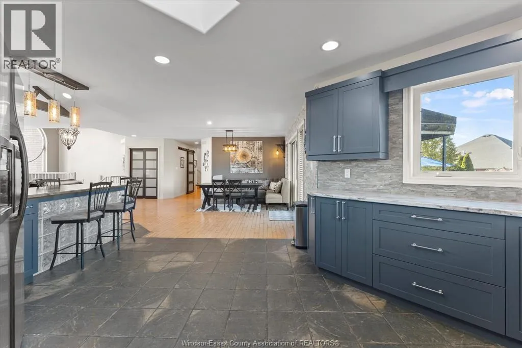 Beautiful extra large, brick to roof, raised ranch w/bonus room Primary Suite over large 2 car garage. Truly an amazing fully fenced rear yard for an entire family or an entertainers dream. You've only started to hear all this home, in sought-after area of Lakeshore near schools and all conveniences, has to offer. Modern open concept design w/newly updated kitchen cabinets, large farm sink, glass block XL kitchen Peninsula breakfast area, living room w/vaulted ceiling, accent beams & gas fireplace, and skylight. This home is very tastefully decorated w/stainless railings throughout, easy roll barn doors and more. Main floor features two bedrooms and a renovated bath, living room/dining room and a big walk-in pantry. Large primary suite, walk-in closet, and four piece bath w/Jacuzzi tub & corner shower. Downstairs features two more bedrooms, a three-piece bath and a full living and dining room plus a 2nd full kitchen with another set of appliances (10 in total with this lovely home). Perfect for a mother-in-law suite, an apartment for growing children or rental income. Lower level has its own grade entrance from garage. This home also includes a beautiful indoor cedar sauna for relaxing & unwinding after a long day. Outside has a hot tub, and a pool with a brand new winter cover (pool is in 'as is' condition - needs new liner). Huge 2 tier deck out back with an outdoor bar and new awning. Beautifully landscaped front and rear yards and incredibly private large pie shaped lot. (id:27476)