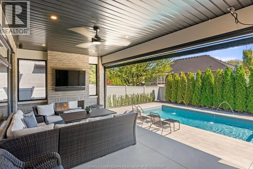 Step into luxury living in this absolutely stunning 4+1 BR, 3.1 Bath home by Caster Custom Homes, located on a quiet, professional street in a sought-after, family-friendly neighbourhood, just moment from the water, top-rated schools & Tecumseh amenities. From top to bottom, this home offers tons of finished living space, ultra high-end finishes, & quality construction that truly sets it apart. Inside, the open-concept floor plan flows seamlessly into a spacious family area, both perfectly functional and thoughtfully designed. The custom Cremasco kitchen is a true chefâs dream, featuring an oversized 10-ft island, sleek quartz backsplash, walk-in pantry & top-tier appliances. Upstairs, enjoy generously sized bedrooms, including a luxurious primary retreat complete w/ a spa-inspired ensuite & XL walk-in closet. The second-floor laundry room offers loads of built-in storage & function. Downstairs, the finished basement impresses w/ rare 9-ft ceilings, a dedicated home gym w/ rubber flooring & mirrors, rec area, cozy gas fireplace and an extra bedroom. Outside is your personal resort equipped for year round enjoyment with a heated saltwater inground pool, covered porch w/ gas fireplace and motorized blinds, and a fully fenced yard. The long list of extras incl. motorized window coverings throughout, an oversized garage w/ Gen 3 EV charger, and premium finishes in every corner. Whether you're entertaining friends, raising a family, or simply enjoying the finer things in life, this exceptional home has it all. Don't miss your chance to own a one-of-a-kind property that offers the perfect mix of space, comfort, and quality. (id:27476)