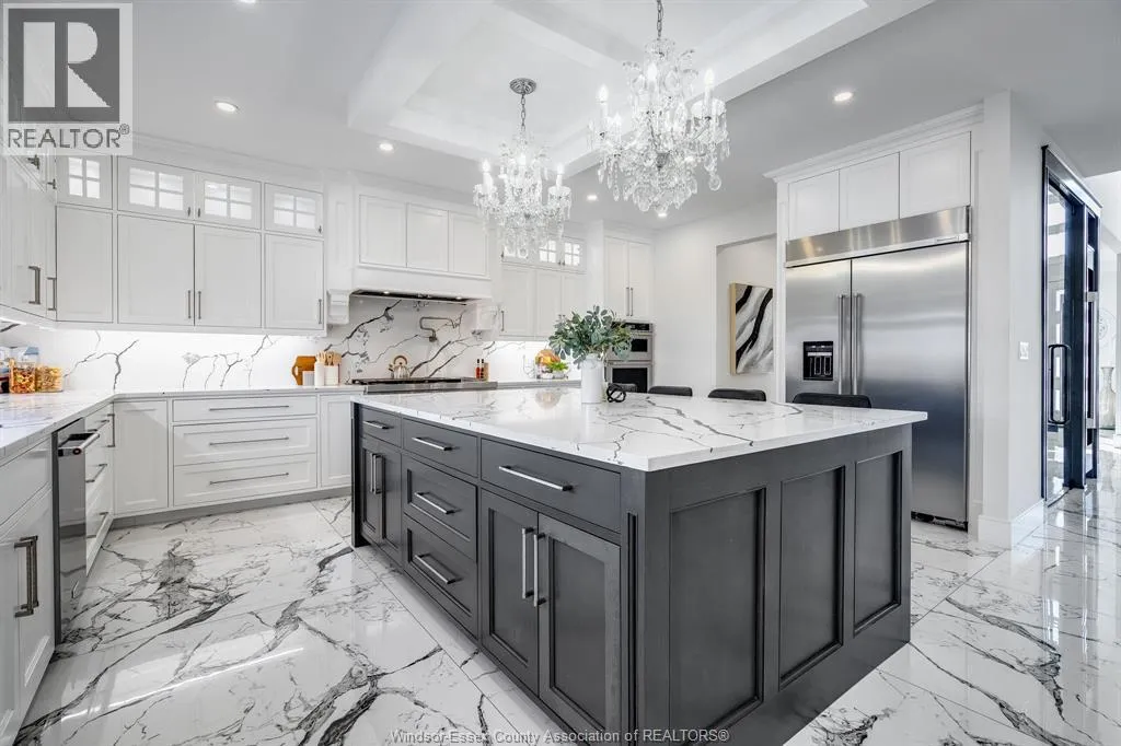 Stunning custom home offering approximately 7,200 sq.ft of finished luxury. The stone-and-brick exterior with modern glass garage doors sets the tone of the elegance inside. Features include a chef's kitchen with built-in appliances, quartz counters and a signature wine cooler. Enjoy 6 bedrooms, 4.5 bathrooms, 2 offices, 3 fireplaces, grand foyer with a chandelier lift, wainscotting, stair lighting, and impressive 4ft x 6ft tiles. The primary ensuite offers heated floors for ultimate comfort. Dual AC units and furnaces ensure efficiency. Home is prepped with gas, water and eletrical hookups for a future pool and pool house (blueprints available). A true blend of craftsmanship, design and modern convenience. (id:27476)