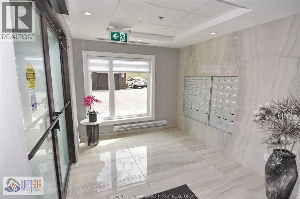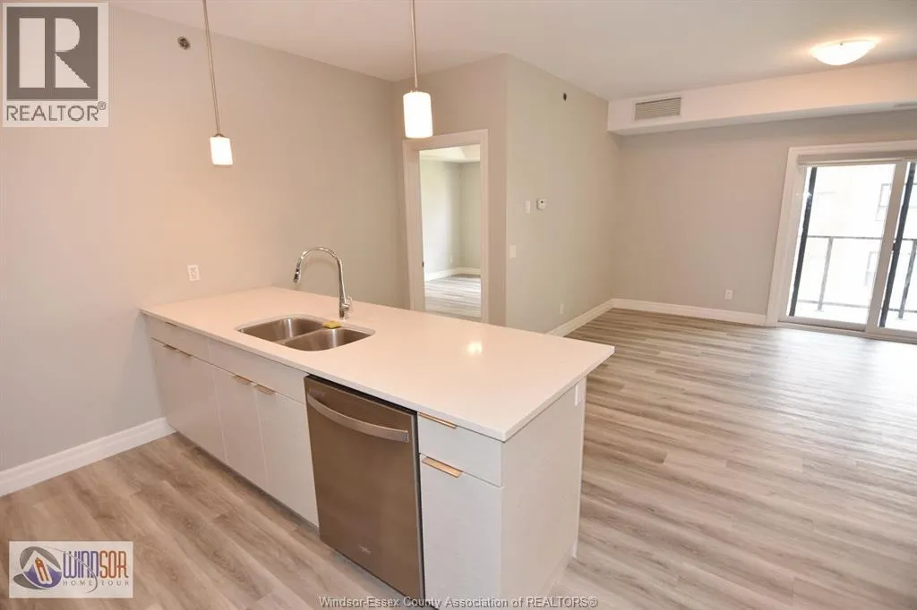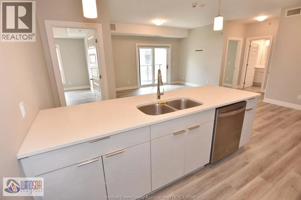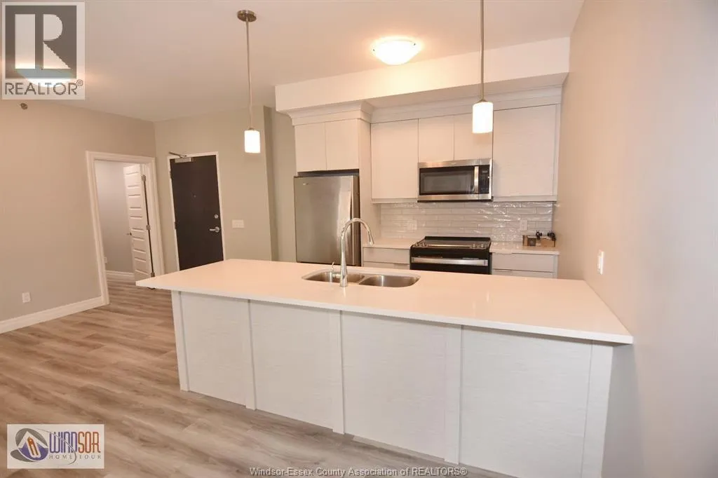 Experience modern living in Essex County's most walkable location. This newer 6-storey building features amenities such as a party room, community gardens, pavilion, and pickleball courts. The spacious 2 bed/2 bath includes 9 ft ceilings, a stylish kitchen with quartz counters and tile backsplash, stunning ensuite baths, in-suite laundry, stainless steel appliances, and a private balcony. Conveniently walk to shops, grocery stores, restaurants, LCBO, and Lakewood Park, with quick access to EC Row Expressway and the 401. Lease is $2,275/month including water, other utilities are additional. Credit check and minimum one-year lease required. Only seeing applications from professionals. Contact us today to schedule a viewing! (id:27476)