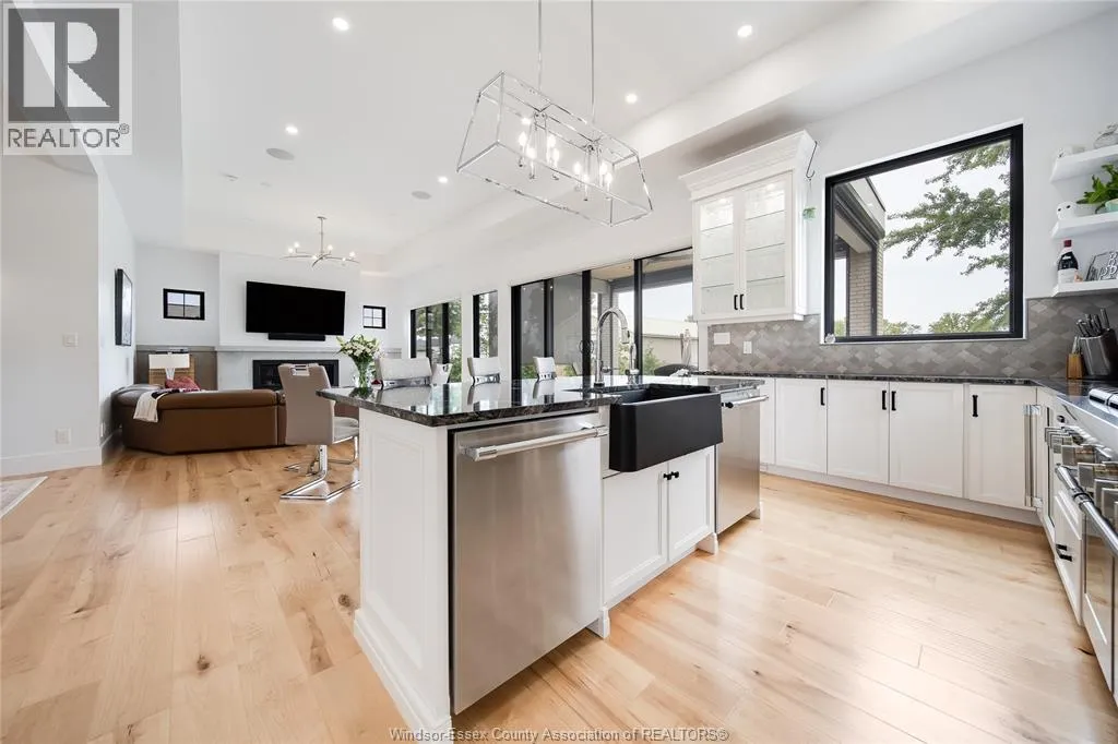 This beautifully crafted custom side-split offers a perfect balance of style, comfort, and intelligent design. Built with today's lifestyle in mind, the home features seamless smart-home technology, including a centralized high-fidelity audio distribution network, Wi-Fi hubs, Lutron lighting, dual-zone heating and cooling, motion-activated bathroom lighting, and custom window coverings with motorized options in the main living areas. At the heart of the home, the chef's kitchen is equipped with premium Thermador appliances, touch-activated faucets, dual dishwashers, and an instant hot water and purification system, ideal for both everyday living and entertaining. Relax in the inviting family room with a striking custom concrete gas fireplace, or enjoy effortless indoor-outdoor living on the screened-in patio with motorized screens. The bright lower level features large windows, a full glass grade-level entry door, and an additional concrete- finished fireplace, creating a warm and open living space. Step outside to the private backyard retreat, which includes a large heated saltwater fiberglass pool, landscaped gardens, raised concrete beds, and architectural privacy screening. A 16'x 28' workshop with electricity, its own panel, gas line, metal roof and garage door opener adds exceptional versatility. A refined, move-in-ready home where modern convenience meets timeless comfort. (id:27476)