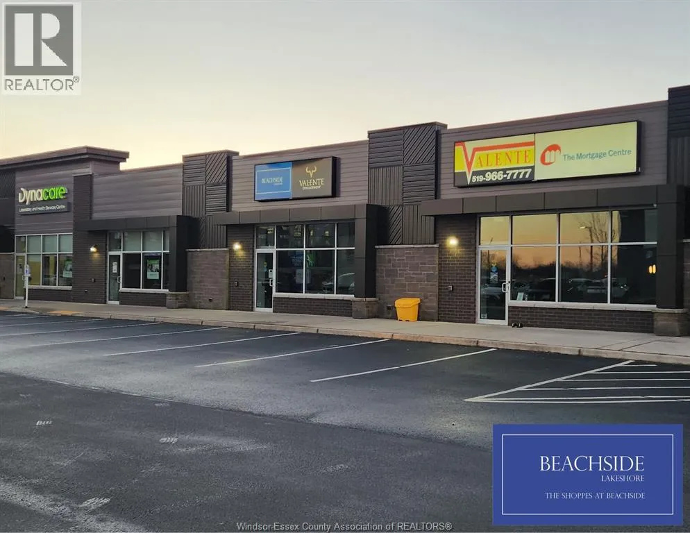 OFF MANNING, IMMEDIATELY NORTH OF EC ROW EXPRESSWAY The Shoppes at Beachside is a premier neighbourhood retail and professional plaza offering high-end leasing opportunities within the Beachside-Lakeshore master-planned condominium community. Ideally situated adjacent to the new Holiday Inn Select and just east of Manning Road, the plaza provides excellent visibility and brand exposure with consistent traffic along Amy Croft Drive. 1789 square feet, currently built out as a high end office, plus an approx 200 sq ft covered outdoor patio area. Tenants benefit from being positioned in a dense and thriving retail node anchored by major national brands including Sobeys, Food Basics, Zehrs, LCBO, and Shoppers Drug Mart, as well as numerous restaurants, medical services, banks, and complementary plazas. This vibrant commercial environment makes The Shoppes at Beachside an exceptional location for retail, service, and professional uses. Available May 1. (id:27476)