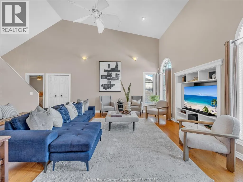 Welcome to this beautifully maintained two-storey family home in the heart of Lakeshore, where comfort, style, and location come together seamlessly. Step inside the inviting foyer and feel immediately at home. The thoughtfully designed main floor features a spacious primary bedroom complete with a walk-in closet and a private 4 piece ensuite, perfect for those seeking main-level living. The open-concept layout is ideal for both everyday living and entertaining, highlighted by a stunning two-storey ceiling in the great room, anchored by a cozy gas fireplace. The adjoining dining room flows effortlessly into the kitchen and open eating area, offering a bright and welcoming space for family meals and gatherings. A convenient mudroom and laundry combination, along with a main floor 2-piece powder room, add to the homeâs practical appeal. Upstairs, youâll find two generously sized bedrooms, providing comfortable spaces for family or guests. The unfinished yet pristine basement offers endless potential to design and customize to suit your lifestyle whether a recreation room, home gym, or additional living space. Outside, enjoy excellent curb appeal with a landscaped yard, covered front entryway, double concrete driveway, and double garage. The large backyard is perfect for relaxing or entertaining, featuring a newer sun deck and plenty of room for kids and pets to play. Ideally located near schools, shopping, restaurants, scenic trails, the beach, E.C. Row, and more, this home truly offers the best of Lakeshore living. Pride of ownership is evident throughout. This is a family home youâll be proud to call your own. (id:27476)