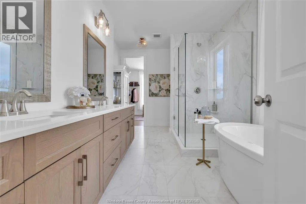 Newly built and custom designed 1 year old Lakeland Home beauty. This 4 bedroom 4 bath 1.5 story home is made for entertaining while remaining a cozy family home. Walk into your grand foyer through your double front doors to formal dining and take in the wall of windows showcasing 18 foot ceilings and a dramatic 10 foot island and a upgraded larger fireplace. From the kitchen to main floor laundry, oversized walk in pantry a beverage bar and sunroom with vaulted ceilings and oversized patio doors. Cabinetry and natural light are not in short supply in this home! Primary suite on main level with freestanding tub and walk in closet. Heavily upgraded home with 2nd primary with ensuite on 2nd level and unfinished option for possible 3rd primary in lower level with egress window. Fully fenced in yard with vinyl fencing and flowering trees for privacy. (id:27476)