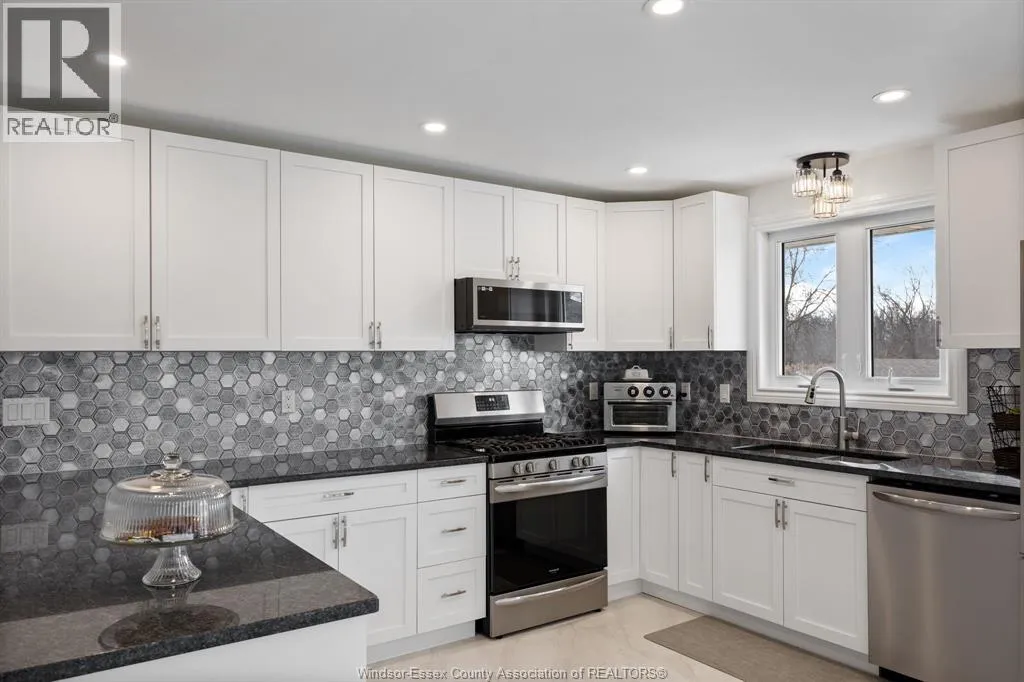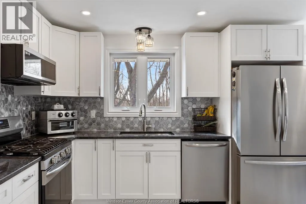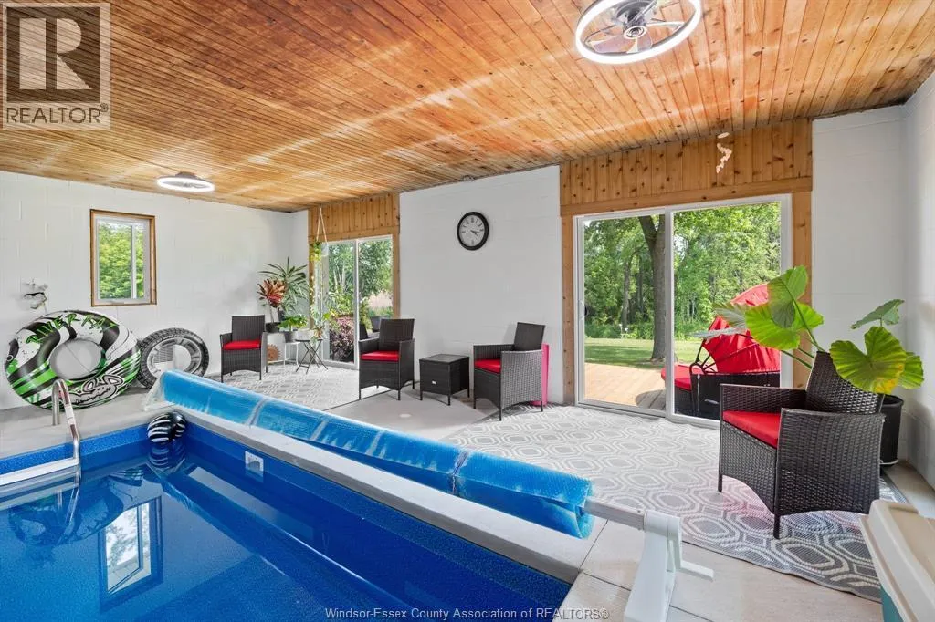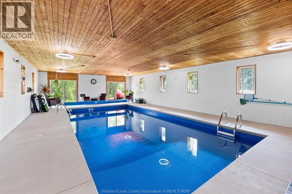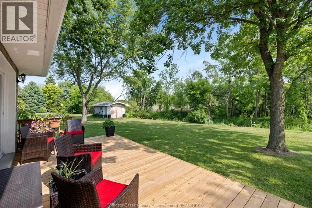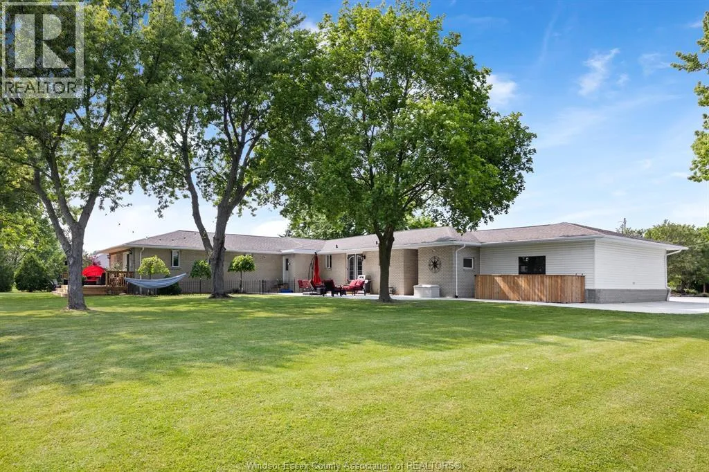RELAX AND VACATION AT HOME IN THIS SPRAWLING BRICK TO ROOF RANCH SITUATED ON JUST UNDER 1 ACRE PEACEFUL AND QUIET CUL-DE-SAC ROAD FEATURING AN OVERSIZED BRIGHT LIVING ROOM, GORGEOUS WRAPAROUND GRANITE, CERAMIC AND STAINLESS ACCENTED KITCHEN (2026) WITH SEPARATE DINING AREA, DOUBLE GARDEN DOORS TO PRIVATE PATIO, 3 GENEROUS SIZED BEDROOMS, 2 RENOVATED BATHROOMS (2025) LOWER LEVEL FAMILY ROOM (2022) OFFICE/DEN, BONUS INDOOR SWIMMING POOL (2024) WITH SPA SIZED SAUNA AND SEPARATE WASHROOM, MULTIPLE WINDOWS PLUS PATIO DOORS (2025) LEAD TO A CUSTOM LOUNGING DECK OVERLOOKING A BREATHTAKING MANICURED TREED YARD BACKING ONTO THE RUSCOM RIVER AND PARKLAND WITH ACCESS TO WALKING TRAILS IN THE MEMORIAL PARK, 2 1/2 CAR GARAGE WITH SEPARATE TOOL ROOM, DOUBLE WIDE CEMENT DRIVE WITH EXTRA SIDE PARKING PAD (2023) FORCED AIR GAS FURNACE (2022) CENTRAL AIR, HARDWOOD FLOORS, MAIN FLOOR LAUNDRY, APPLIANCES INCLUDED, VINYL REPLACEMENT WINDOWS AND DOORS (2023, 2025) COUNTY LIVING WITH EASY ACCESS TO WINDSOR FROM HWY 401 OR COUNTY ROAD 42 (id:27476)