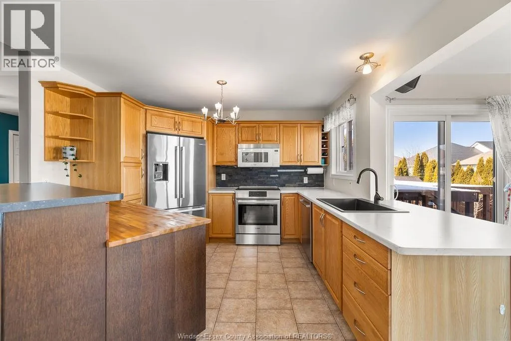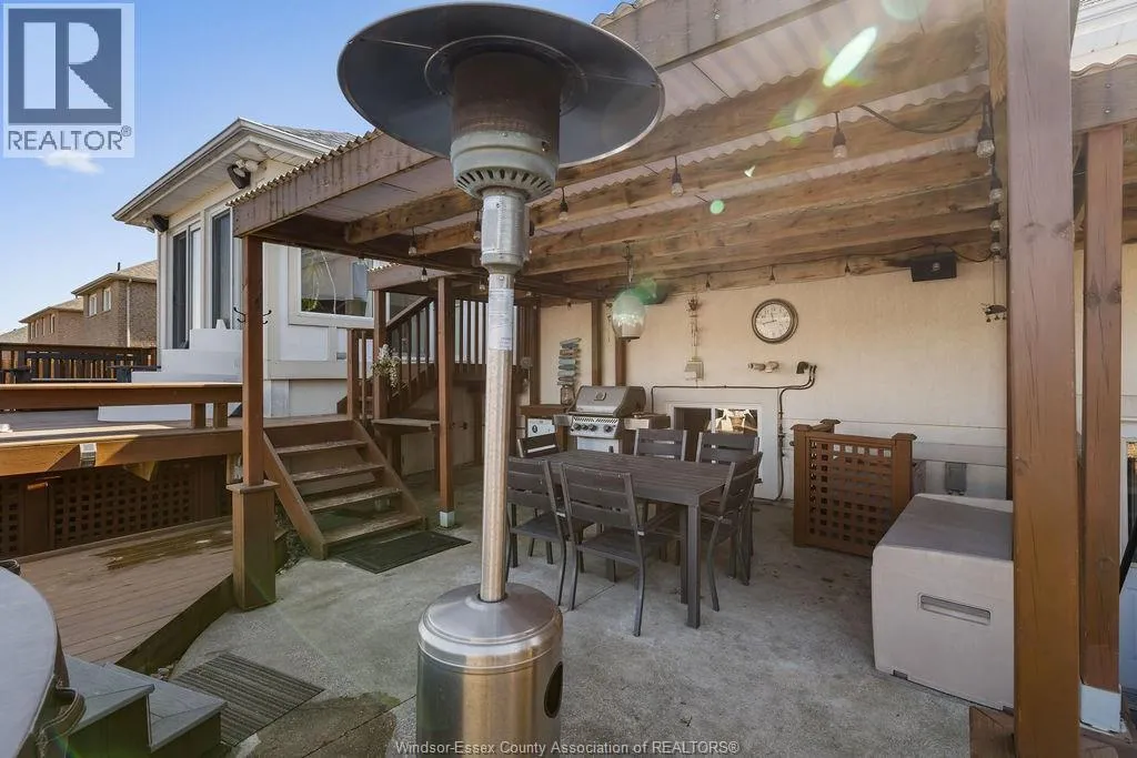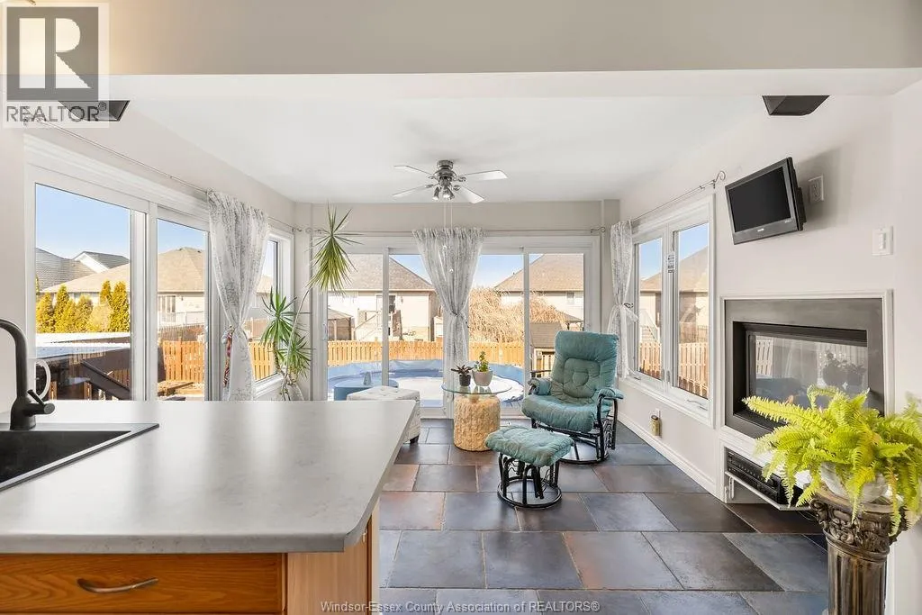 A Nice Package & Great offering! Right in Tecumseh/Lakeshore's most desirable location!!! A Special rear added on 4 season sunroom uniquely incorporates openness to the kitchen(SS appliances), and the action packed yard with 3 sets of patio doors, raised gas f/p, wired for surround sound/tv, slate tile, complementary custom glass display cabinetry, all giving a personal entertaining warmth and comfort to this Wide Open Bright home. Summer fun Yard with a/g Pool, sun deck, hot tub, covered patio, bbq gas line, wired for speakers, raised garden/flower boxes, and grade entrance for access to lower bath. Beautiful Hardwood stairs, and hardwood/tile floors (no carpets), 3 full baths, private XL Master Suite, Cathedral ceilings, glass rails, XXL 23x26 garage!!! Wide Open Lower family/games room, with 2nd gas f/p, 3rd full bath, and so much more! All new plumbing waterlines 2025, newer roof 2018, and Includes all 5 newer appliances 2020. Exclude Murphy bed in lower. Stones throw to Tecumseh's Sobey/LCBO shopping mall. All approx. (id:27476)