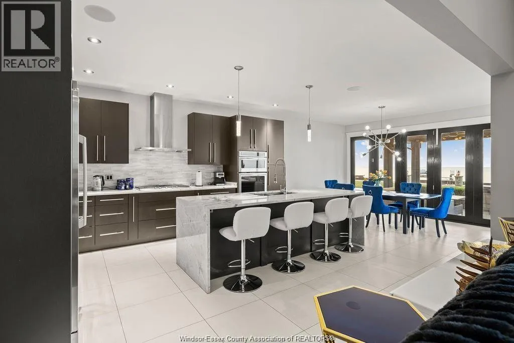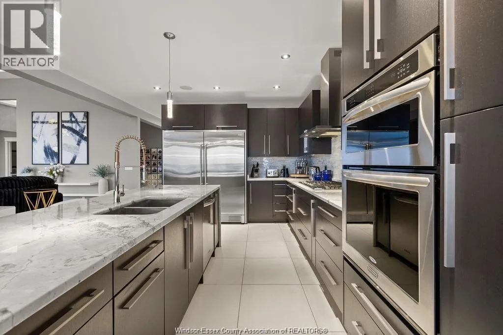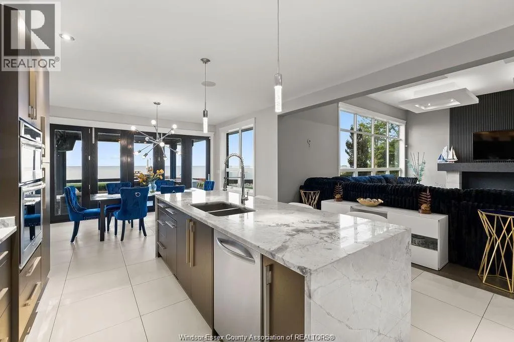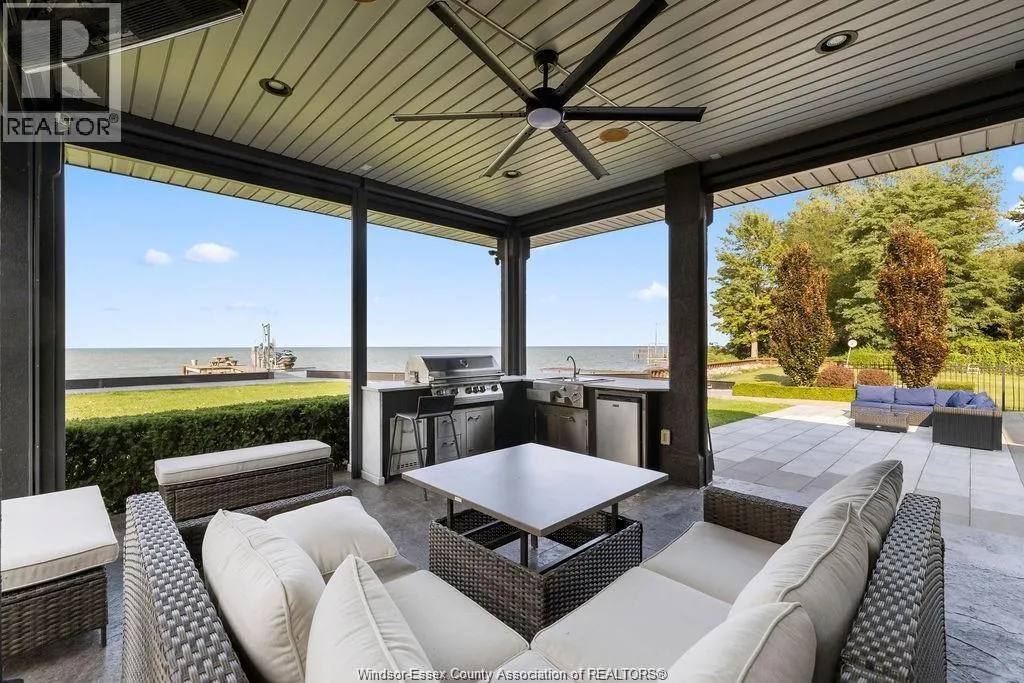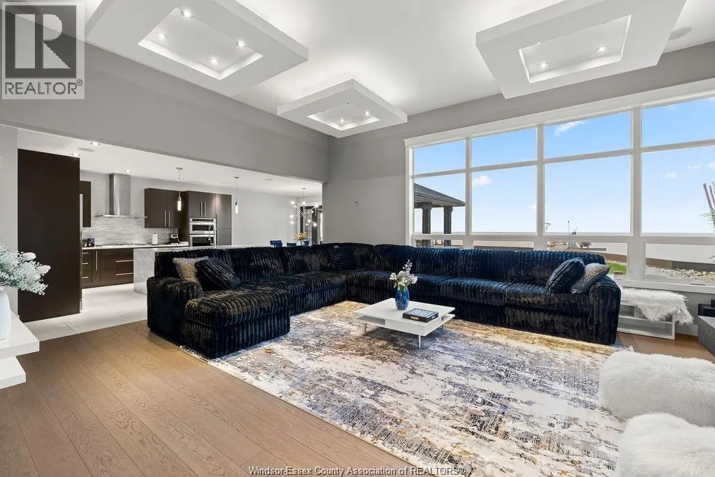 The perfect combination of luxury, comfort and waterfront living! Unobstructed lake views the second you enter, including great room with soaring ceilings open to gourmet kitchen and dining rm with glass folding doors to covered back patio that includes motorized screens, BBQ/Bar area, even a TV to watch the game while enjoying the sunsets. Primary suite includes lavish 5 pc bath, walk-in closet in suite laundry, 2nd main bedroom offers ensuite, walk-in closet +den. Finished basement boasts 2 additional bedrooms, family room, rec room, rough-in kitchen/bar + grade entrance to heated 3 car garage with epoxy floor and built-in cabinetry. Step back outside from rear grade entrance to the stunning backyard, complete with patio, deck and 3 boat lifts. Imagine waking up to breathtaking lake views every day and indulge in the peace and tranquility this home provides. With its luxurious amenities, this residence offers an elevated lifestyle thatâs not to be missed. (id:27476)