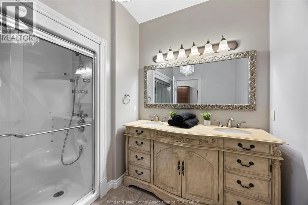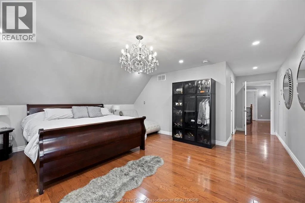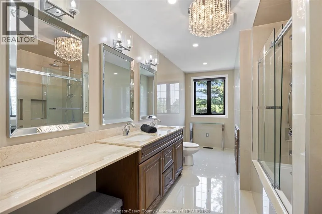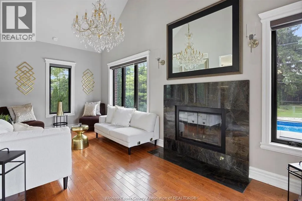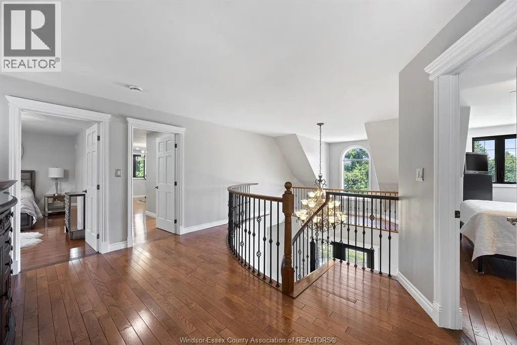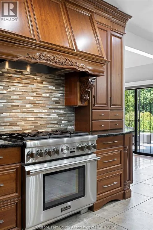 A beautifully maintained two-story home set on an extra-deep, park-like lot over 290 feet deep in a prime location near the water. This 4-bedroom, 5-bathroom home features a spacious and open-concept main floor with oak trim, custom cherry wood kitchen cabinetry, a large island, and high-end stainless steel appliances including a 36"" Thermador dual-fuel stove and Electrolux fridge/freezer combo. The main floor includes a bedroom with a full ensuite, while the upper level offers a large primary suite with walk-in closet and ensuite, plus another bedroom with its own walk-in closet. Enjoy both a natural wood-burning fireplace and a gas fireplace, along with hardwood and ceramic floors throughout. Granite staircase leading to the basement. The home is equipped with smart automation for garage doors, lighting, pool pump, and security system, as well as a tankless water heater, ERV, high-efficiency furnace and AC, central vacuum, and video surveillance around the perimeter. The professionally landscaped backyard is a true paradise, featuring a saltwater sports pool with a new liner (2024), updated salt system, heater (2023), safety cover, and a raised patio with glass railings overlooking the yard. Additional features include a large double garage with hot/cold water tap and counter, rear access to the basement and garage, gas BBQ hookup, three storage sheds, stair access to storage above the garage and below the sunken sunroom, and an irrigation system for the front yard. Premium lot in a highly desirable area. (id:27476)