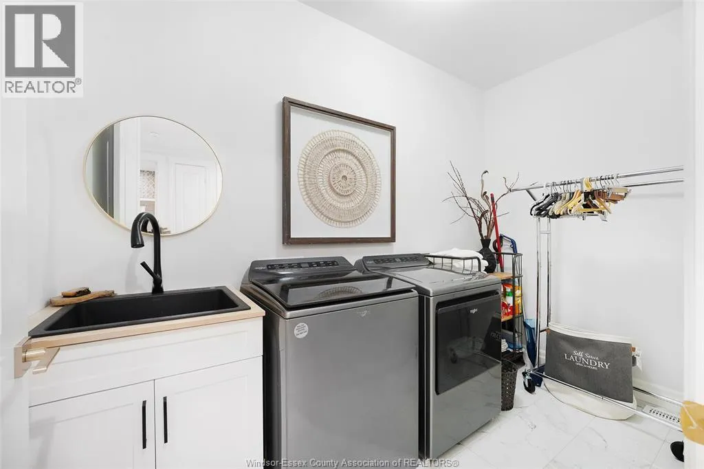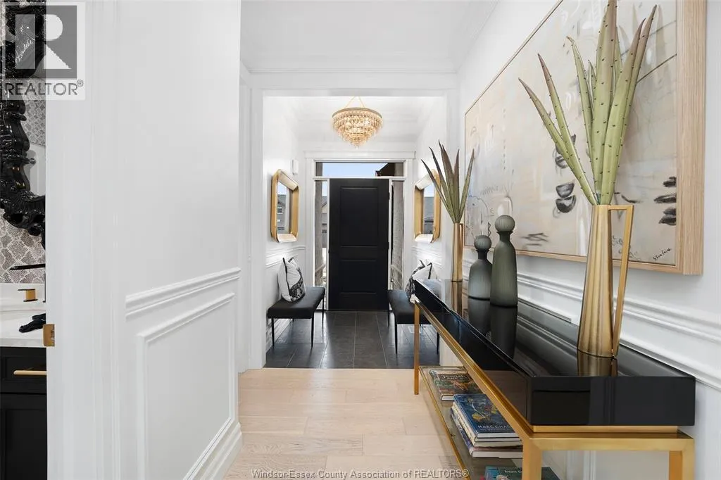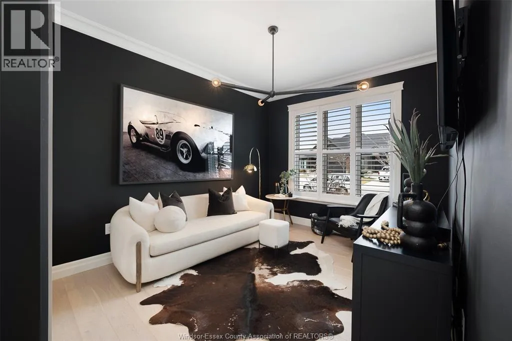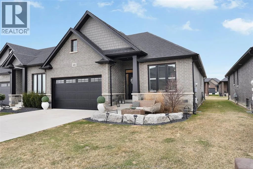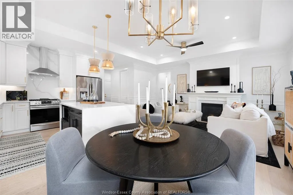 Not your typical townhome, this one is pure luxury! This 2-bedroom, 2-bathroom ranch-style townhome in sought-after Lakeshore was custom designed by Windsor's iconic David Burman of Mister Style. The stylish kitchen showcases a stunning waterfall quartz island and flows seamlessly into the living and dining areas --perfect for entertaining or relaxed everyday living. Elegant wainscotting adds timeless character, while bold Robert Cavalli wallpaper provides a unique designer touch along with California Shutters for privacy.The spacious primary suite includes a private ensuite and walk-in custom ensuite closet, with a second bedroom and full bath ideal for guests or a home office. Enjoy the newly finished concrete rear patio, offering a low-maintenance outdoor space. An exceptional opportunity for downsizers seeking style, quality, and carefree living in the heart of Lakeshore. $100.00/ month includes snow, grass, roof fund. (id:27476)
