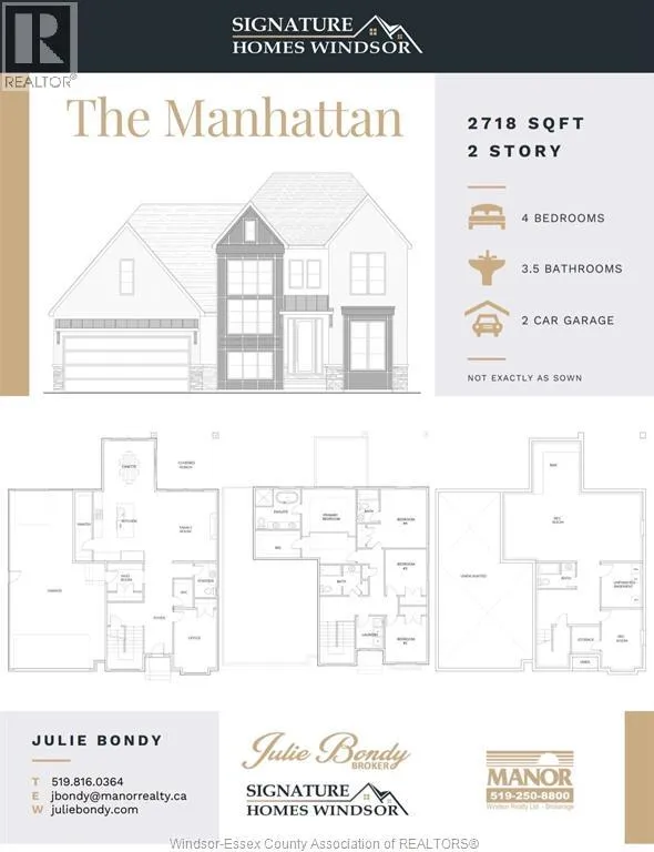 WELCOME TO SIGNATURE HOMES WINDSOR NEWEST 2 STORY MODEL ""THE MANHATTAN "" NOW AVAILABLE IN LAKESHORE IN OAKWOOD ESTATES. ONLY 3 BUILD LOTS AVAILABLE AND ALSO MANY OTHER MODELS AND STYLES TO CHOOSE FROM AT OUR WEBSITE WWW.SIGNATUREHOMESWINDSOR.COM . EXTRA DEEP LOTS 60.38' X 174' THIS 2 STY DESIGN HOME FEATURES GOURMET KITCHEN W/LRG CENTRE ISLAND FEATURING GRANITE THRU-OUT AND HUGE WALK IN KITCHEN PANTRY AND BEAUTIFUL DINING AREA OVERLOOKING REAR YARD W COVERED REAR PORCH . OPEN CONCEPT FAMILY ROOM WITH WAINSCOT OR MODERN STYLE FIREPLACE. 4 UPPER LEVEL BEDROOMS. 3.5 BATHS INC STUNNING MASTER SUITE WITH TRAY CEILING, ENSUITE BATH WITH HIS & HER SINKS WITH CUSTOM GLASS SURROUND SHOWER WITH FREESTANDING GORGEOUS TUB. AND A SECONDARY BEDROOM W ENSUITE. 2ND FLOOR LAUNDRY. 2025 POSSESSION. SIGNATURE HOMES EXCEEDING YOUR EXPECTATION IN EVERY WAY! (id:27476)