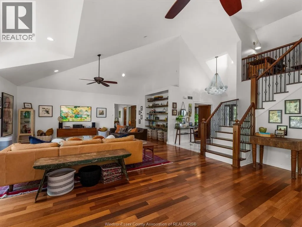 Homes like this are not builtâthey are dreamt of. A true architectural masterpiece inspired by timeless Frank Lloyd Wright design, this stunning 4+1 bedroom, 4 full bath estate offers luxury waterfront living at its finest. Thoughtfully designed with striking lines, natural materials, and seamless indoor-outdoor flow, every detail has been carefully curated with no expense spared. Backing onto the wide Ruscom River, this property is a boaterâs dream, complete with a private boat lift and spectacular river views. Enjoy resort-style living with a beautifully landscaped backyard, in-ground pool, and expansive entertaining spaces perfect for hosting or relaxing in total privacy. Inside, the home offers an open-concept layout with soaring ceilings, custom finishes, and high-end craftsmanship throughout. The primary suite is a private retreat, while additional bedrooms and living areas provide ample space for family and guests. Additional info in DOCS (id:27476)