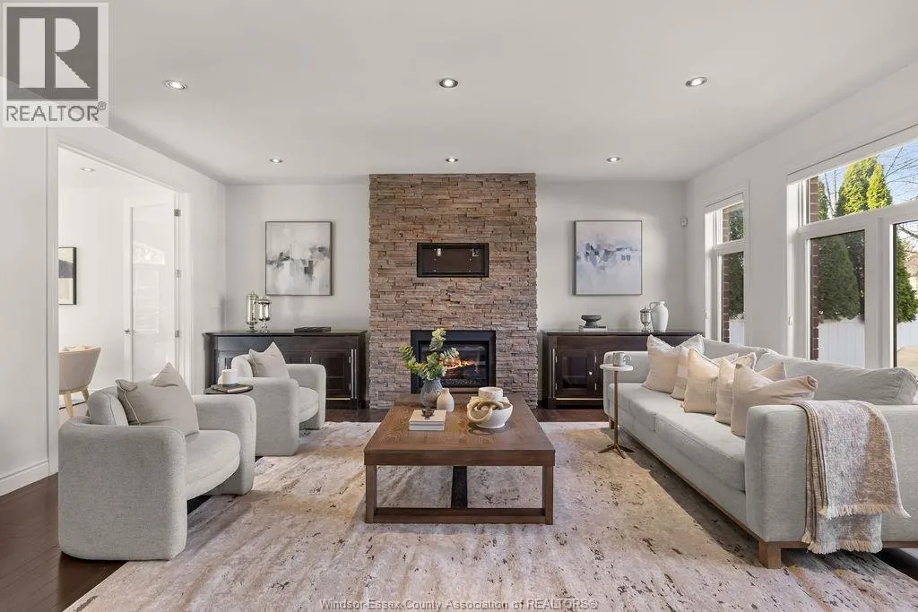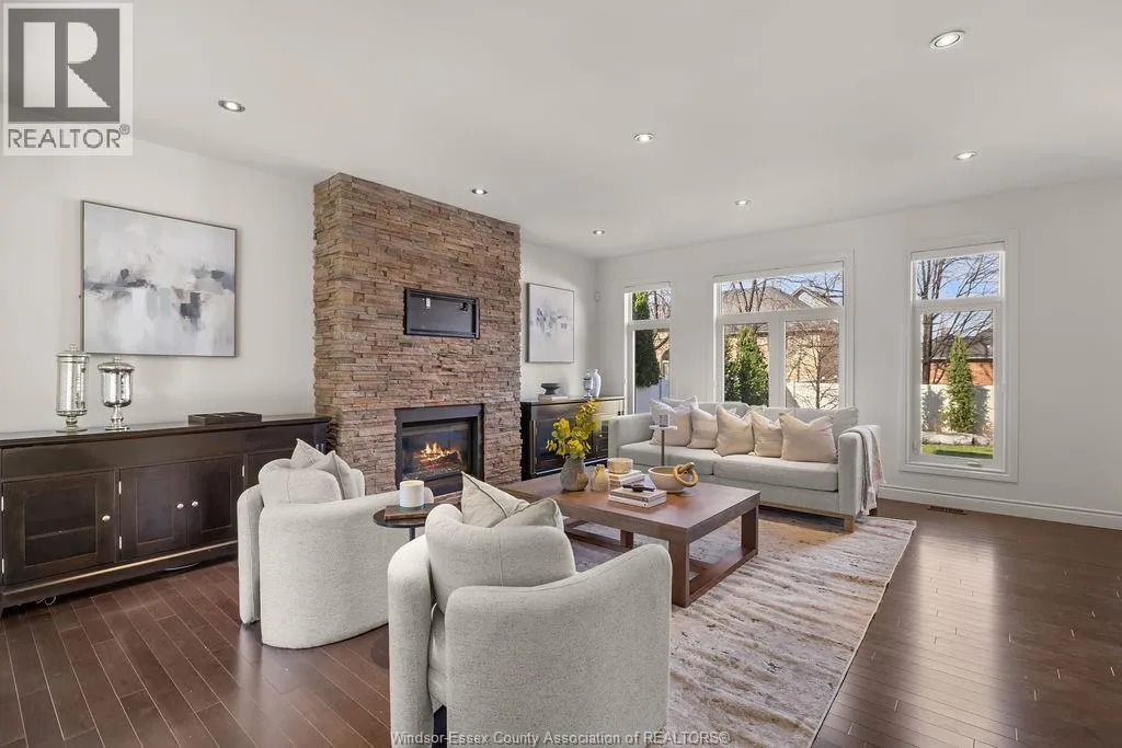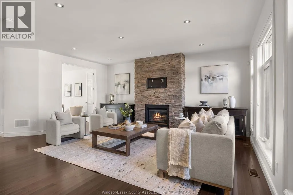 Stunning brick-to-roof two-storey in the highly desirable Russell Woods neighbourhood! Custom built by Timberland Homes, this spacious 4 bedroom, 4.5 bathroom home offers exceptional design and functionality throughout. The main floor features hardwood and tile flooring, a bright great room with gas fireplace, and a versatile office or playroom with French doors. The kitchen boasts granite countertops, an oversized island, glass backsplash, a large pantry, and newer stainless steel appliances. Entertain with ease in the formal dining room with convenient pass-through, perfect for bar area and coffee station. A thoughtfully designed mudroom includes built-ins, lockers, and seating with direct access to a double car garage. Upstairs, the primary suite offers two walk-in closets and ensuite with a large glass shower. A junior suite with its own ensuite bath, plus a second-floor laundry room with newer washer and dryer, add everyday convenience. The fully finished lower level offers family room, games area, full bath & storage. Step outside and enjoy the newly landscaped rear yard, offering privacy and low maintenance living. Located within walking distance to parks, the waterfront and local amenities. (id:27476)