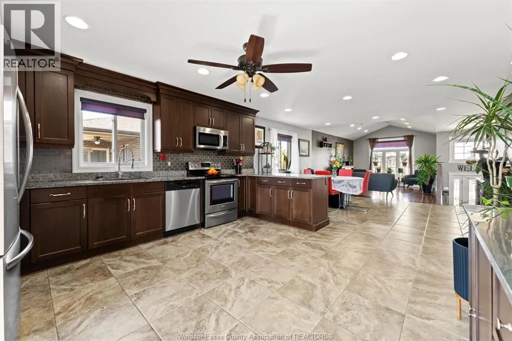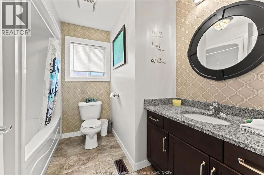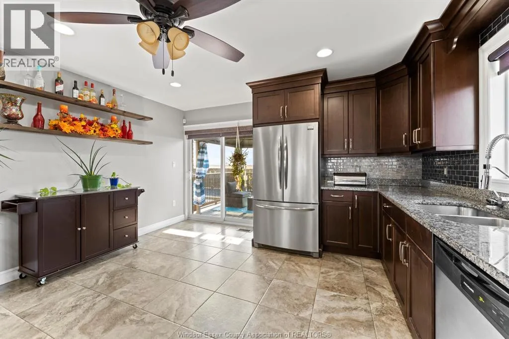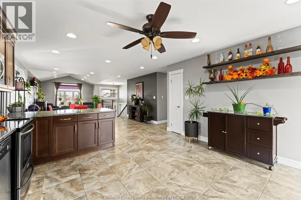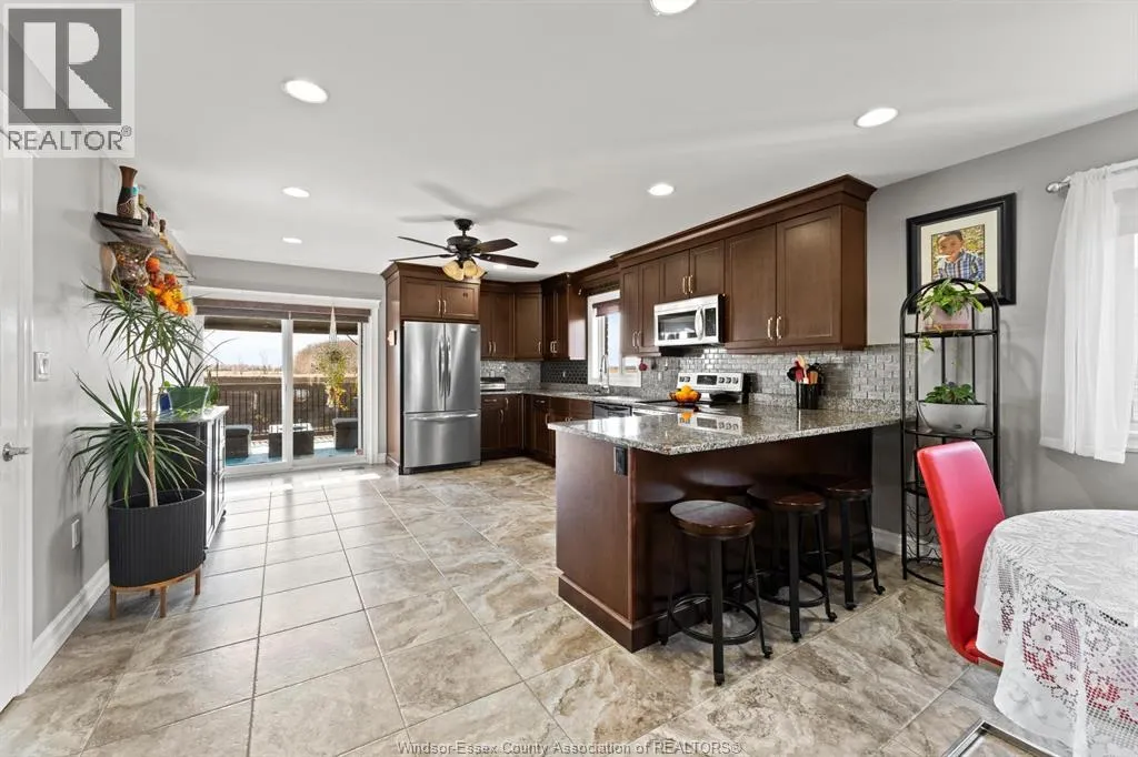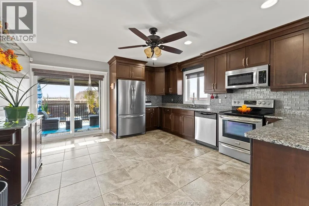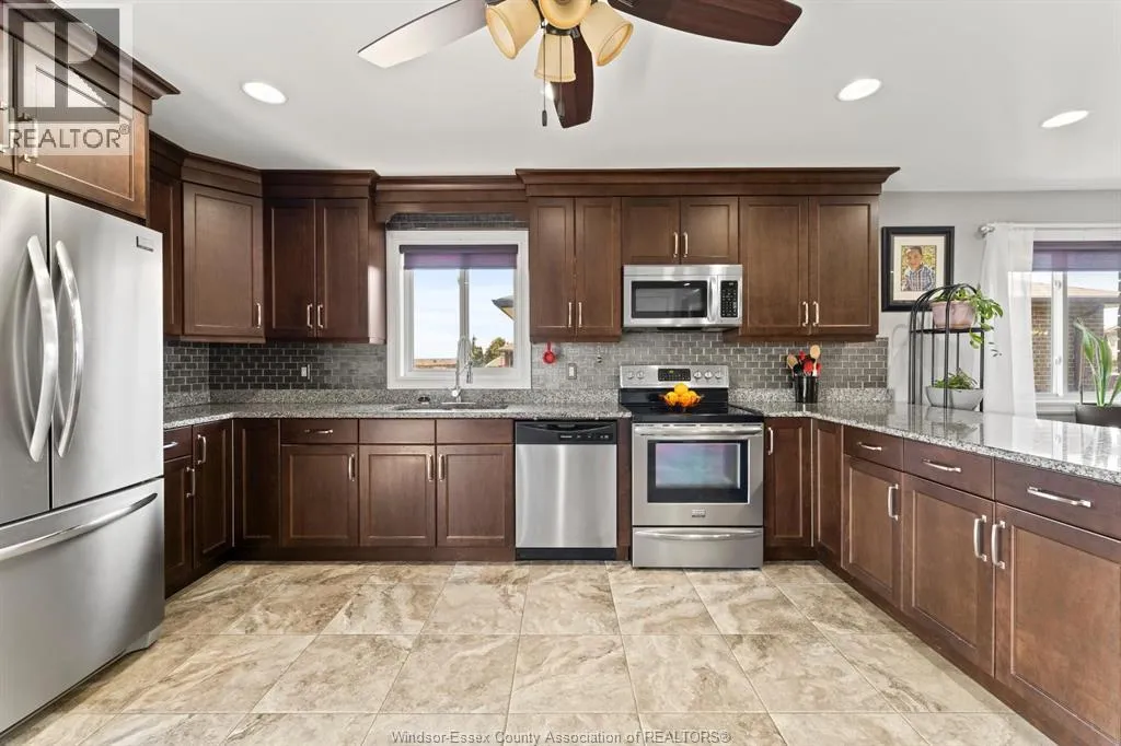 Exceptionally well maintained brick to roof home ,boasts welcoming entrance to an open concept design with vaulted ceilings offering great living space with quality finishings. Kitchen has well appointed cabinets ,breakfast bar ,and granite tops throughout,open to dining and living room areas with custom wall designs ,hardwood and ceramic flooring and ,also offers 3 large bedrooms ,master has 3pc ensuite for your convenience..Freshly painted lower level with attractive stone fireplace in super sized rec room,also complete with a large 4pc bath ,bedroom with frosted double doors and huge laundry area.Patio doors from kitchen to a double tiered deck ,nicely landscaped and offers pristine fenced back yard for your enjoyment. Garage is drywalled and painted with plenty of storage space and double concrete drive .. Nicely situated in a desirable neighborhood close to school,shopping Marina,beaches and more. (id:27476)