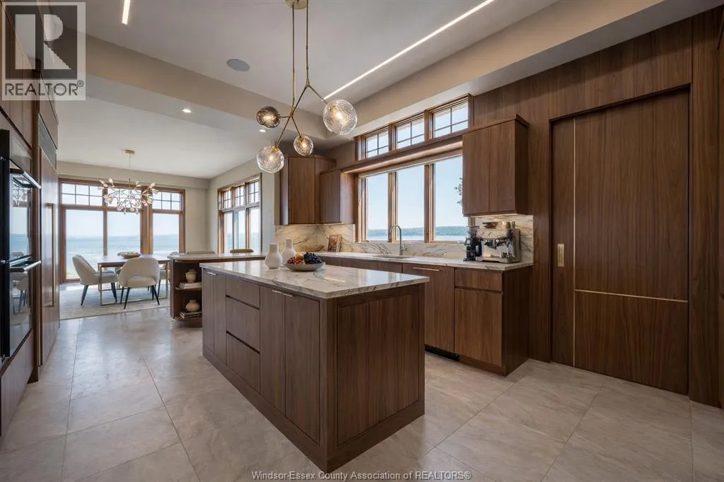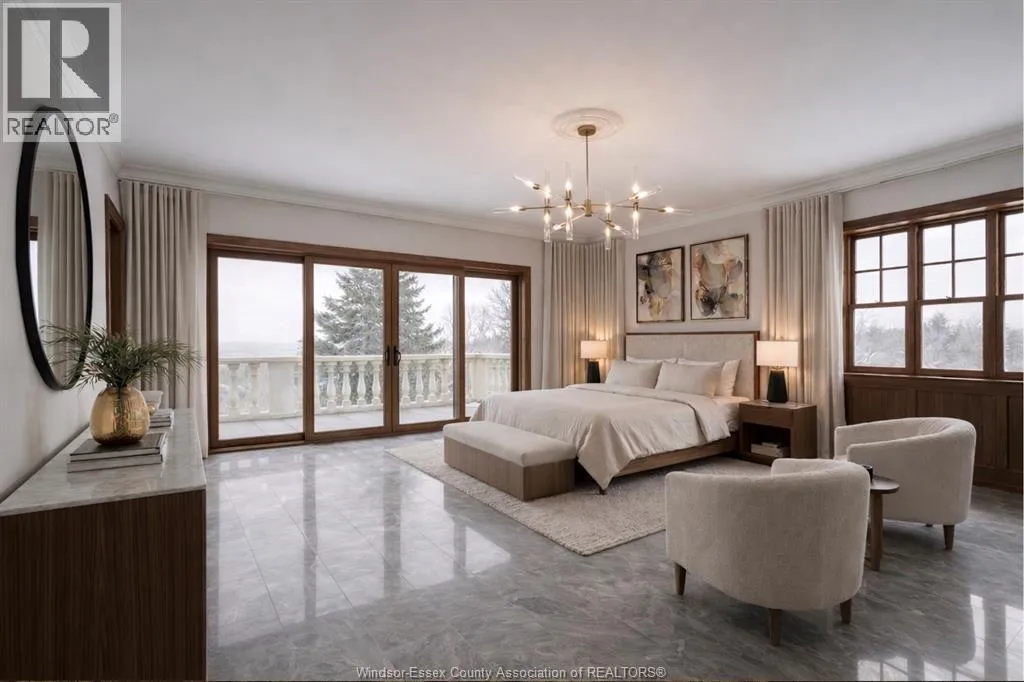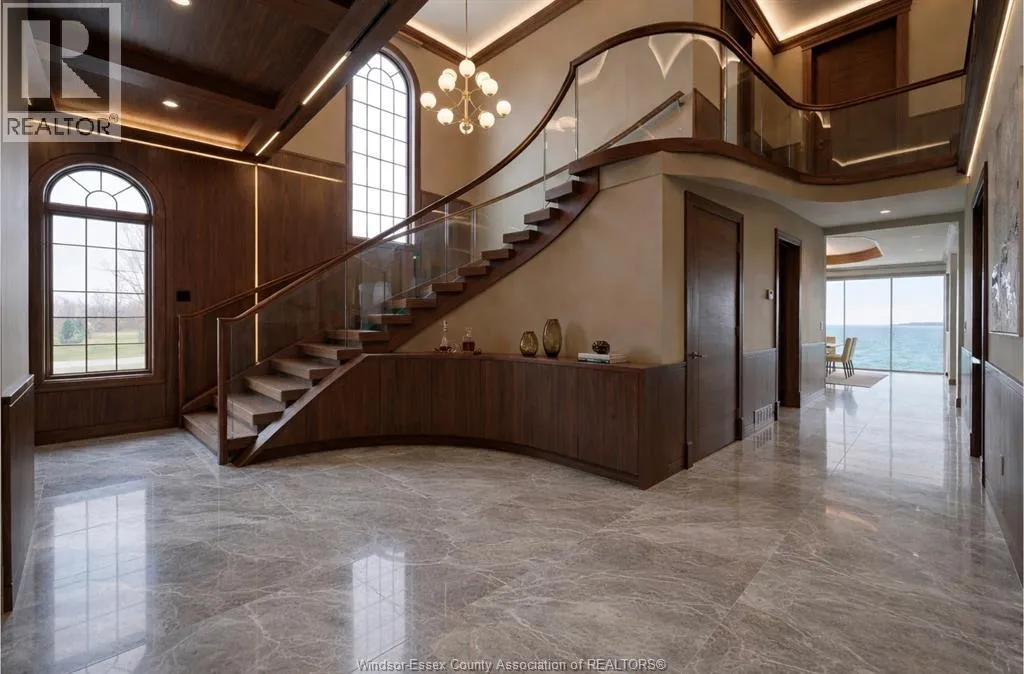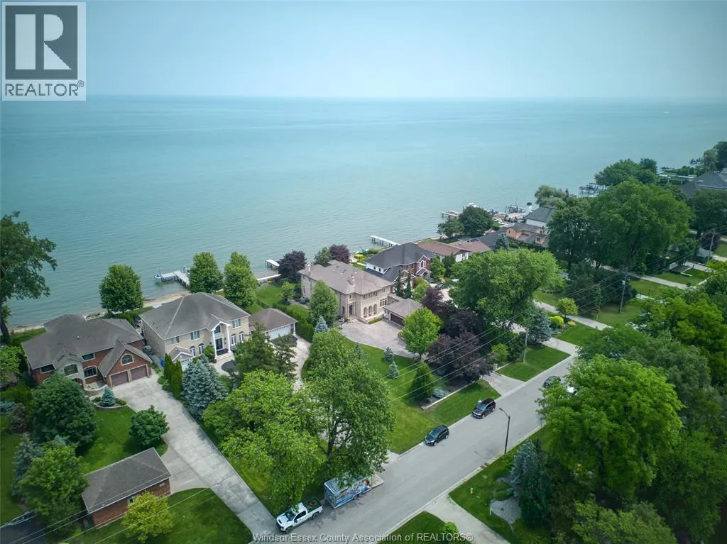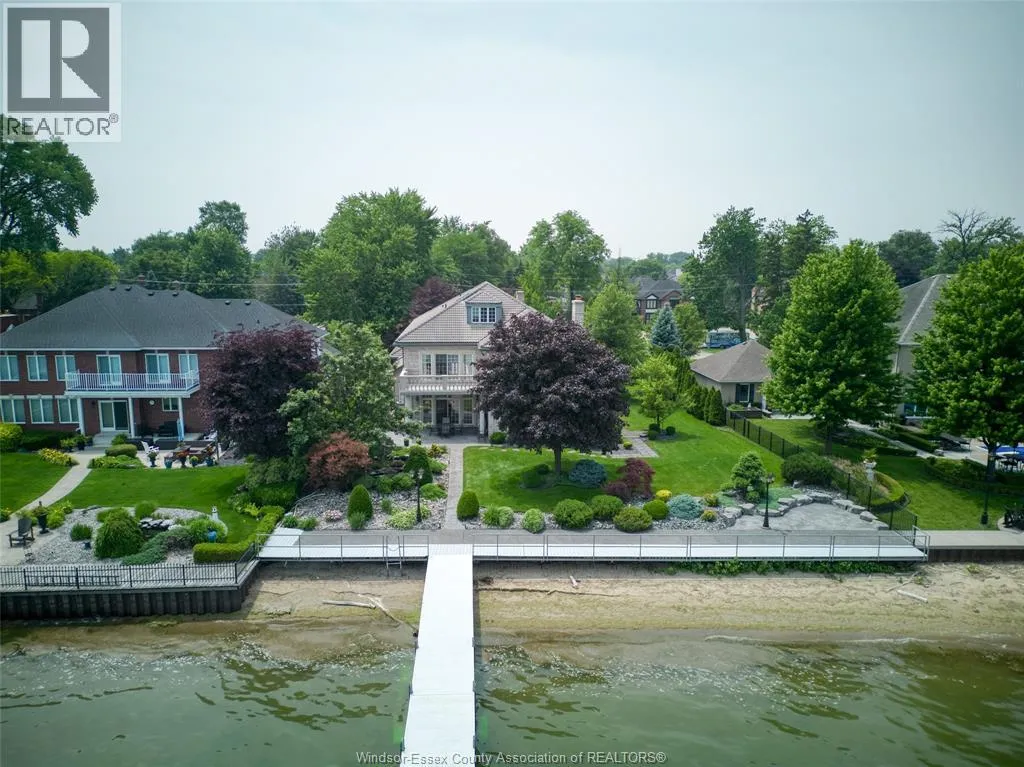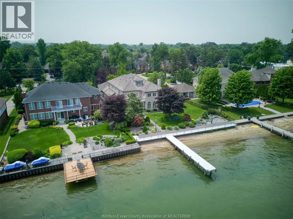 Waiting for her next chapterâan opportunity to reimagine, redesign, and bring your vision to life. Set along the shores of Lake St. Clair on an impressive 95-foot-wide lot, this elegant three-storey lakefront residence captures breathtaking panoramic water views and offers endless potential to create a truly exceptional waterfront retreat. Homes of this scale, craftsmanship, and presence are rarely built today. The home features five spacious bedrooms, seven bathrooms, a loft with sweeping lake views, and a fully finished lower levelâproviding ample space for family living and entertaining. A striking limestone façade, mature landscaping, and a grand two-storey great room with soaring ceilings showcase the homeâs timeless architecture and enduring quality that is seldom replicatedâan incredible opportunity on one of Windsorâs most prestigious streets to bring your vision to life. Some photos are rendering for inspiration purposes (id:27476)