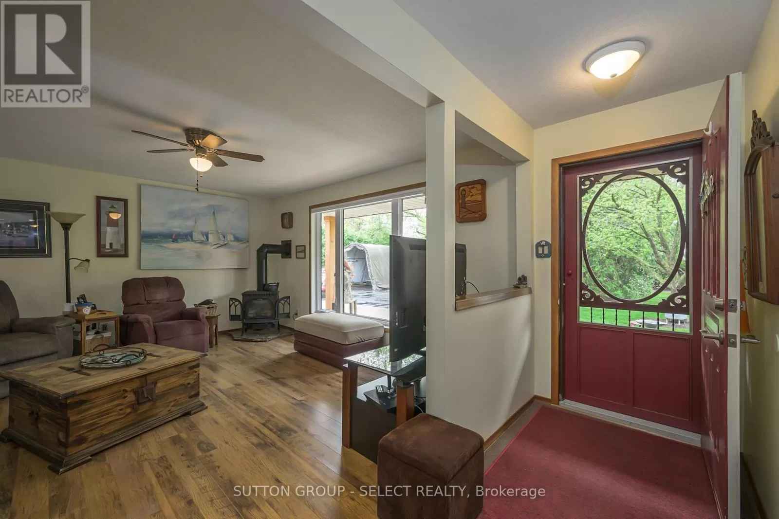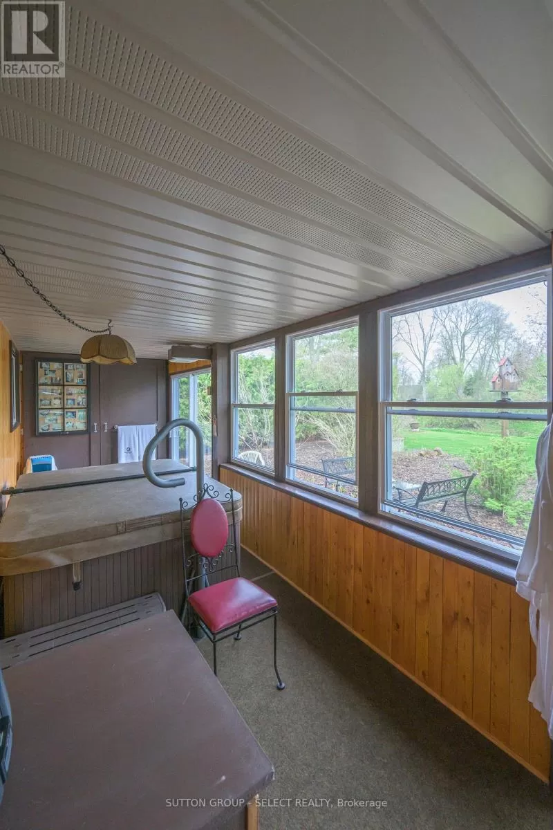 Cross Streets: ARKONA RD. ** Directions: OFF OF ARKONA RD AND BOG LINE. $675,000 - Winter Is Coming! Store Your Boat Right On The Property. Enjoy year-round living in this charming waterfront bungalow with direct access to the scenic Ausable River-just a 20-minute boat ride to Port Franks and minutes from Grand Bend. Set in a friendly adult and family community with school bus service available, this private 1,300 sq ft home blends comfort, nature, and recreation in one perfect package.Property Highlights3 bedrooms, 1.5 bathrooms. Bright, open-concept layout with engineered hardwood floors. Updated kitchen featuring granite countertops and farmhouse sink. Cozy 4-season sunroom plus an additional hot tub room for year-round relaxation. Oversized main bath with granite vanity; second bath includes convenient laundry12' x 14' screened gazebo by the river-ideal for morning coffee or sunset drinks. Pet-proof screens in key areas. Personal dock and nearby boat launch, perfect for motorboats, jet skis, kayaks, and paddle-boards. Two storage sheds plus covered RV and boat parking on an asphalt pad with a removable tarp shelterA rare opportunity to experience true waterfront living with privacy, comfort, and direct boating access-perfect for retirees, families, or anyone seeking a peaceful riverside retreat. (id:27476)
