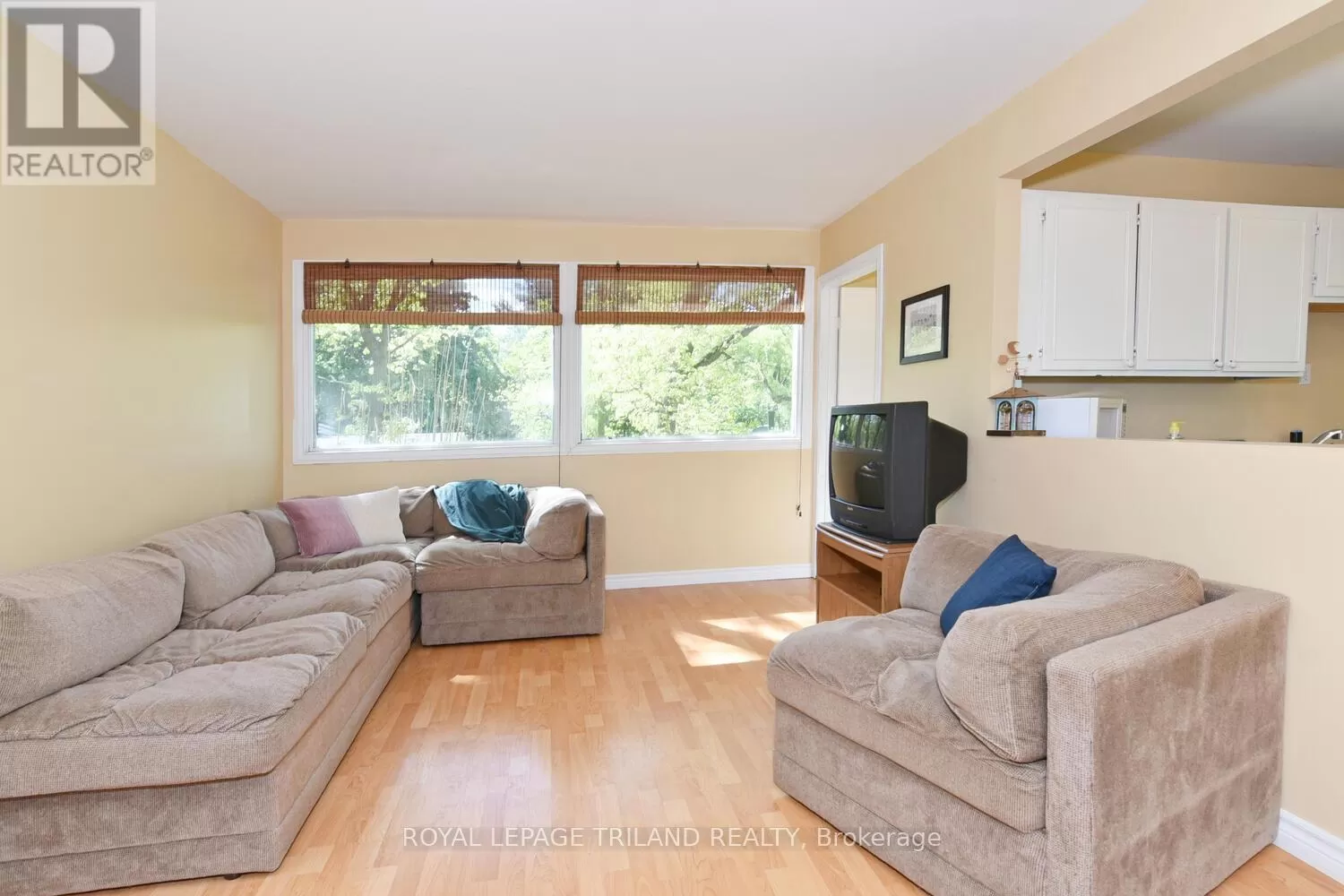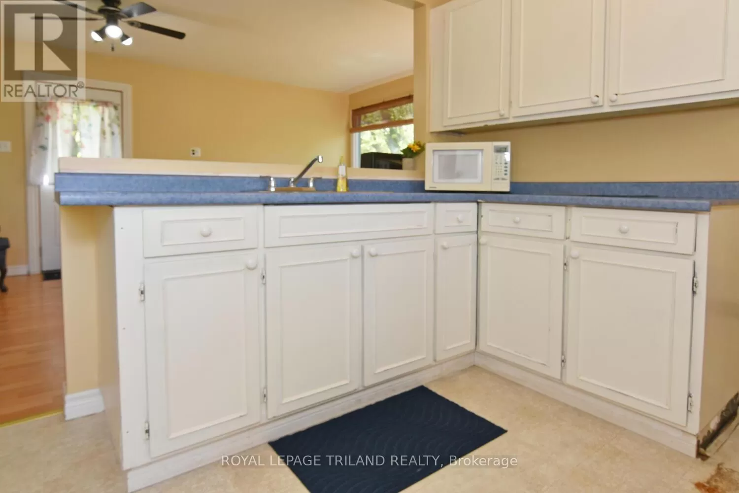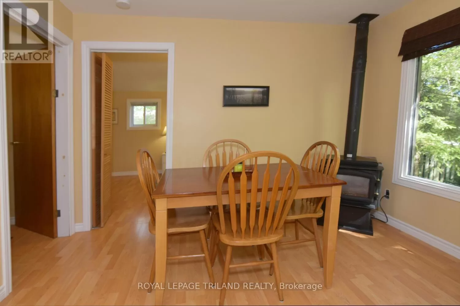 Herbert St. & Katharine St. Cozy 2 bedroom cottage in Port Franks. Open-concept kitchen, dining and living area with a gas fireplace. White wooden cabinets in the kitchen. Laminate & linoleum floors throughout. Lots of windows allow an abundance of natural light. Bright primary bedroom with large window and walk-in closet. Decent sized 2nd bedroom with window and closet. Bathroom with shower. Front deck surrounded by large trees is great for entertaining. Shed out back. Deed for docking included. Close to river, walking trails, marinas, golf, restaurants and the beach! (id:27476)