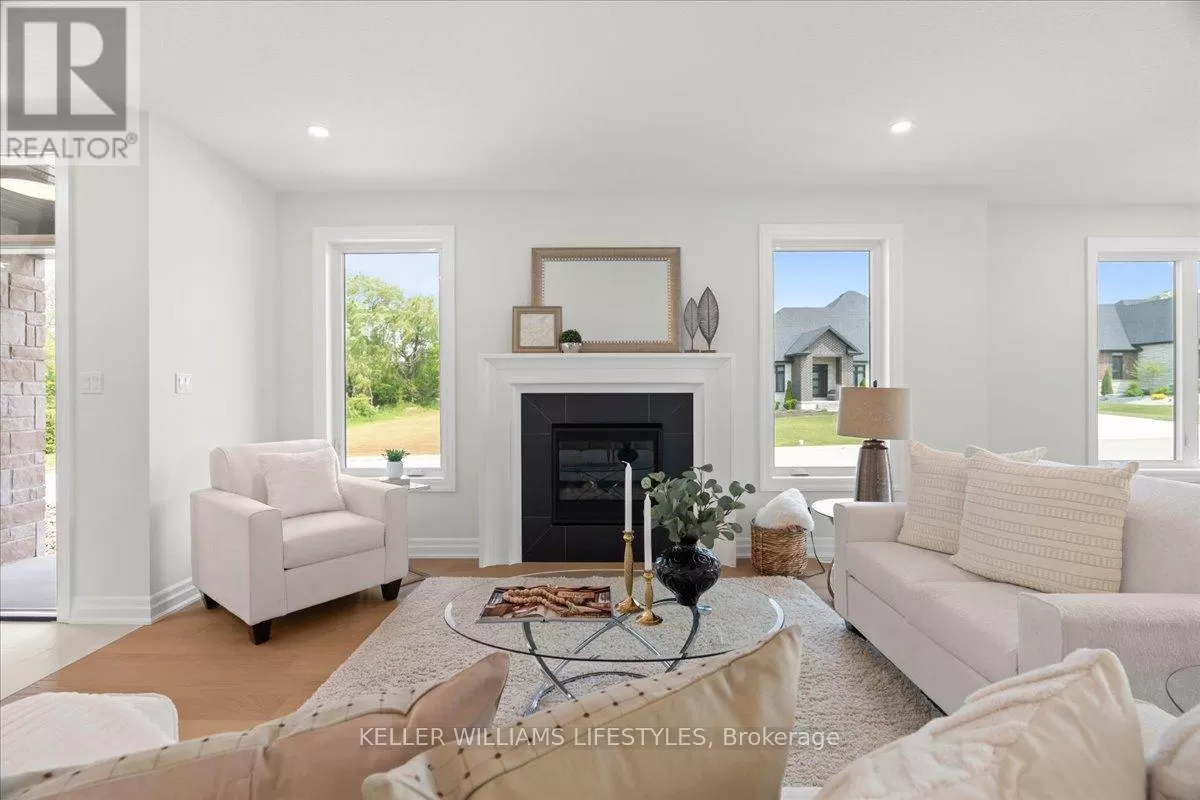 Cross Streets: ANN ST. ** Directions: From Townsend Line, take Ann St., N. to East Glen Dr. Welcome to Crossfield Estates by Banman Developments! This newly completed home showcases exceptional quality, craftsmanship, and upscale finishes throughout. Offering 1,808 sq ft, this thoughtfully designed 3-bedroom, 2-bathroom bungalow features custom cabinetry, quartz countertops, stunning hardwood floors, and a cozy gas fireplace. A full unspoiled basement leaves endless possibilities for additional finished space should you desire. The attention to detail continues outside with beautiful exterior architecture, including stone skirting and board and batten siding, poured concrete driveway and walkway for a refined and sophisticated look. Set on an generous sized lot, the home is located in a quiet community this is approx. 30 minutes from both London and Sarnia and only 20 minutes to Lake Huron that offers some of the best crystal clear water and sand beaches in all of Ontario. With 29 generously sized estate lots, many backing onto Arkona Fairways Golf Course, this is a rare opportunity to live in luxury surrounded by nature. A variety of floor plans and lots are available to suit your lifestyle. Come explore the possibilities today! (id:27476)