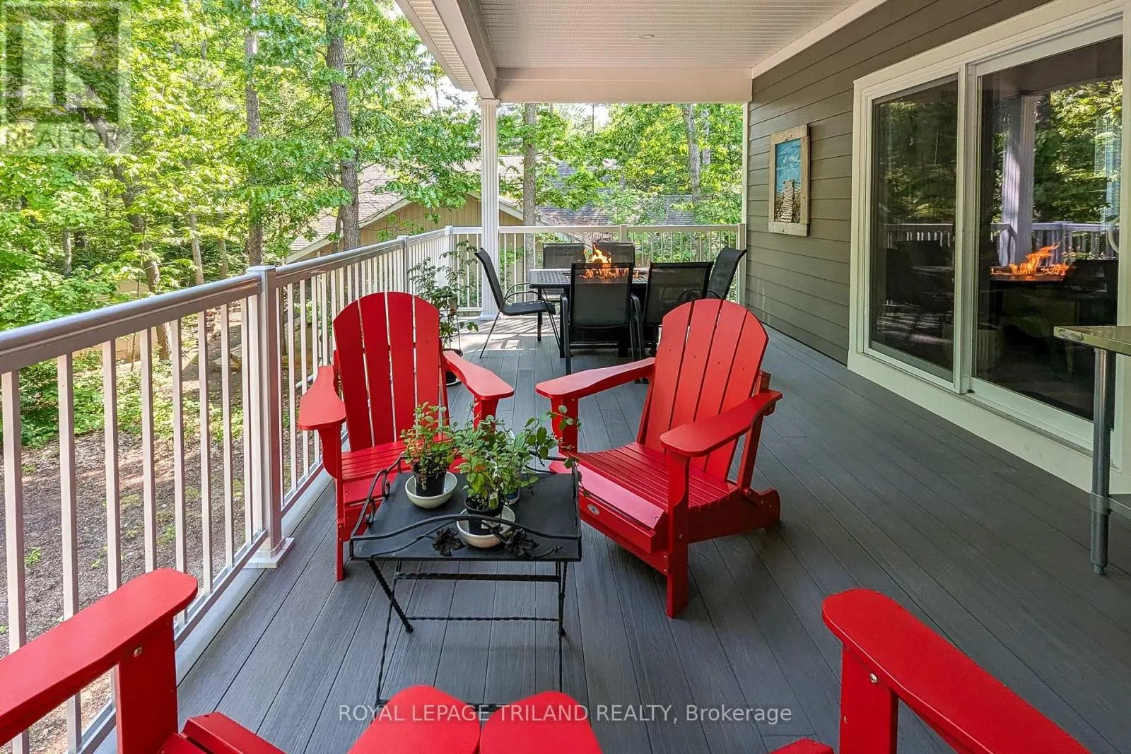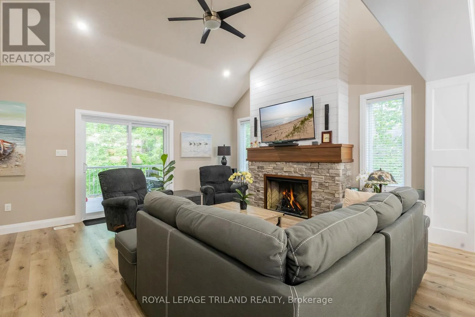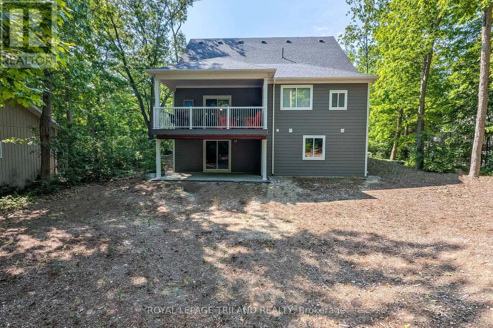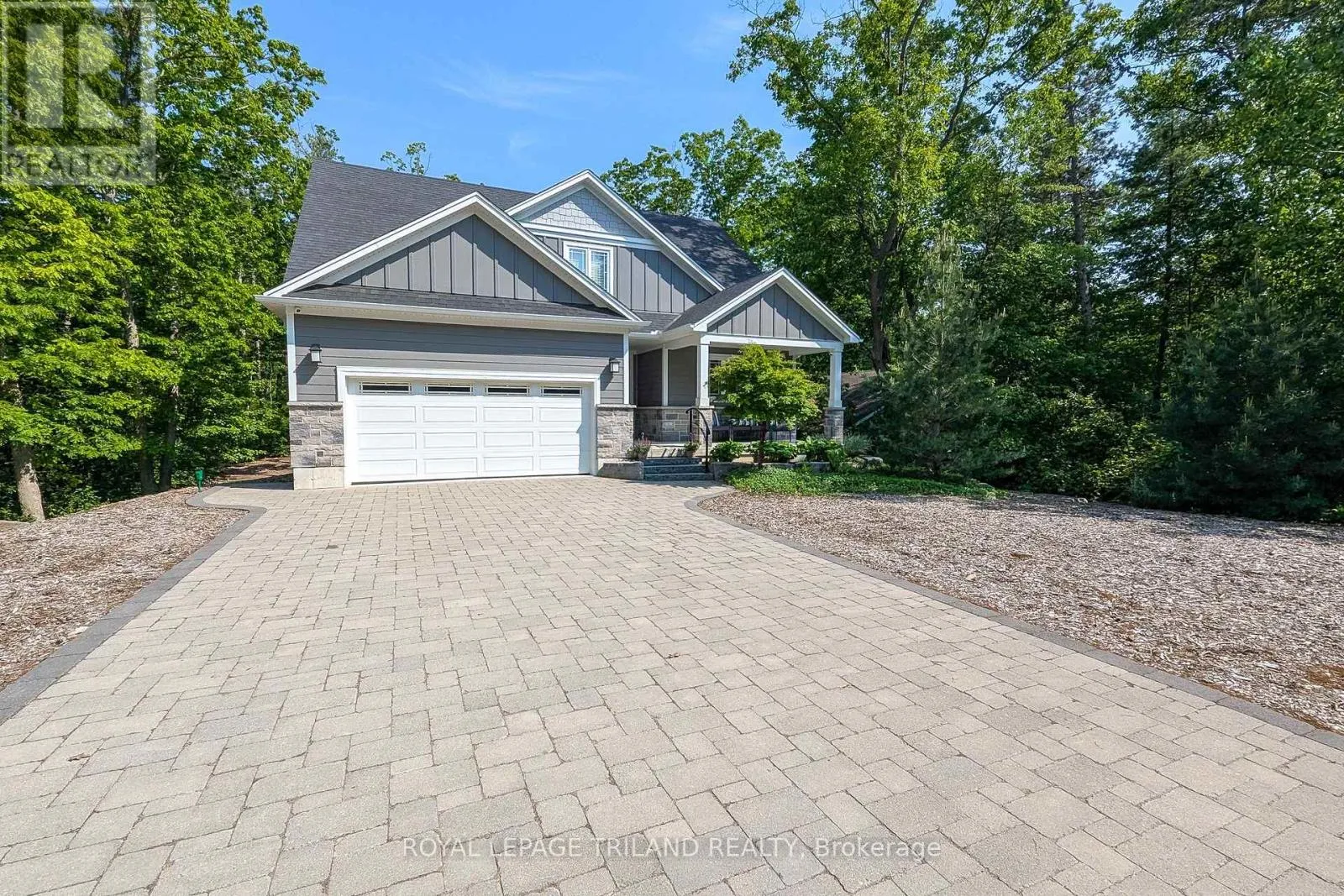 Cross Streets: Beach O' Pines Road. ** Directions: GPS to 10124 Sandalwood Crescent | Located at the top of the Beach O' Pines subdivision in Huron Woods II, a breezy 10 minute walk to your private & exclusive beach access in Beach O' Pines & a short bike ride to downtown up the rotary bike path!. LIKE NEW in GRAND BEND with deeded beach access down Beach O' Pines Rd, this spectacular 4 bedroom 2019 custom family home ticks all the boxes! Nestled into the trees in the Huron Woods II subdivision, you can enjoy Huron Woods subdivision amenities but in a secluded & quiet crescent location that is closer to downtown amenities. The well-finished main & upper levels are in such immaculate condition, it's as if the house has never been used. Plus, you still have the expansive walk-out lower level to increase your living space by adding 2 more bedrooms, a 4th bathroom (4th bath is roughed-in, lower level), a family room, etc. With 2093 sq ft of impeccably well-kept living space & the potential for growth in the lower level, this could be a 3500+ sq ft 6 bedroom home! The hit list is extensive, & to be expected with new construction: Large open concept great room/kitchen/dining area with soaring vaulted ceilings, 9 ft ceilings throughout rest of main level, gorgeous custom cabinetry & millwork, tasteful quartz counters throughout home, peninsula bar eating area plus dining area, premium fixtures & tile work, LED lighting, 200 AMP electrical service, main floor laundry w/ sink, covered balcony deck w/ Trex composite decking, attractive stone & shiplap fireplace, walk-out lower level over paver stone patio & also a paver stone driveway, exterior stone work plus lifetime board & batten Hardy Board, 2 car attached garage, & finally, low maintenance landscaping w/perennials & woodchips! Appliances are included, all of which are like new! Also, given its young age, there is still 1.5 yrs left on the new home warranty (goes to Oct 2026). Just a short walk to to your private beach & a quick bike ride into town along the Rotary bike bath, this 2019 custom gem represents superb value for Grand Bend. Won't last long! (id:27476)