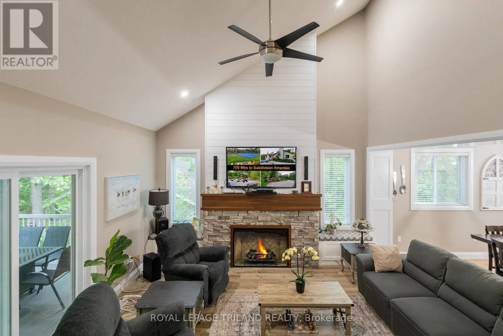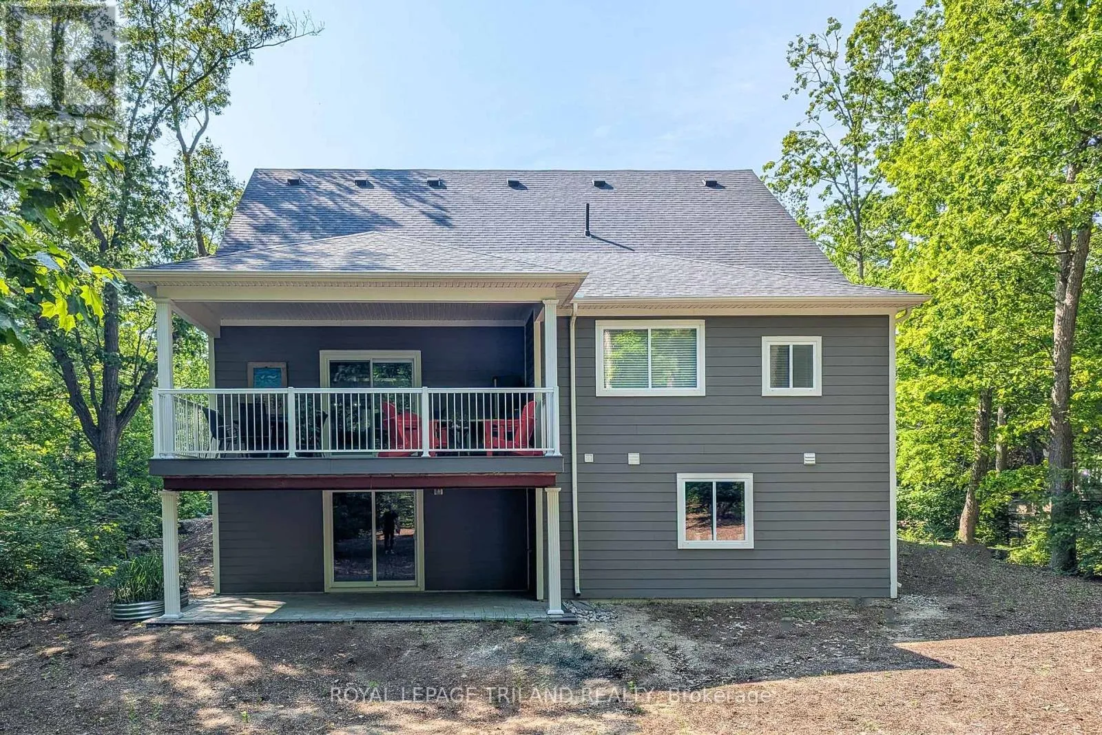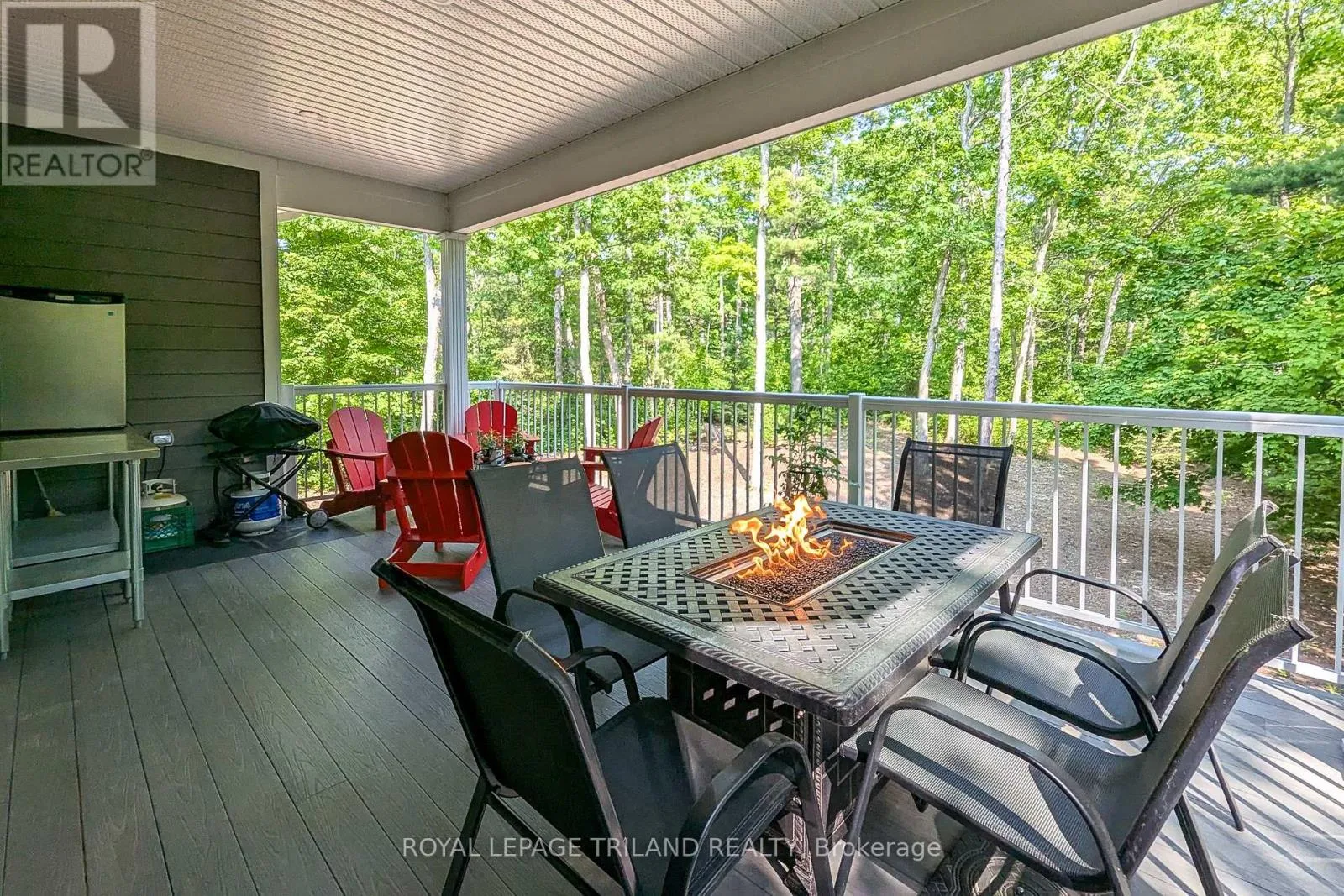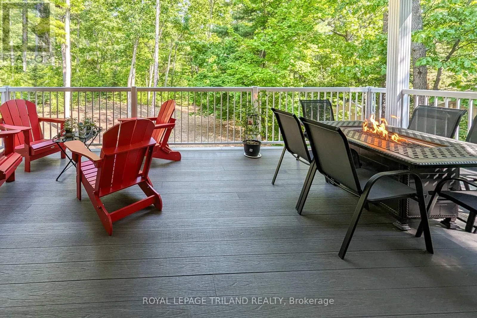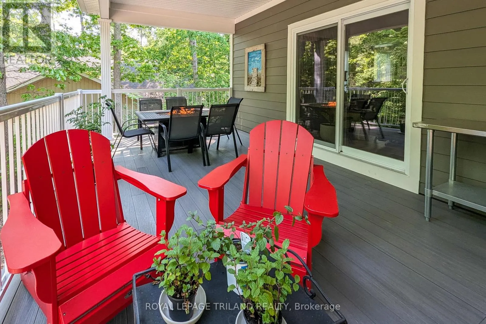 Cross Streets: Beach O' Pines Road. ** Directions: GPS to 10124 Sandalwood Crescent | Located at the top of the Beach O' Pines subdivision in Huron Woods II, a breezy 10 minute walk to your private & exclusive beach access in Beach O' Pines & a short bike ride to downtown up the rotary bike path!. LIKE NEW in GRAND BEND with deeded beach access down Beach O' Pines Rd, this spectacular 4 bedroom 2019 custom family home ticks all the boxes! Nestled into the trees in the Huron Woods II subdivision, you can enjoy Huron Woods subdivision amenities but in a secluded & quiet crescent location that is closer to downtown amenities. The well-finished main & upper levels are in such immaculate condition, it's as if the house has never been used. Plus, you still have the expansive walk-out lower level to increase your living space by adding 2 more bedrooms, a 4th bathroom (4th bath is roughed-in, lower level), a family room, etc. With 2093 sq ft of impeccably well-kept living space & the potential for growth in the lower level, this could be a 3500+ sq ft 6 bedroom home! The hit list is extensive, & to be expected with new construction: Large open concept great room/kitchen/dining area with soaring vaulted ceilings, 9 ft ceilings throughout rest of main level, gorgeous custom cabinetry & millwork, tasteful quartz counters throughout home, peninsula bar eating area plus dining area, premium fixtures & tile work, LED lighting, 200 AMP electrical service, main floor laundry w/ sink, covered balcony deck w/ Trex composite decking, attractive stone & shiplap fireplace, walk-out lower level over paver stone patio & also a paver stone driveway, exterior stone work plus lifetime board & batten Hardy Board, 2 car attached garage, & finally, low maintenance landscaping w/perennials & woodchips! Appliances are included, all of which are like new! Also, given its young age, there is still 1.5 yrs left on the new home warranty (goes to Oct 2026). Just a short walk to to your private beach & a quick bike ride into town along the Rotary bike bath, this 2019 custom gem represents superb value for Grand Bend. Won't last long! (id:27476)