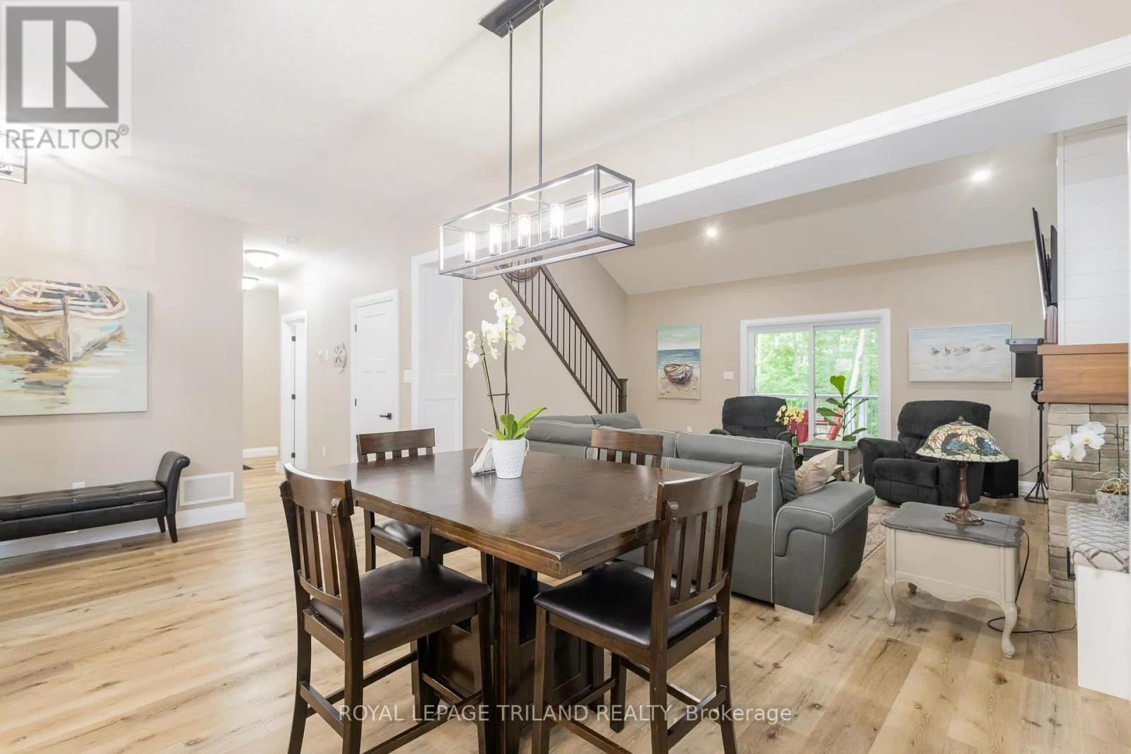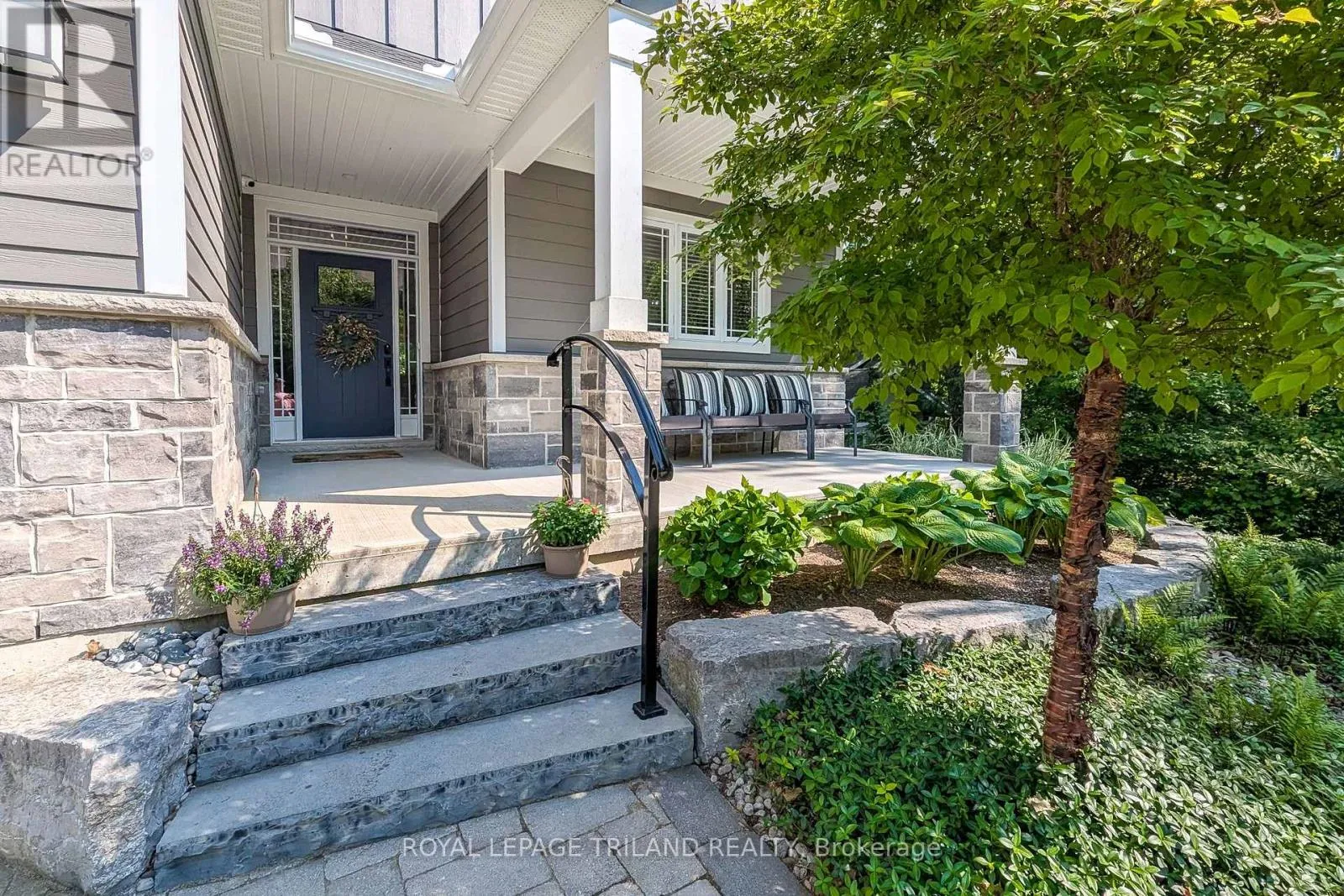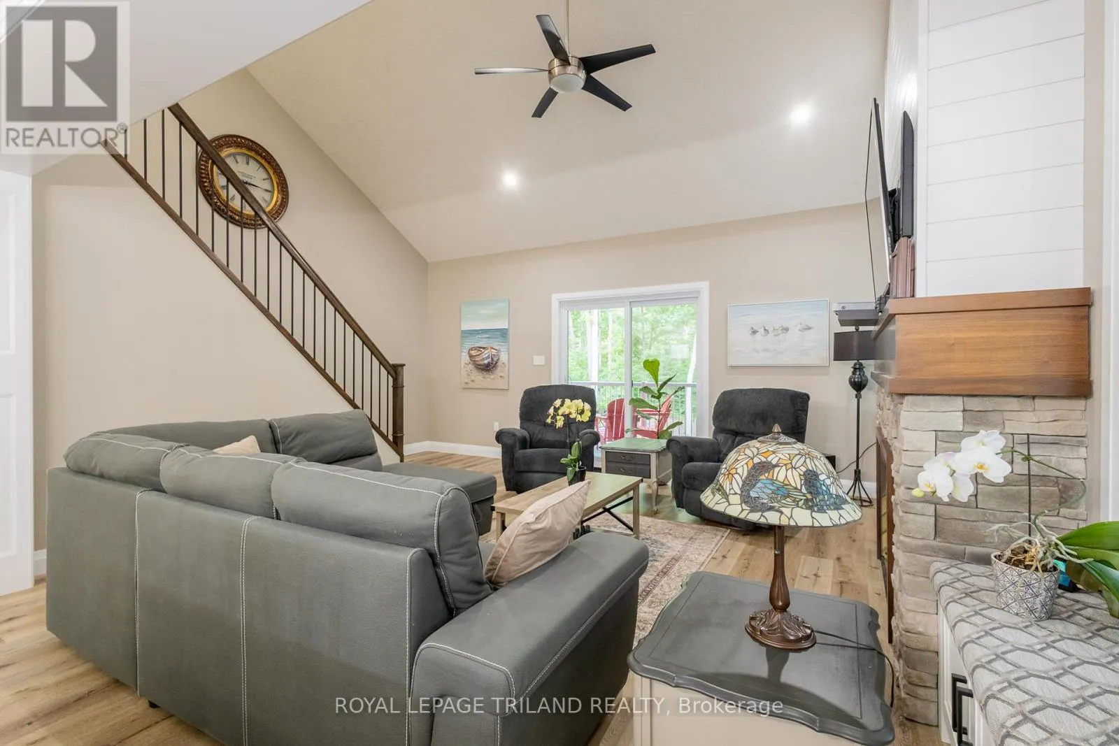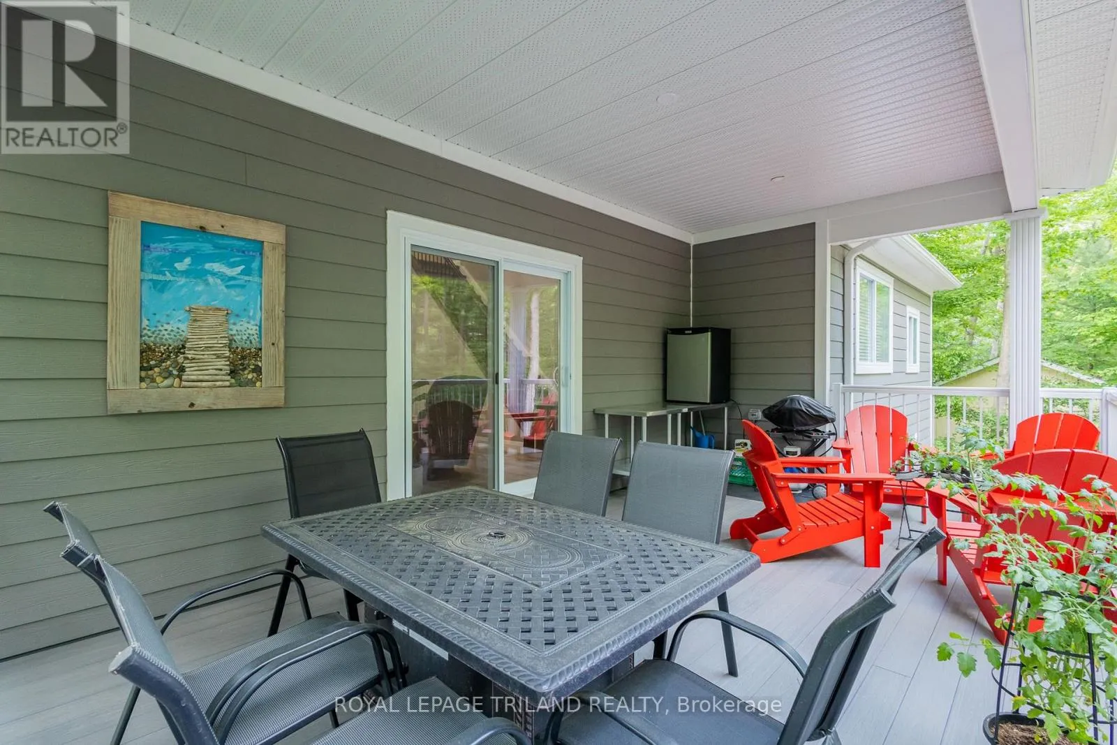 Cross Streets: Beach O' Pines Road. ** Directions: GPS to 10124 Sandalwood Crescent | Located at the top of the Beach O' Pines subdivision in Huron Woods II, a breezy 10 minute walk to your private & exclusive beach access in Beach O' Pines & a short bike ride to downtown up the rotary bike path!. LIKE NEW in GRAND BEND with deeded beach access down Beach O' Pines Rd, this spectacular 4 bedroom 2019 custom family home ticks all the boxes! Nestled into the trees in the Huron Woods II subdivision, you can enjoy Huron Woods subdivision amenities but in a secluded & quiet crescent location that is closer to downtown amenities. The well-finished main & upper levels are in such immaculate condition, it's as if the house has never been used. Plus, you still have the expansive walk-out lower level to increase your living space by adding 2 more bedrooms, a 4th bathroom (4th bath is roughed-in, lower level), a family room, etc. With 2093 sq ft of impeccably well-kept living space & the potential for growth in the lower level, this could be a 3500+ sq ft 6 bedroom home! The hit list is extensive, & to be expected with new construction: Large open concept great room/kitchen/dining area with soaring vaulted ceilings, 9 ft ceilings throughout rest of main level, gorgeous custom cabinetry & millwork, tasteful quartz counters throughout home, peninsula bar eating area plus dining area, premium fixtures & tile work, LED lighting, 200 AMP electrical service, main floor laundry w/ sink, covered balcony deck w/ Trex composite decking, attractive stone & shiplap fireplace, walk-out lower level over paver stone patio & also a paver stone driveway, exterior stone work plus lifetime board & batten Hardy Board, 2 car attached garage, & finally, low maintenance landscaping w/perennials & woodchips! Appliances are included, all of which are like new! Also, given its young age, there is still 1.5 yrs left on the new home warranty (goes to Oct 2026). Just a short walk to to your private beach & a quick bike ride into town along the Rotary bike bath, this 2019 custom gem represents superb value for Grand Bend. Won't last long! (id:27476)