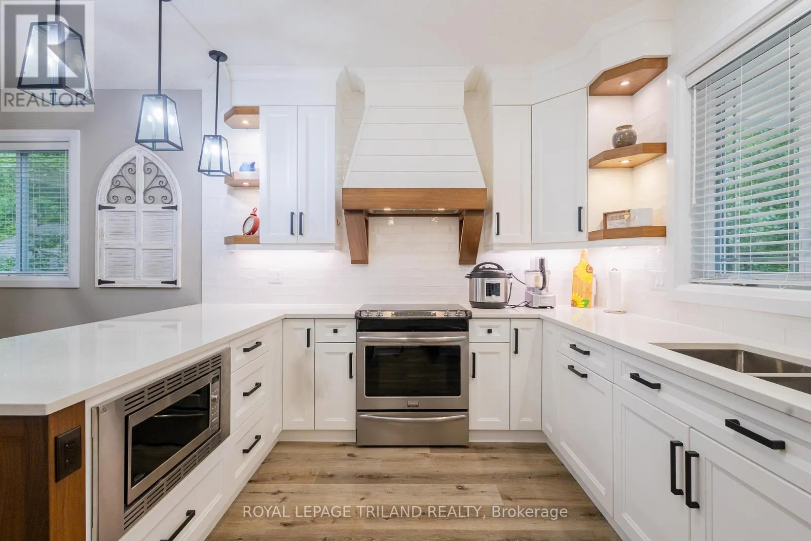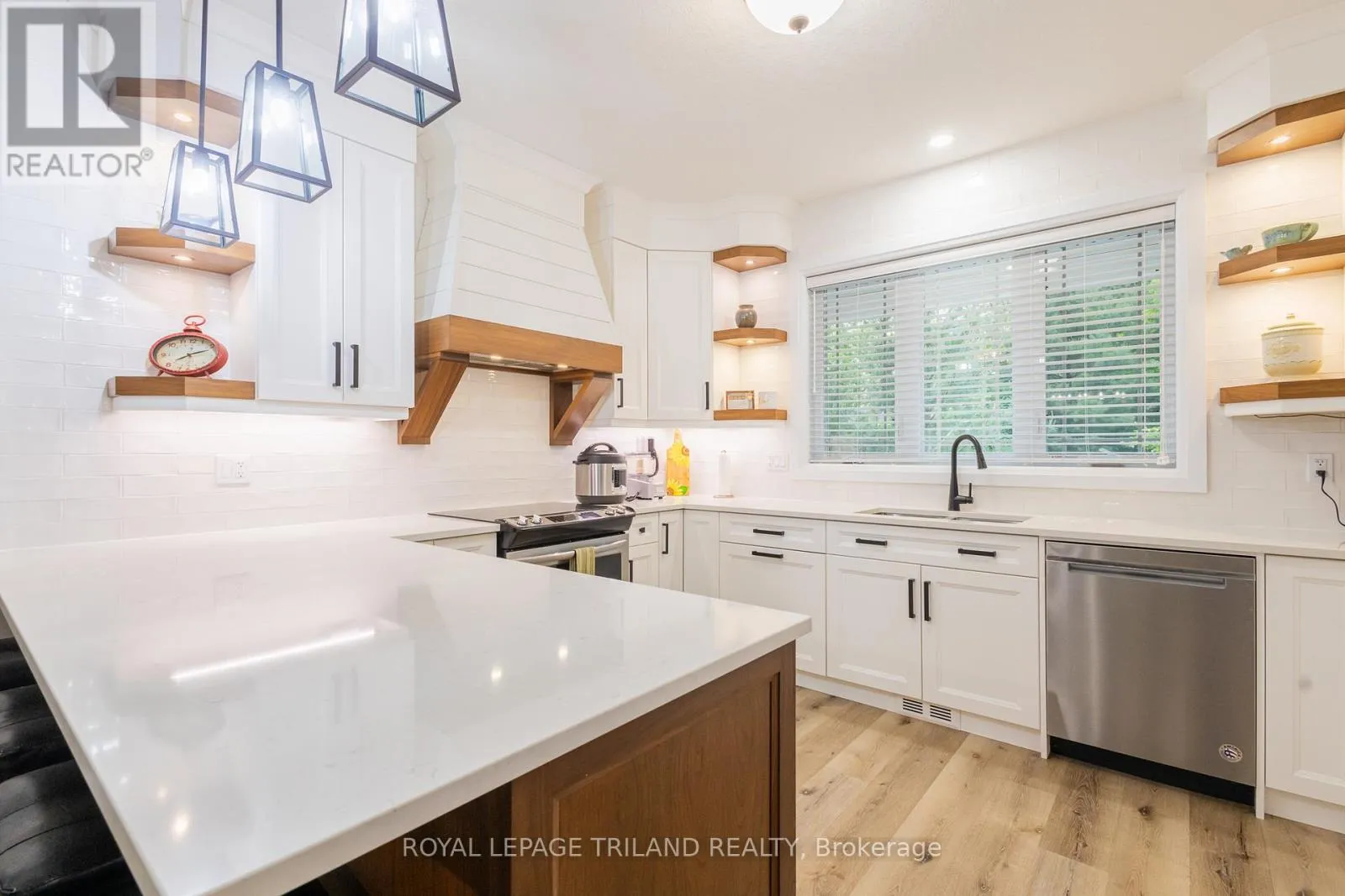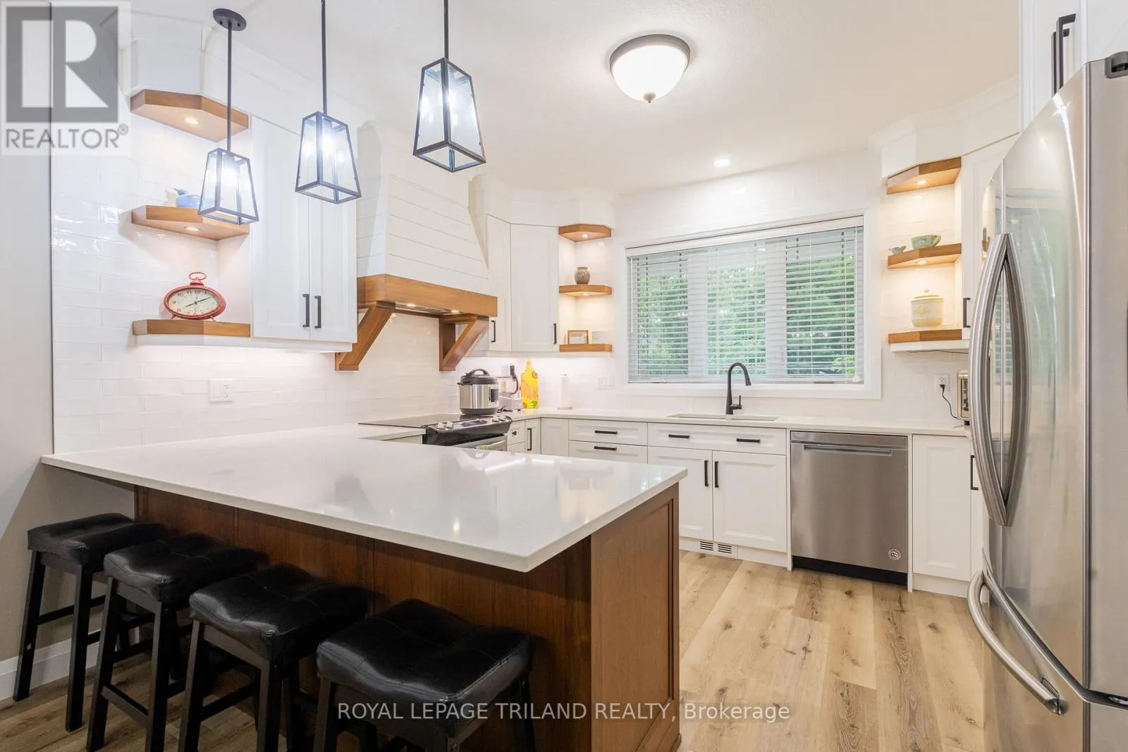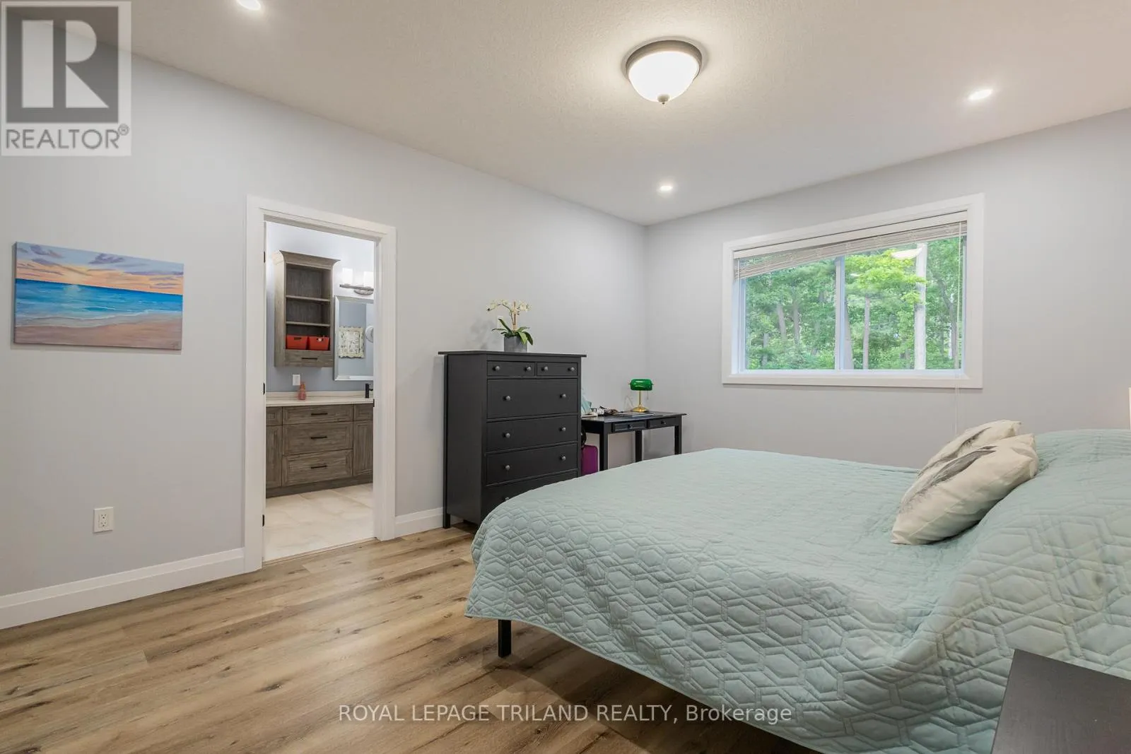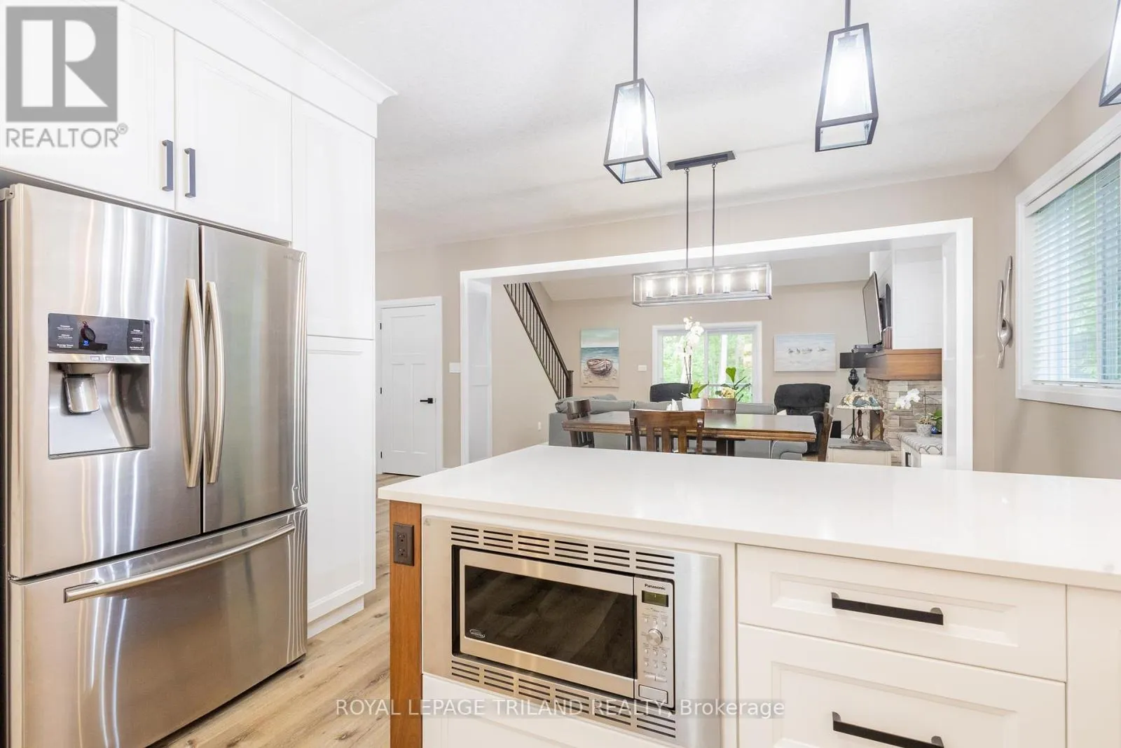 Cross Streets: Beach O' Pines Road. ** Directions: GPS to 10124 Sandalwood Crescent | Located at the top of the Beach O' Pines subdivision in Huron Woods II, a breezy 10 minute walk to your private & exclusive beach access in Beach O' Pines & a short bike ride to downtown up the rotary bike path!. LIKE NEW in GRAND BEND with deeded beach access down Beach O' Pines Rd, this spectacular 4 bedroom 2019 custom family home ticks all the boxes! Nestled into the trees in the Huron Woods II subdivision, you can enjoy Huron Woods subdivision amenities but in a secluded & quiet crescent location that is closer to downtown amenities. The well-finished main & upper levels are in such immaculate condition, it's as if the house has never been used. Plus, you still have the expansive walk-out lower level to increase your living space by adding 2 more bedrooms, a 4th bathroom (4th bath is roughed-in, lower level), a family room, etc. With 2093 sq ft of impeccably well-kept living space & the potential for growth in the lower level, this could be a 3500+ sq ft 6 bedroom home! The hit list is extensive, & to be expected with new construction: Large open concept great room/kitchen/dining area with soaring vaulted ceilings, 9 ft ceilings throughout rest of main level, gorgeous custom cabinetry & millwork, tasteful quartz counters throughout home, peninsula bar eating area plus dining area, premium fixtures & tile work, LED lighting, 200 AMP electrical service, main floor laundry w/ sink, covered balcony deck w/ Trex composite decking, attractive stone & shiplap fireplace, walk-out lower level over paver stone patio & also a paver stone driveway, exterior stone work plus lifetime board & batten Hardy Board, 2 car attached garage, & finally, low maintenance landscaping w/perennials & woodchips! Appliances are included, all of which are like new! Also, given its young age, there is still 1.5 yrs left on the new home warranty (goes to Oct 2026). Just a short walk to to your private beach & a quick bike ride into town along the Rotary bike bath, this 2019 custom gem represents superb value for Grand Bend. Won't last long! (id:27476)