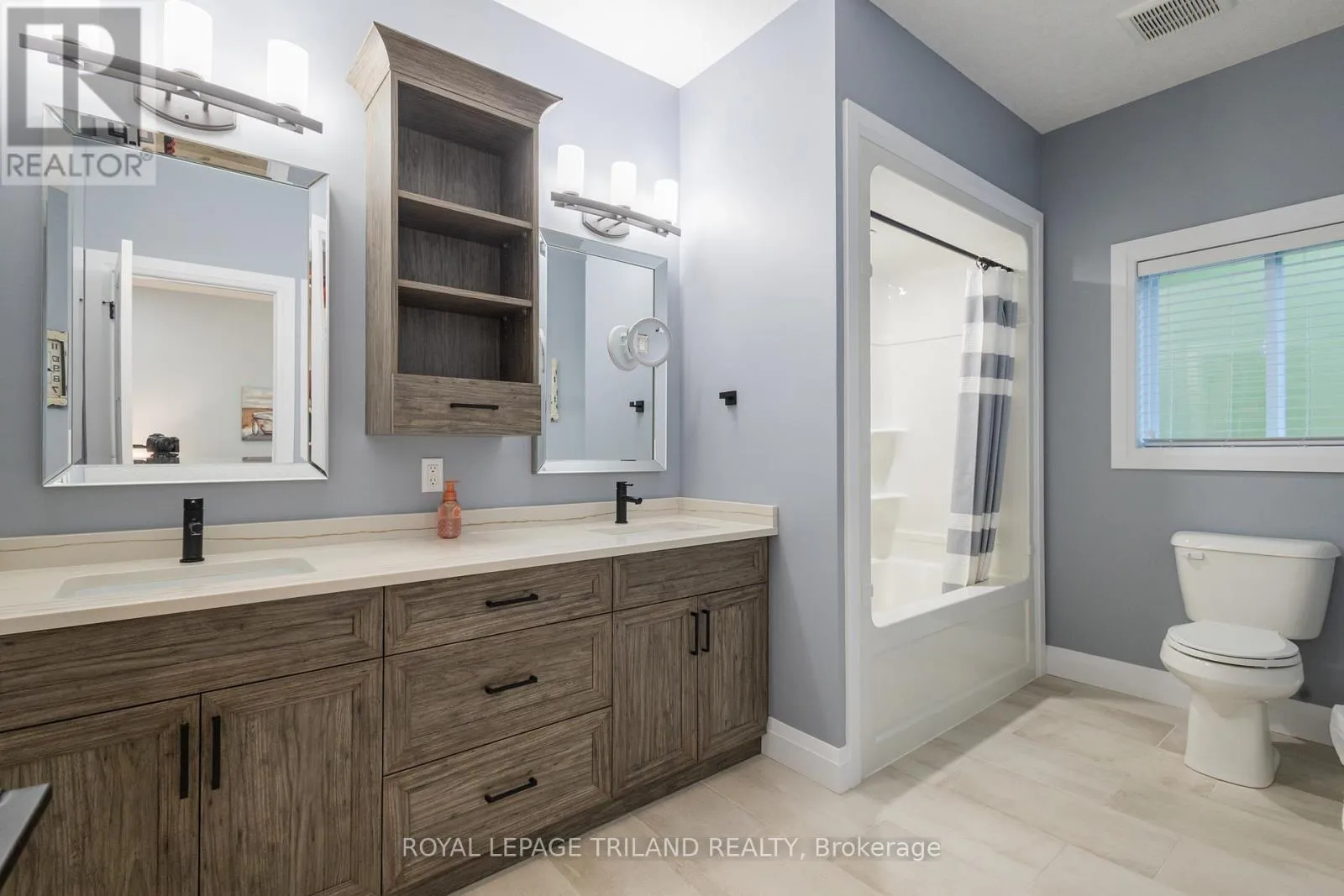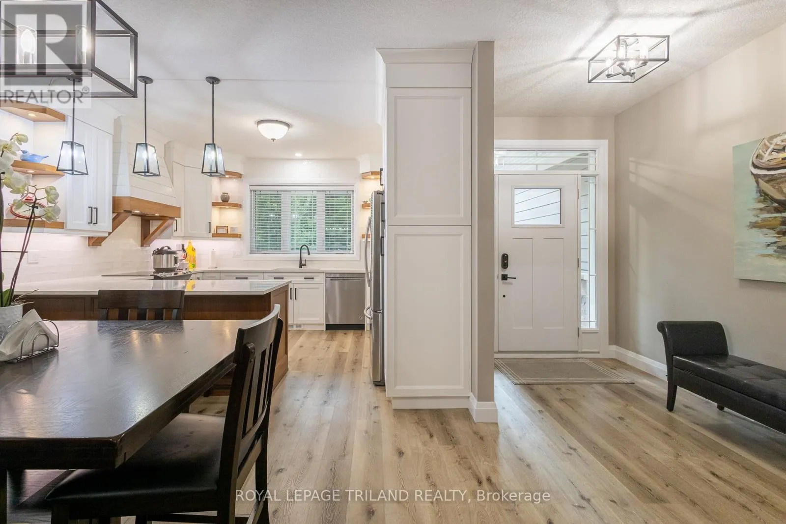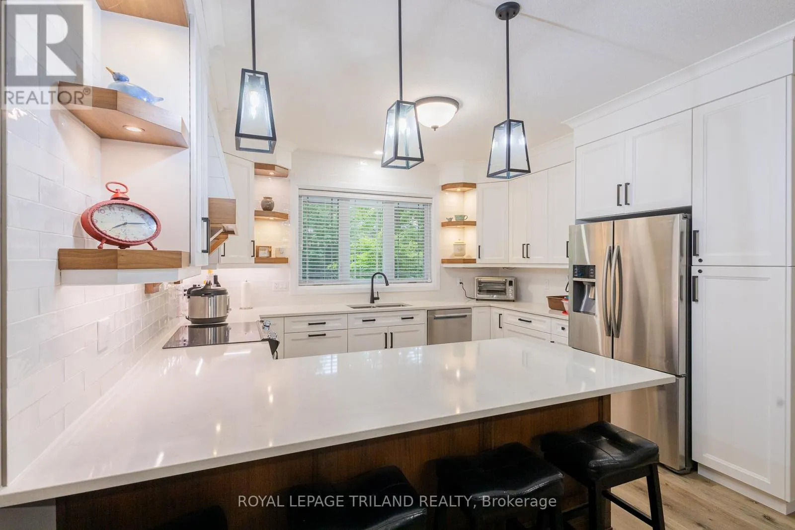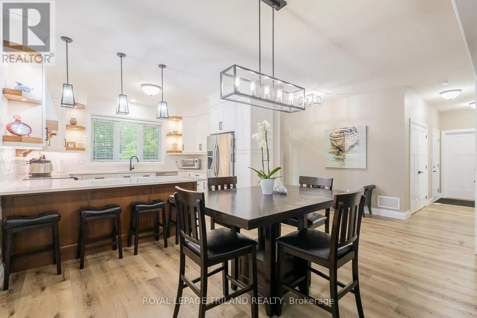 Cross Streets: Beach O' Pines Road. ** Directions: GPS to 10124 Sandalwood Crescent | Located at the top of the Beach O' Pines subdivision in Huron Woods II, a breezy 10 minute walk to your private & exclusive beach access in Beach O' Pines & a short bike ride to downtown up the rotary bike path!. LIKE NEW in GRAND BEND with deeded beach access down Beach O' Pines Rd, this spectacular 4 bedroom 2019 custom family home ticks all the boxes! Nestled into the trees in the Huron Woods II subdivision, you can enjoy Huron Woods subdivision amenities but in a secluded & quiet crescent location that is closer to downtown amenities. The well-finished main & upper levels are in such immaculate condition, it's as if the house has never been used. Plus, you still have the expansive walk-out lower level to increase your living space by adding 2 more bedrooms, a 4th bathroom (4th bath is roughed-in, lower level), a family room, etc. With 2093 sq ft of impeccably well-kept living space & the potential for growth in the lower level, this could be a 3500+ sq ft 6 bedroom home! The hit list is extensive, & to be expected with new construction: Large open concept great room/kitchen/dining area with soaring vaulted ceilings, 9 ft ceilings throughout rest of main level, gorgeous custom cabinetry & millwork, tasteful quartz counters throughout home, peninsula bar eating area plus dining area, premium fixtures & tile work, LED lighting, 200 AMP electrical service, main floor laundry w/ sink, covered balcony deck w/ Trex composite decking, attractive stone & shiplap fireplace, walk-out lower level over paver stone patio & also a paver stone driveway, exterior stone work plus lifetime board & batten Hardy Board, 2 car attached garage, & finally, low maintenance landscaping w/perennials & woodchips! Appliances are included, all of which are like new! Also, given its young age, there is still 1.5 yrs left on the new home warranty (goes to Oct 2026). Just a short walk to to your private beach & a quick bike ride into town along the Rotary bike bath, this 2019 custom gem represents superb value for Grand Bend. Won't last long! (id:27476)