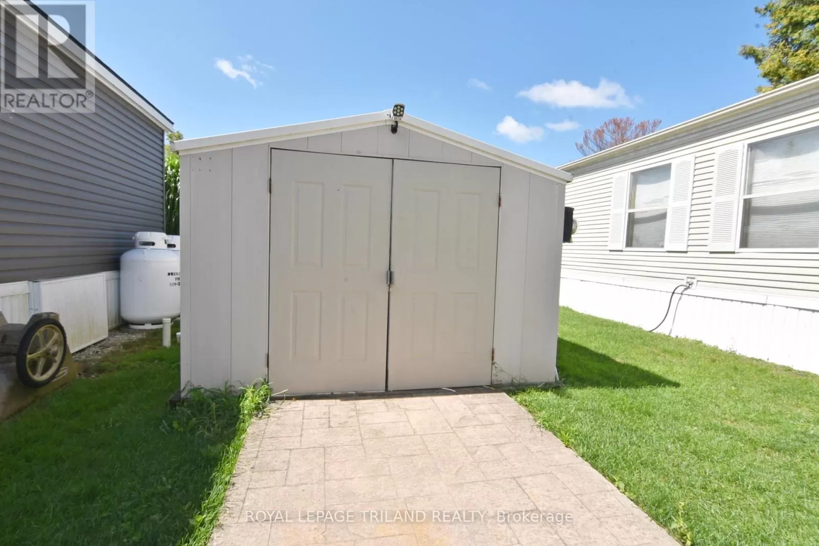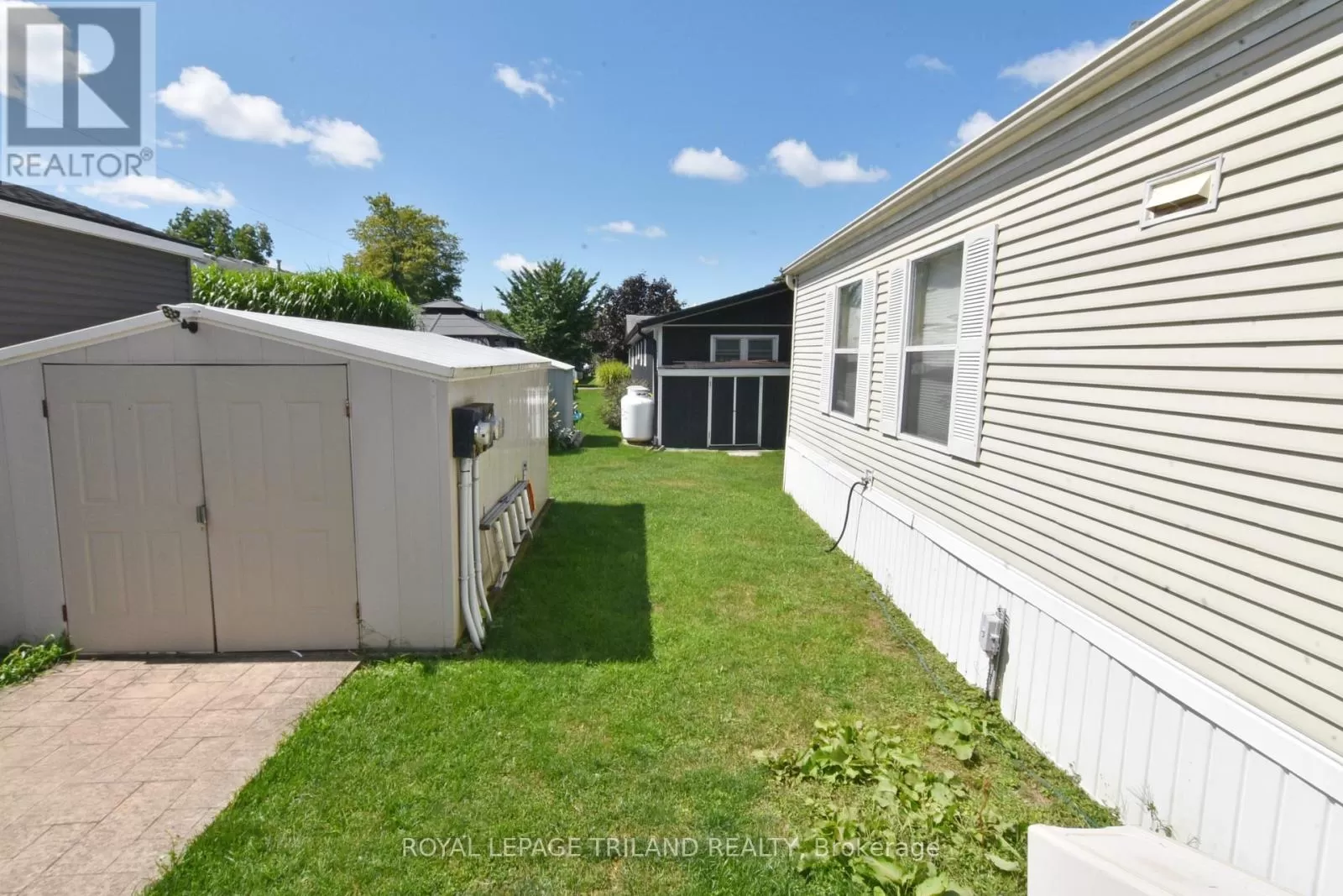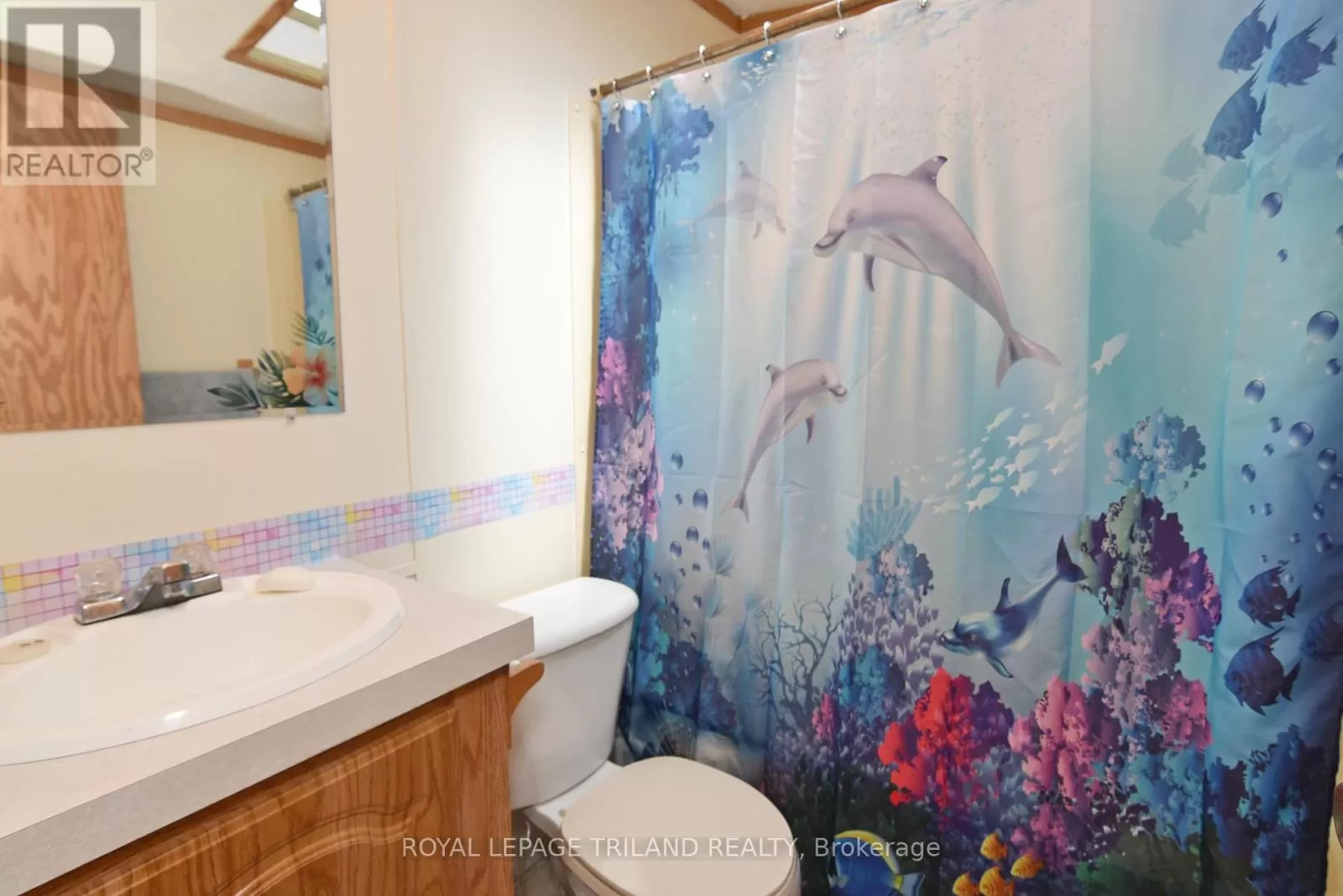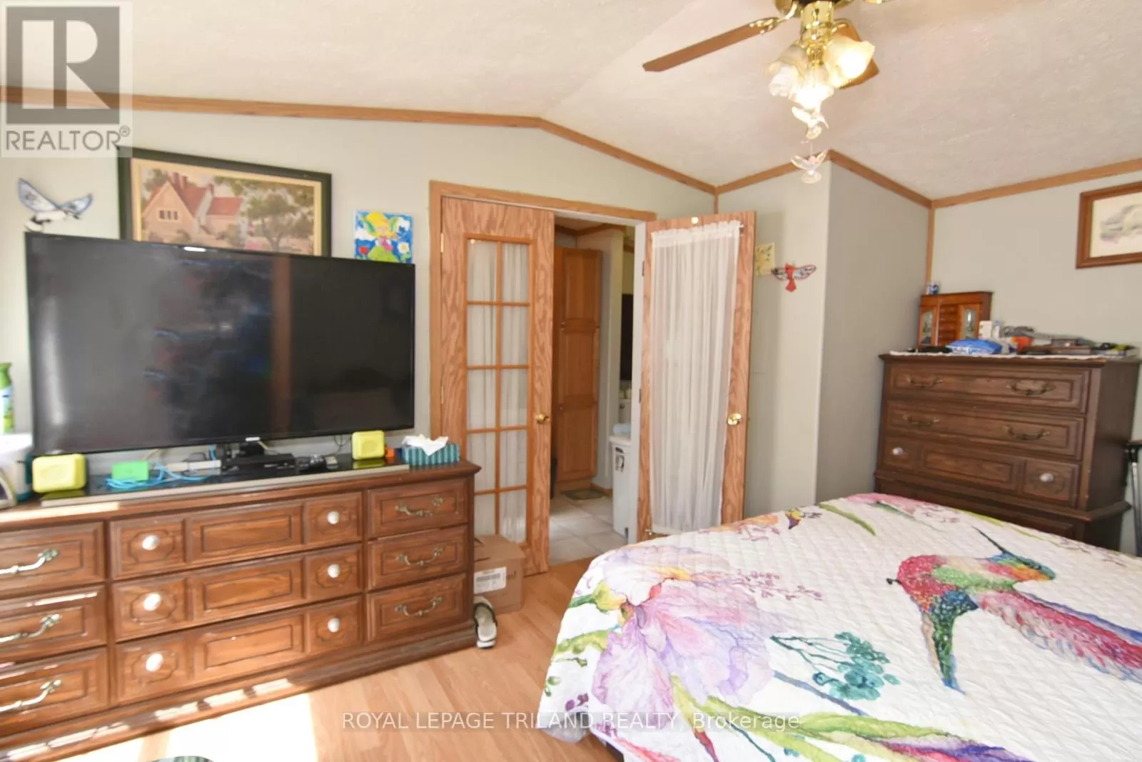 Cross Streets: HWY 21 & IPPERWASH ROAD. ** Directions: HWY 21 TO IPPERWASH ROAD, TURN LEFT INTO WOODHAVEN PARK. FOUR SEASON - 3 Bedroom / 2 Bath Mobile Home in Woodhaven Resort. Near Ipperwash Beach. Open concept kitchen / dining / living room with vaulted ceiling, laminate floors and propane gas fireplace. Large kitchen has plenty of cupboards and counter space, lots of windows and a Reverse Osmosis water filtration system. Primary bedroom includes 3 piece ensuite with shower and walk in closet. The second & third bedrooms are at the other end of the unit near the 4 piece bathroom with tub/shower. Separate laundry room/mudroom area. Propane furnace & central air. Large wooden deck with gazebo. Shed stays. Stamped concrete driveway. Land lease is $575/month (to be confirmed). Park amenities include inground pool, playground and laundry facilities. Only 50 minutes to London, 40 minutes to Sarnia, 20 minutes to Grand Bend. (id:27476)