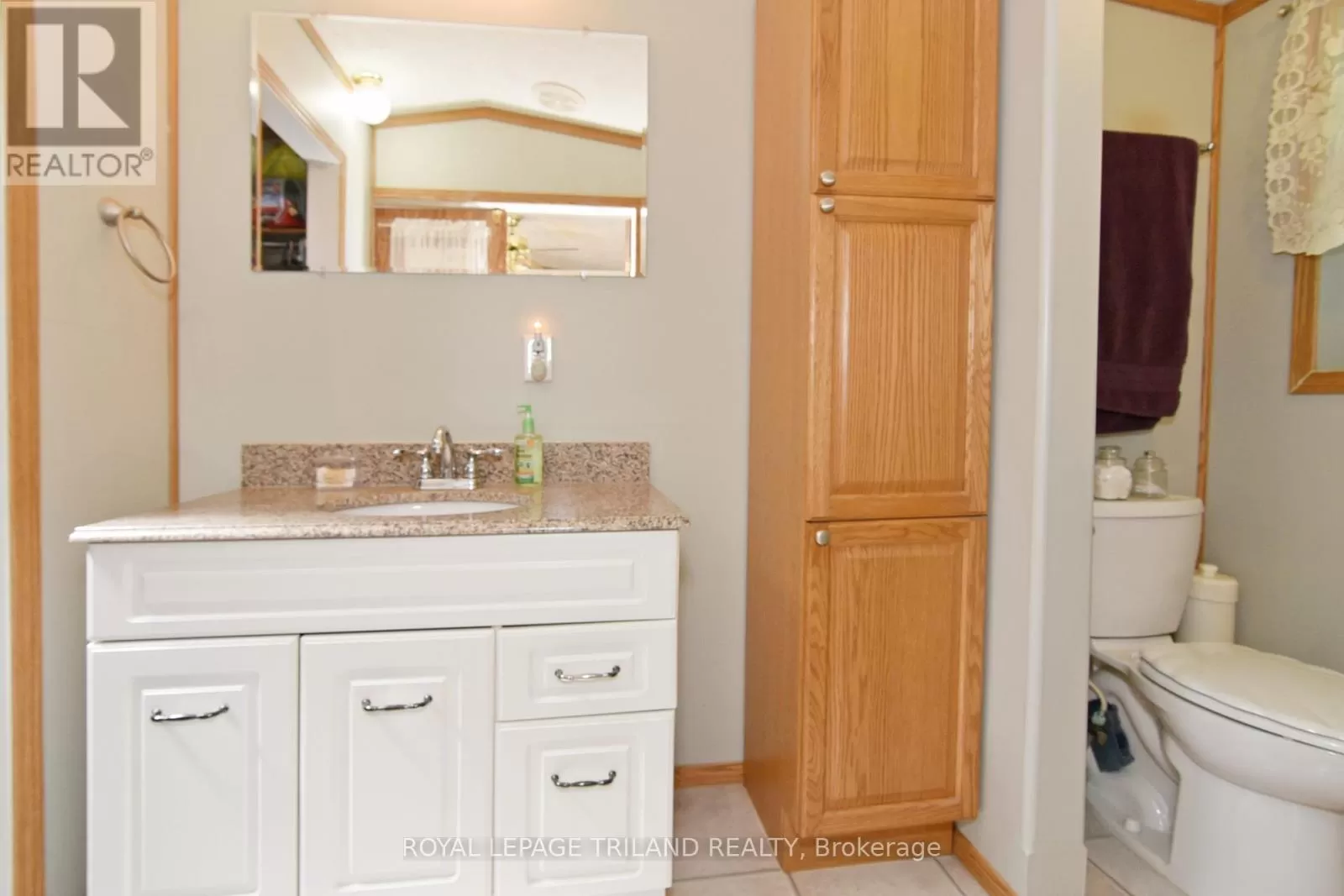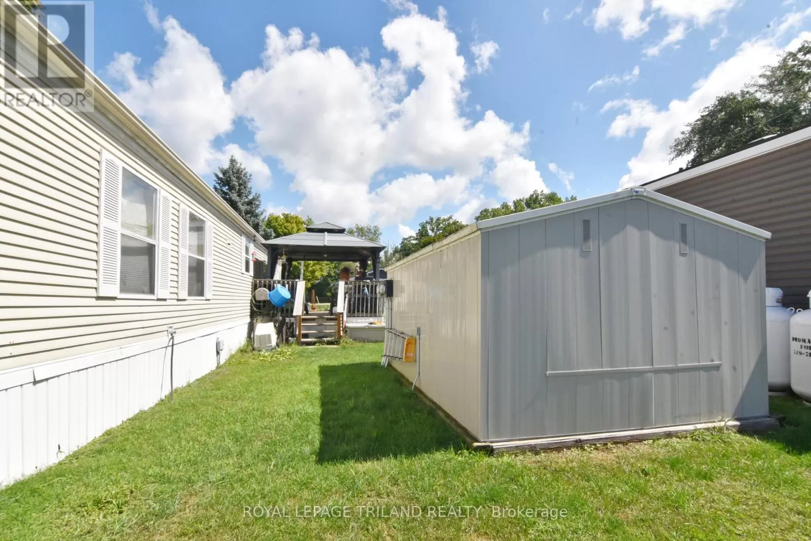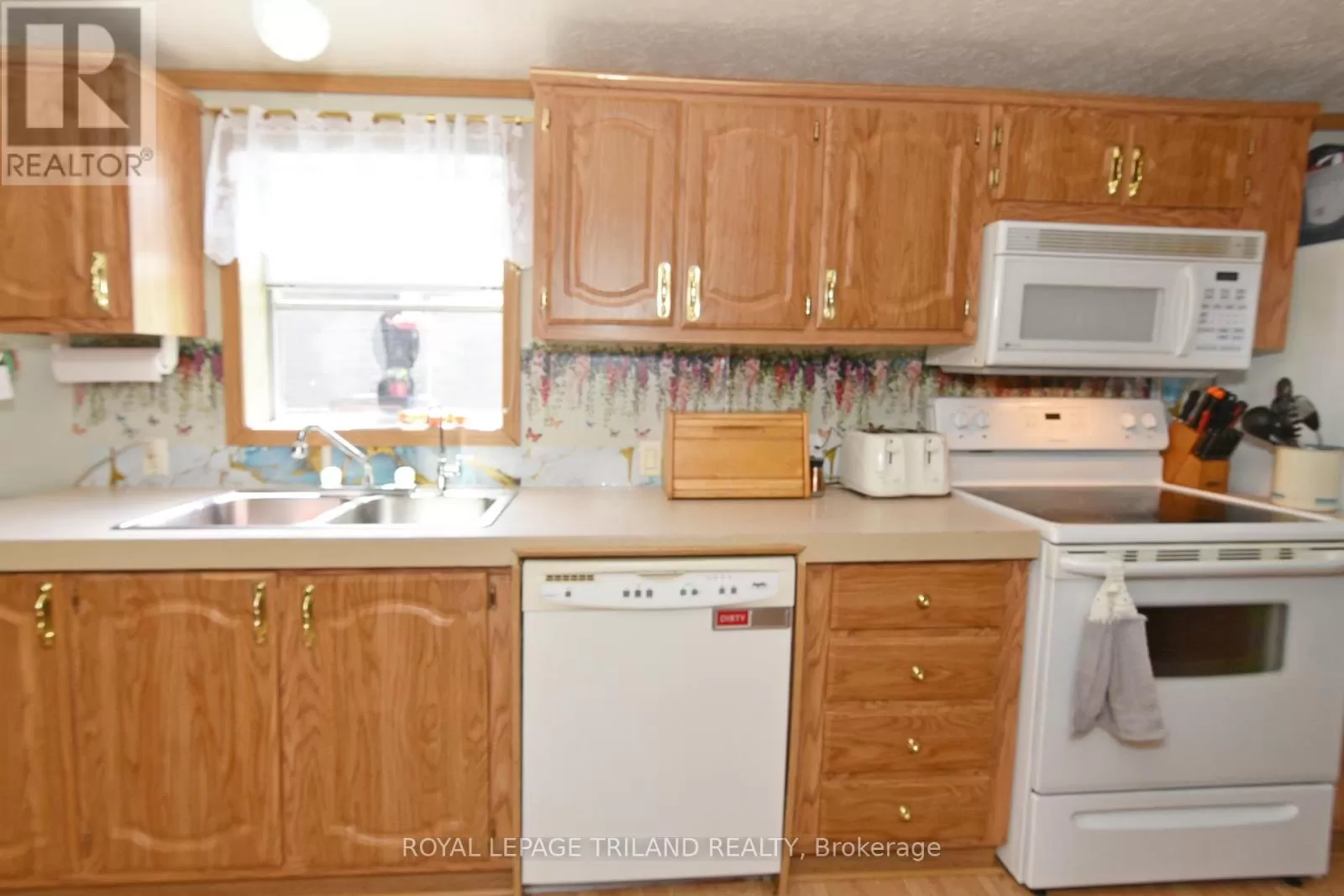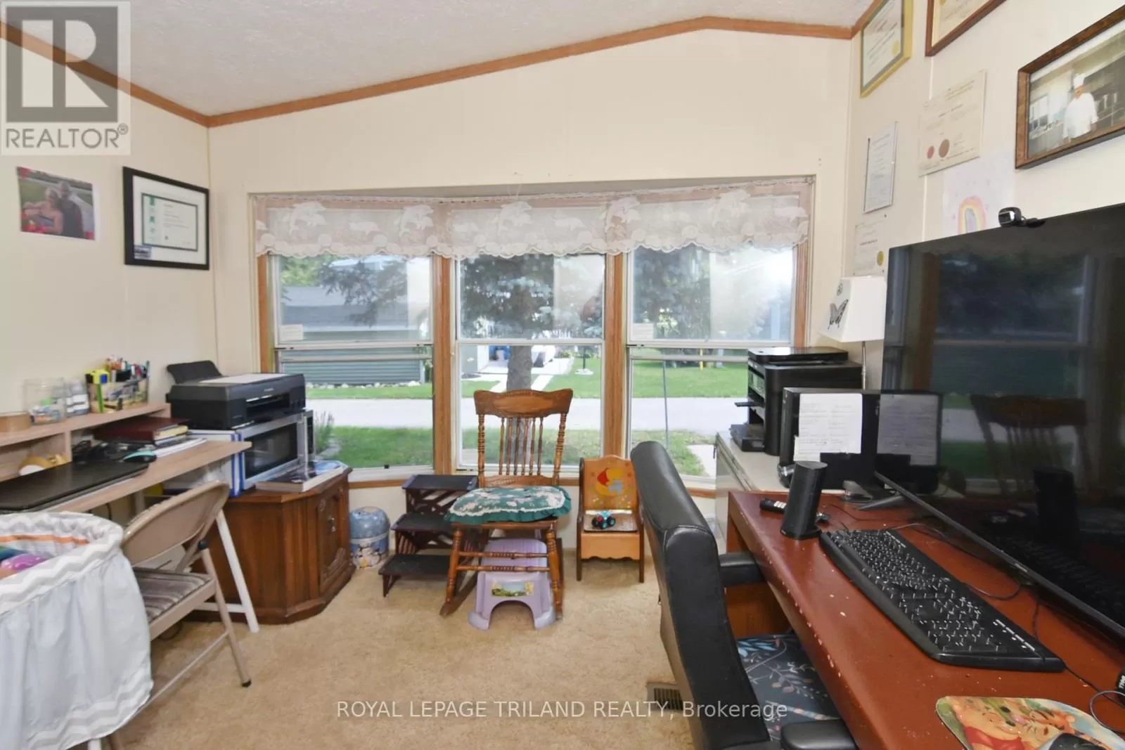 Cross Streets: HWY 21 & IPPERWASH ROAD. ** Directions: HWY 21 TO IPPERWASH ROAD, TURN LEFT INTO WOODHAVEN PARK. FOUR SEASON - 3 Bedroom / 2 Bath Mobile Home in Woodhaven Resort. Near Ipperwash Beach. Open concept kitchen / dining / living room with vaulted ceiling, laminate floors and propane gas fireplace. Large kitchen has plenty of cupboards and counter space, lots of windows and a Reverse Osmosis water filtration system. Primary bedroom includes 3 piece ensuite with shower and walk in closet. The second & third bedrooms are at the other end of the unit near the 4 piece bathroom with tub/shower. Separate laundry room/mudroom area. Propane furnace & central air. Large wooden deck with gazebo. Shed stays. Stamped concrete driveway. Land lease is $575/month (to be confirmed). Park amenities include inground pool, playground and laundry facilities. Only 50 minutes to London, 40 minutes to Sarnia, 20 minutes to Grand Bend. (id:27476)