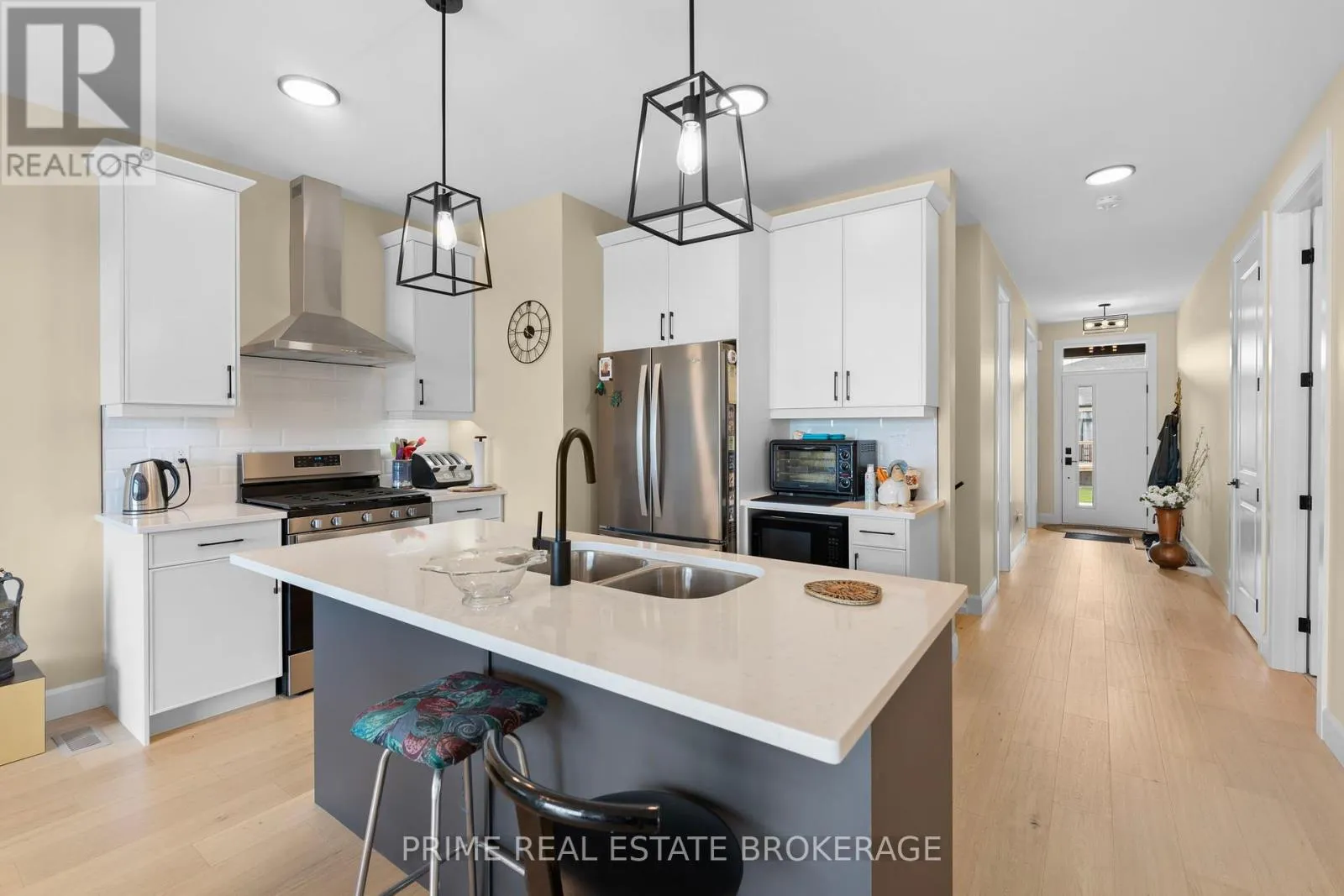 Cross Streets: Del Sol Way. ** Directions: Turn onto Del Sol Way, left on Coastal Crescent, home on the right. Does it get better than this? Welcome to the 'Erie' Model in South of Main, Grand Bends newest and highly sought-after subdivision. This professionally designed home by award-winning local builder Medway Homes Inc. comes fully loaded - with furnishings, brand new appliances, and custom window coverings all included! Enjoy the perfect balance of lifestyle and location just steps to shopping, restaurants, golf, and Grand Bends famous blue-water beaches. Watch unforgettable sunsets from your oversized yard, and enjoy the peace of mind that comes with anew, move-in-ready home.Offering 2,034 sq. ft. of finished living space (including 859 sq. ft.in the lower level), this stylish bungalow features 4 spacious bedrooms, 3 full bathrooms, a finished basement, and a 1-car garage with single driveway. Highlights include quartz countertops, engineered hardwood floors, luxury vinyl plank on stairs and lower level, and a stunning open-concept layout flooded with natural light. The great room features a cozy gas fireplace and a 10 tray ceiling. Enjoy 9 ceilings on both levels, a spacious primary suite with walk-in closet and ensuite, a dedicated laundry room, and a large deck with privacy wall. A covered front porch adds charm and curb appeal.Enjoy maintenance-free living with lawn care, road upkeep, and snow removal for approx. $175/month. BONUS: A backyard fence has been installed by the developer for extra privacy. Life is better when you live by the beach! (id:27476)