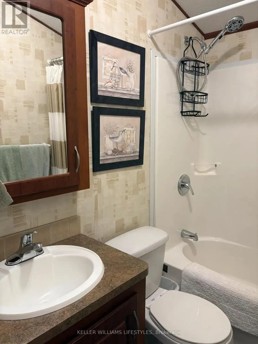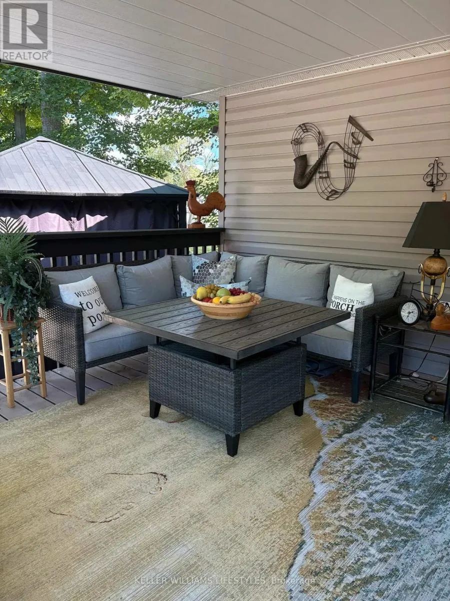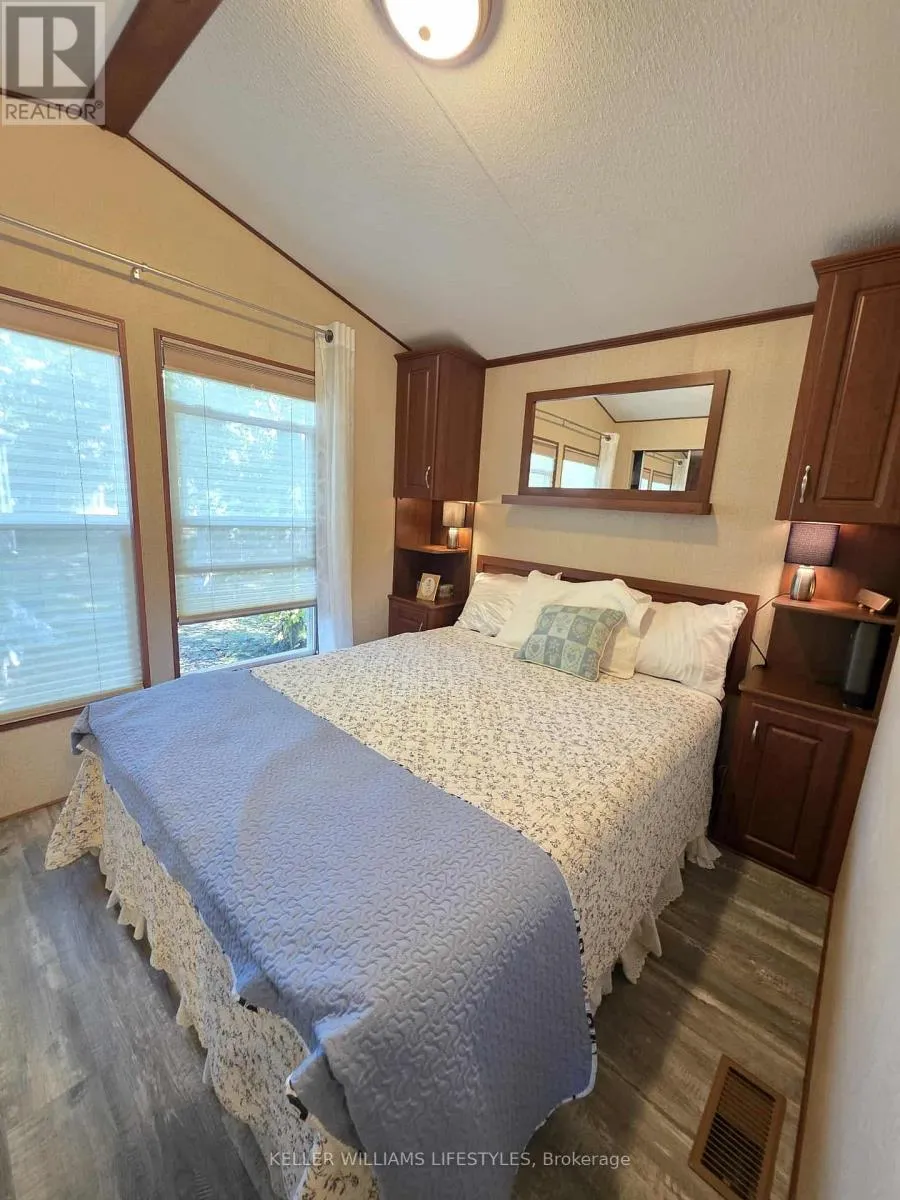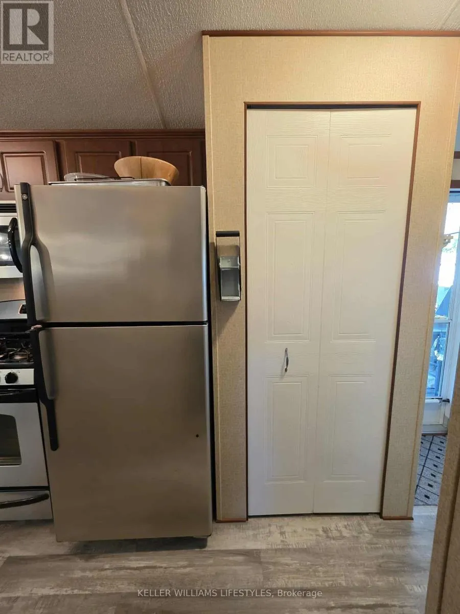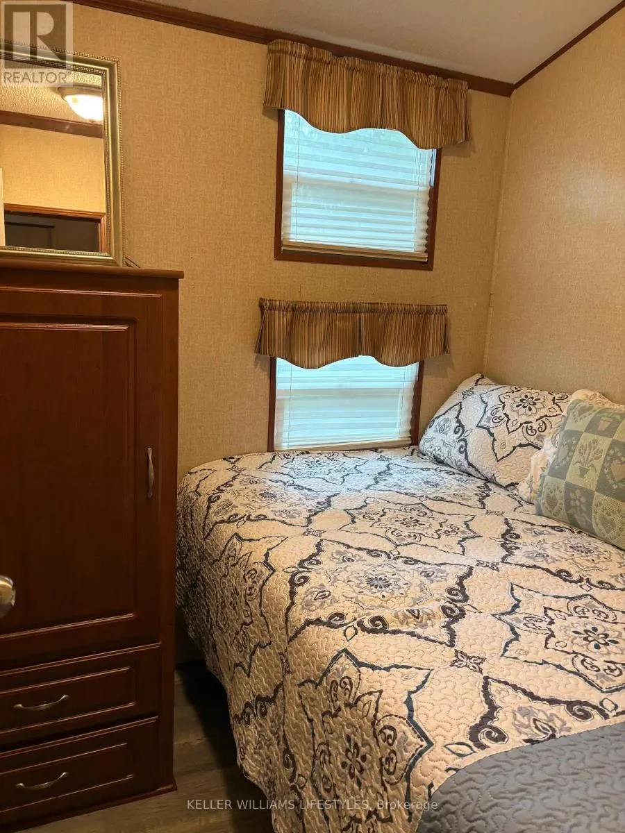 Cross Streets: JJ Area off of the Horseshoe Pits. ** Directions: Our Ponderosa. Just minutes from the beach, and only 30kms to Grand Bend, this charming 2 bedroom, 1 bath park model offers the perfect blend of relaxation and recreation. In Our Ponderosa (a wonderful seasonal resort open May-Oct), nestled on a quiet cul-de-sac with only nine units with generous frontage, you'll enjoy both privacy and community. Step inside to find an open concept layout, creating a bright and spacious feel throughout. The kitchen features black appliances, while the living room is filled with natural light, perfect for entertaining family and friends. This turnkey retreat comes fully furnished, including all bedroom and living room furniture (with a queen size pull out sofa), a 55" TV in the living room, a 42" TV on the deck, and a Weber barbeque. With forced air propane heating and central air, you're sure to be comfortable. Outdoors, the large deck is equipped with over $8,000 worth of premium furniture, including a concrete dining table with six chairs, a sectional, an adjustable coffee/dining table, recliners, and side tables. A custom hard top cover with 4" posts, ceiling fan, and overhead lighting provides comfort and durability, making this 12' wide deck the ideal spot for relaxing or entertaining. Additional features include a double wide concrete driveway and a 10' x 10' curtained gazebo, currently used for golf cart storage. There are many community amenities, with a 9 hole golf course (included in annual fees), pickleball courts, two swimming pools with a water slide, splash pad, mini golf, bounce cushion, and sand volleyball court, ensuring fun for all ages. If you're seeking a summer getaway this move in ready park model at Our Ponderosa has everything you need to start making memories. (id:27476)