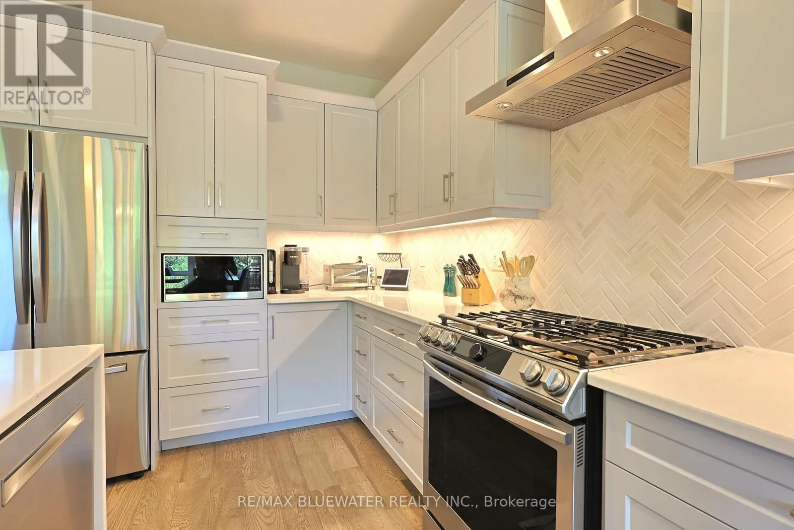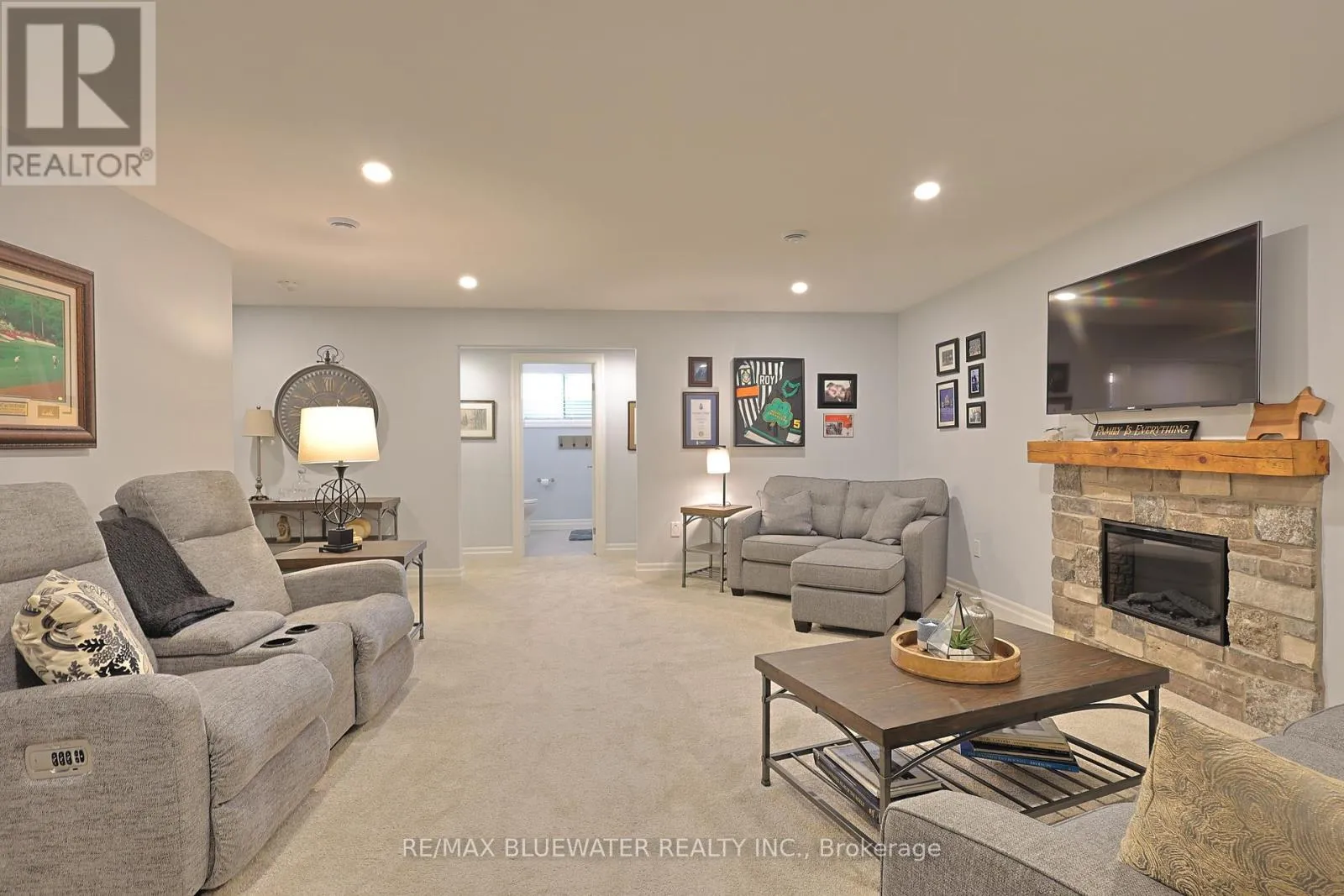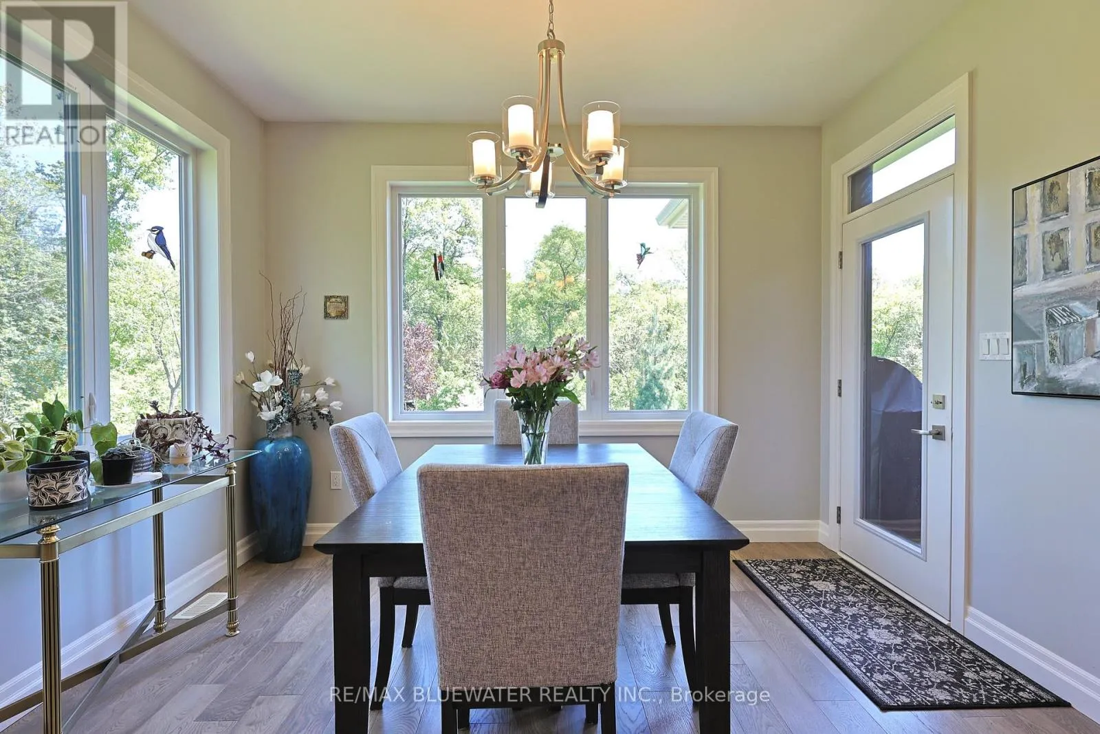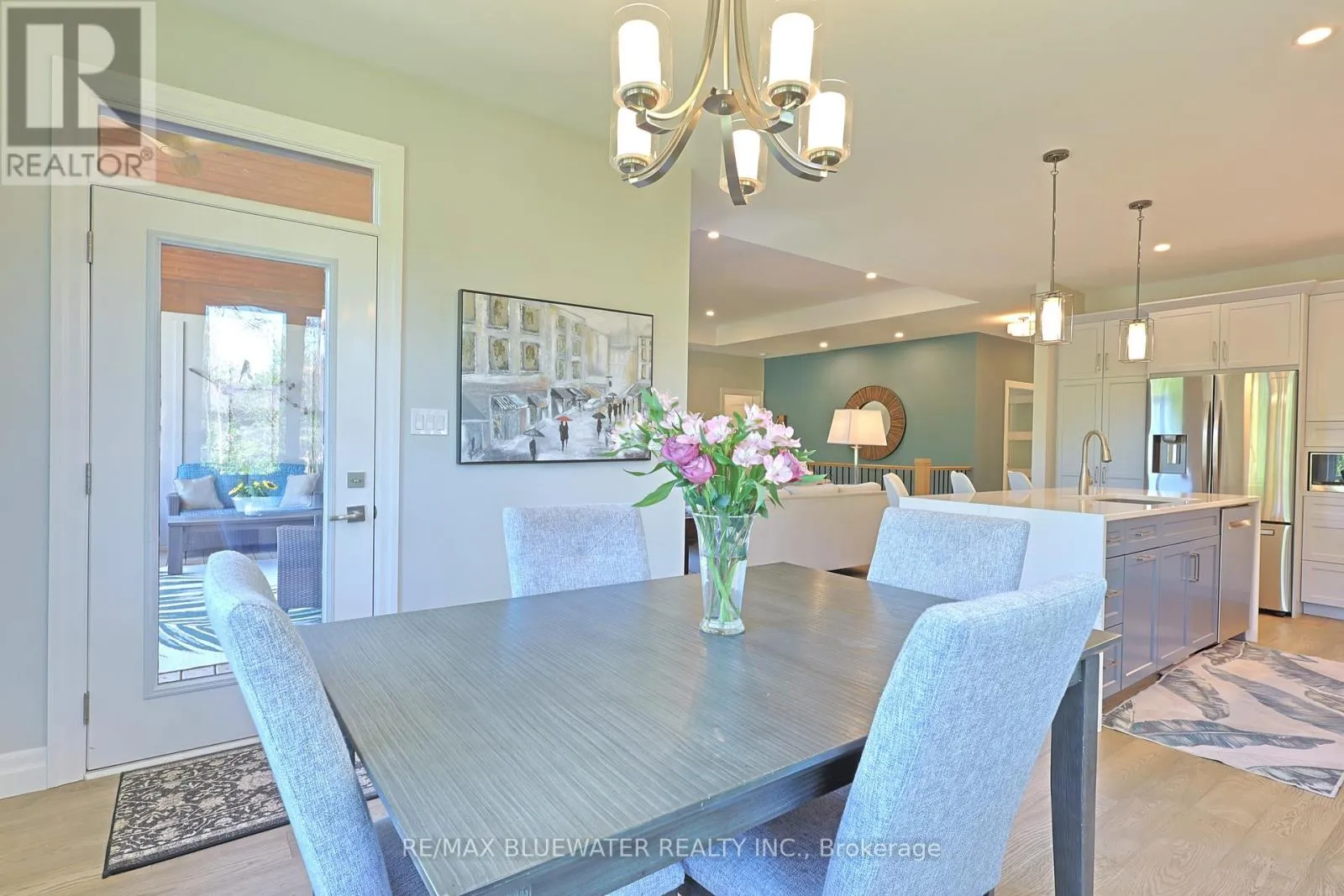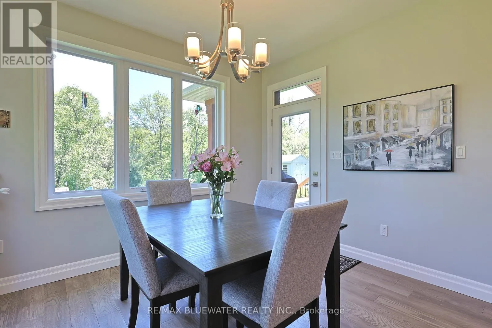 Cross Streets: Goosemarsh and Walker. ** Directions: On Goosemarsh Line between Graham St and Walker Road. Custom built modern bungalow on a one acre lot surrounded by nature near the Pinery Provincial Park. Drive through the tree lined driveway and your greeted with your new home built in 2021 by Nicholson Builders. Great curb appeal with the landscaped gardens and flagstone walkway leading to the covered front entrance and front porch seating area. Inside, you have a 1742 sqft open concept design with well appointed finishes and flowing with natural light featuring engineered hardwood floors throughout the main floor. Step inside the front foyer and you feel the warmth of the space that invites you in and makes you feel at home. As you enter the living room you will notice the coffered ceilings above and a stone feature wall around the gas fireplace. The kitchen features quartz countertops on two tone cabinetry, large island with waterfall countertop edges, herringbone patterned tile backsplash and stainless steel appliances. Spacious eating area off the kitchen and living room with large windows overlooking the back yard and access to the covered deck. Main floor primary bedroom suite with walk in closet and beautiful ensuite that includes a double vanity and tile shower. The main floor also includes his and her separate offices that border the front foyer overlooking the front entrance or easily include a guest room on the main floor as both offices have full closets. There's an additional full bathroom off the main living space and a mudroom with laundry as you enter from the 22'x24' double car garage. Full finished basement with large family room that features and electric fireplace, 3 bedrooms for kids and guests or crafts, full bathroom, workshop for the handy person and lots of storage in the utility room. Entertain friends in your private back yard as you enjoy the 18' x 14' covered back deck with vaulted ceilings and pot lighting overlooking the tree lined natural setting and flagstone walkway leading to your armour stone firepit. BONUS: GENERAC Generator! (id:27476)