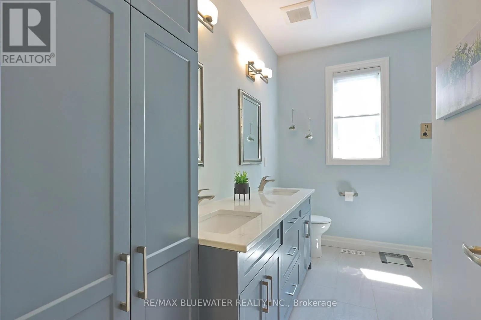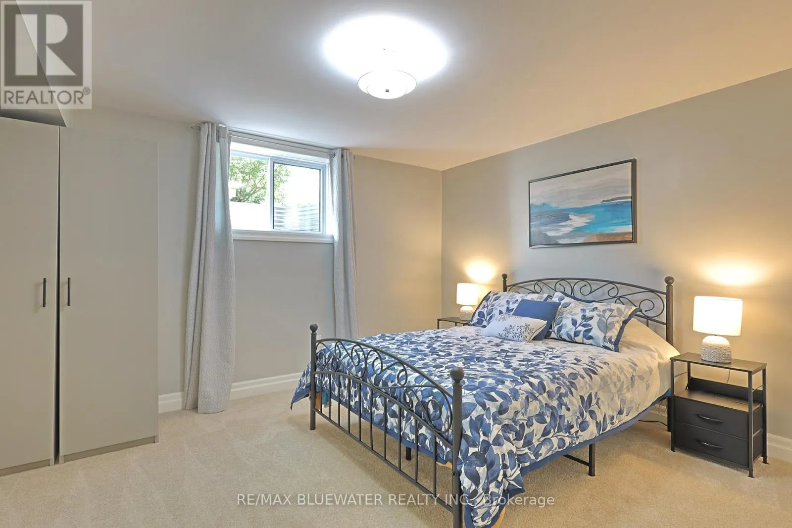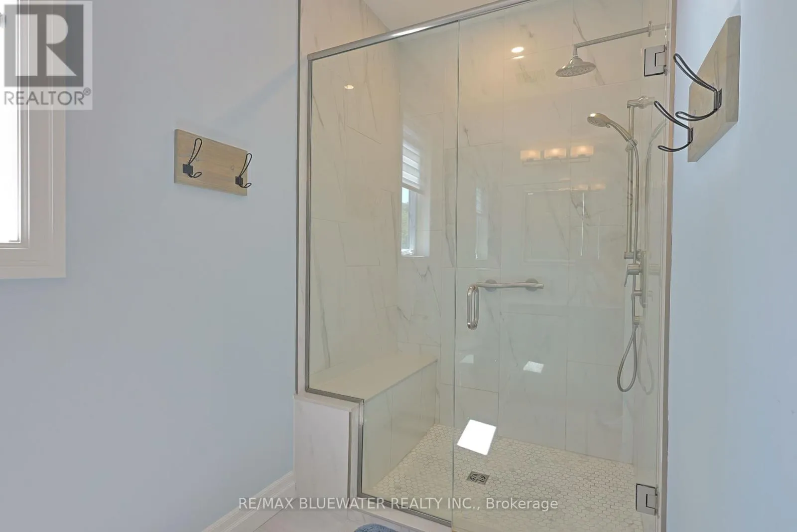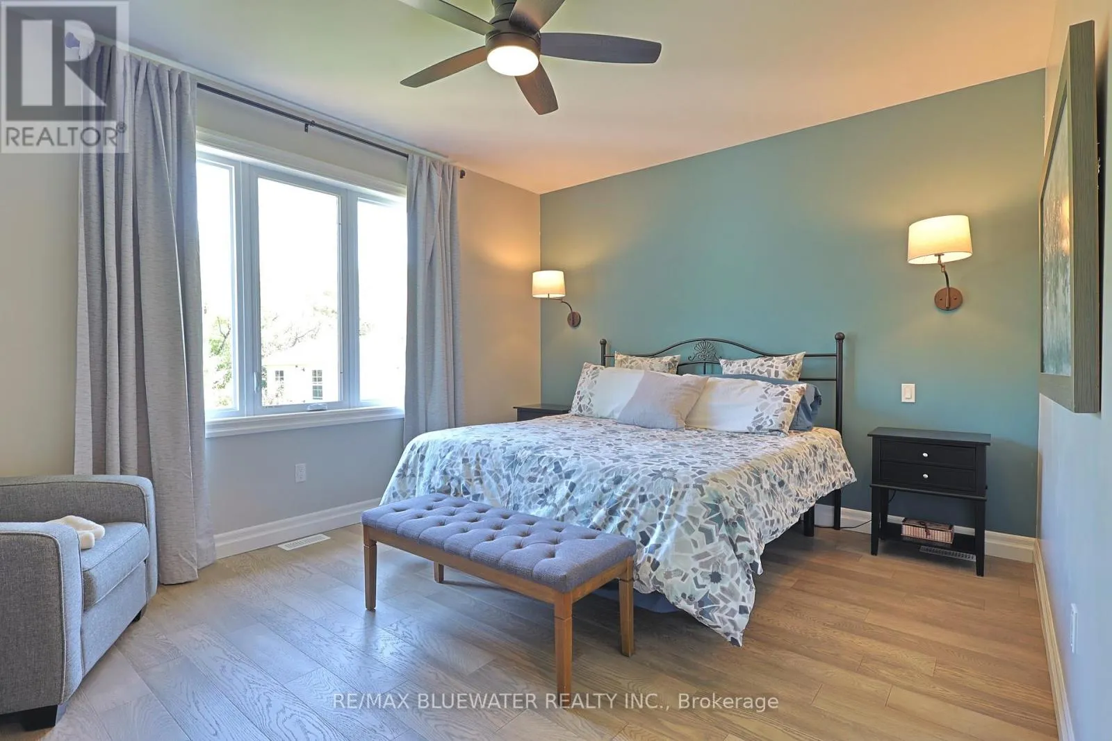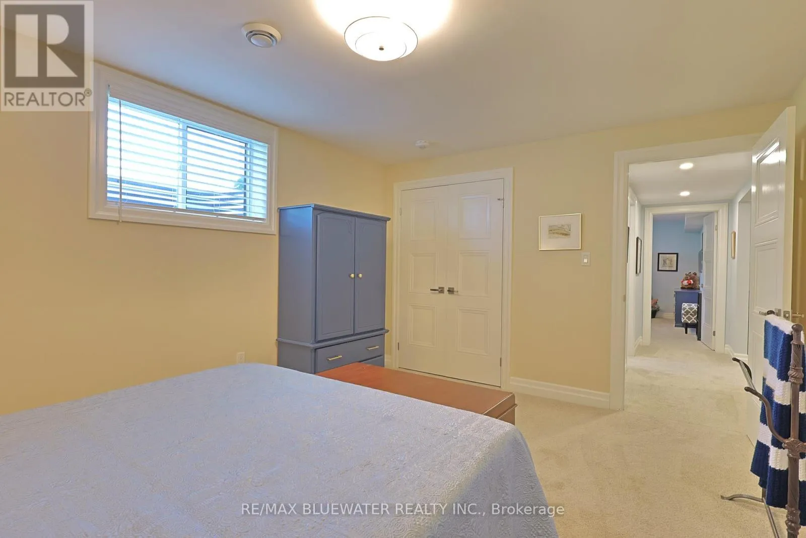 Cross Streets: Goosemarsh and Walker. ** Directions: On Goosemarsh Line between Graham St and Walker Road. Custom built modern bungalow on a one acre lot surrounded by nature near the Pinery Provincial Park. Drive through the tree lined driveway and your greeted with your new home built in 2021 by Nicholson Builders. Great curb appeal with the landscaped gardens and flagstone walkway leading to the covered front entrance and front porch seating area. Inside, you have a 1742 sqft open concept design with well appointed finishes and flowing with natural light featuring engineered hardwood floors throughout the main floor. Step inside the front foyer and you feel the warmth of the space that invites you in and makes you feel at home. As you enter the living room you will notice the coffered ceilings above and a stone feature wall around the gas fireplace. The kitchen features quartz countertops on two tone cabinetry, large island with waterfall countertop edges, herringbone patterned tile backsplash and stainless steel appliances. Spacious eating area off the kitchen and living room with large windows overlooking the back yard and access to the covered deck. Main floor primary bedroom suite with walk in closet and beautiful ensuite that includes a double vanity and tile shower. The main floor also includes his and her separate offices that border the front foyer overlooking the front entrance or easily include a guest room on the main floor as both offices have full closets. There's an additional full bathroom off the main living space and a mudroom with laundry as you enter from the 22'x24' double car garage. Full finished basement with large family room that features and electric fireplace, 3 bedrooms for kids and guests or crafts, full bathroom, workshop for the handy person and lots of storage in the utility room. Entertain friends in your private back yard as you enjoy the 18' x 14' covered back deck with vaulted ceilings and pot lighting overlooking the tree lined natural setting and flagstone walkway leading to your armour stone firepit. BONUS: GENERAC Generator! (id:27476)