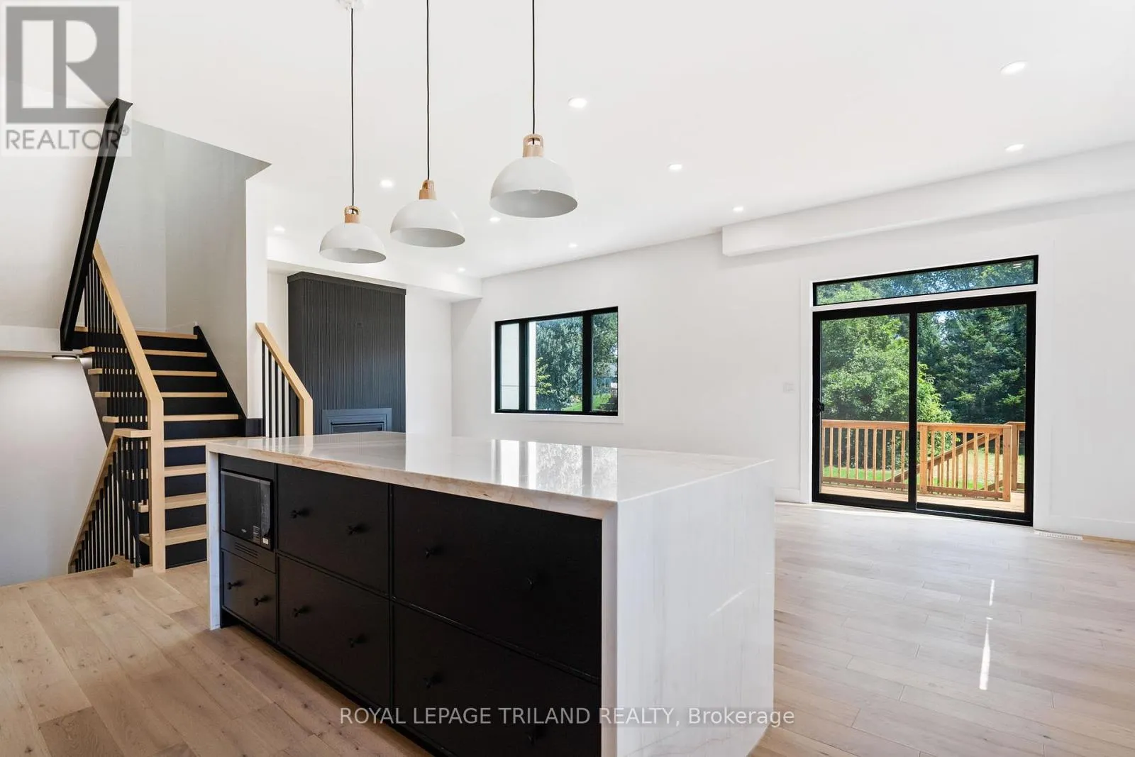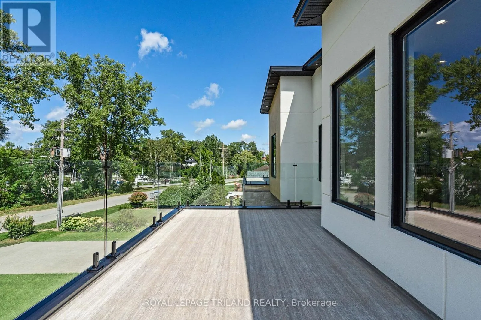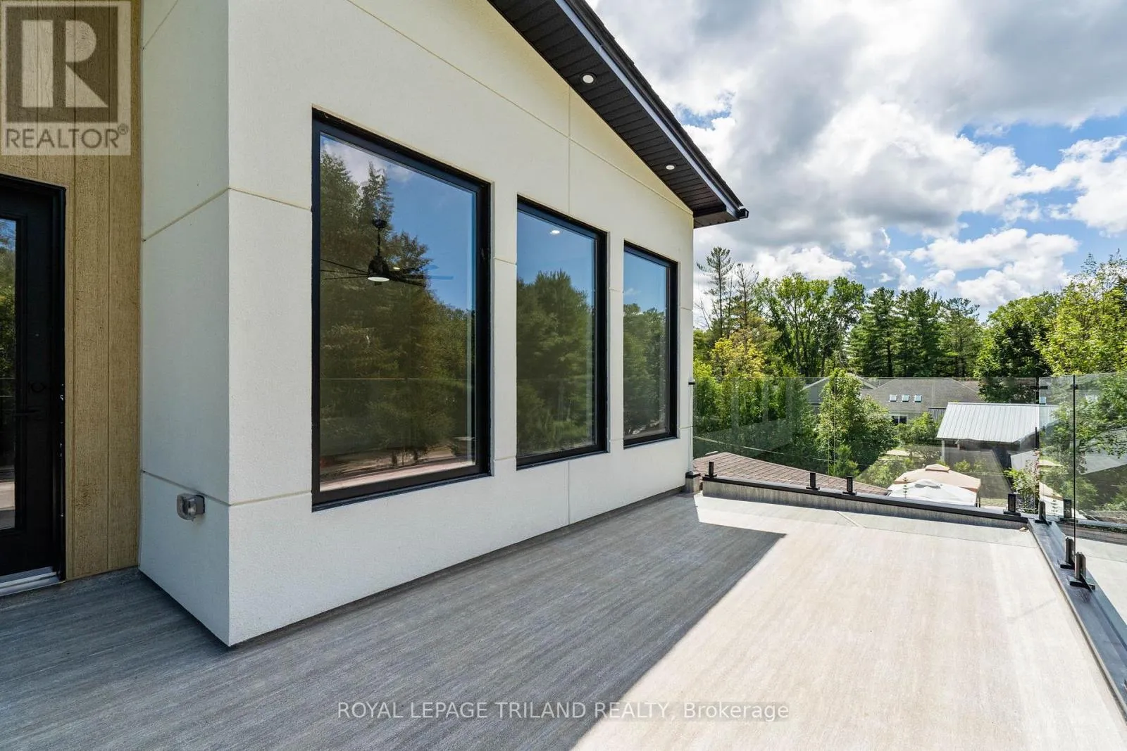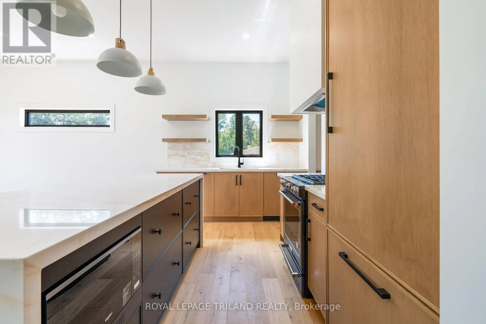 Cross Streets: River Rd. ** Directions: South of Main St, head west toward lake on River Rd, then south on Alberta Street. Welcome to 34 Alberta Street-A Custom Build by Cloverwood Homes, Steps from the Shores of Grand Bend. Located 500 meters from South Beach and minutes to the marina, restaurants, and local shops, this stunning 4-bedroom, 4-bathroom home is the perfect blend of luxury, design, and functionality. Built on a deep 200 ft lot, the home offers 3,248 sq ft of living space across three levels, crafted with exceptional attention to detail and offered with a full Tarion New Home Warranty. Inside you'll find a spacious, open-concept main floor with 10-foot ceilings, oversized windows that fill the home with natural light and engineered hardwood flooring throughout. The kitchen features imported Turkish natural stone countertops and backsplash, a walk-in pantry, and custom built-in appliances, including a Fulgor Milano fridge. Designer tile work, solid core interior doors, and Moen and Delta fixtures add to the refined aesthetic. The second floor boasts vaulted ceilings up to 14 feet, along with a luxurious primary suite complete with a walk-in closet, spa-like ensuite, and a walk-out balcony. The finished basement continues the bright, airy feel with 9-foot ceilings and generous window openings. This home is equipped with high-end mechanical systems, including a 60,000 BTU furnace, 2.5-ton AC unit, HRV system, hot water recovery unit, and a gas manifold. Energy efficiency is prioritized with spray foam-insulated joist pockets in the basement and garage ceilings. Outside, you'll find maintenance-free composite siding, custom glass railings, an exposed concrete driveway, and an oversized garage perfect for storing a boat. The garage itself is insulated and spray-foamed for year-round usability. Sound insulation between homes has also been upgraded for added privacy and comfort. Whether you're looking for a year-round residence or a high-end seasonal escape, 34 Alberta Street offers a combination of location, design, and build quality in one of Grand Bends most sought-after areas. (id:27476)