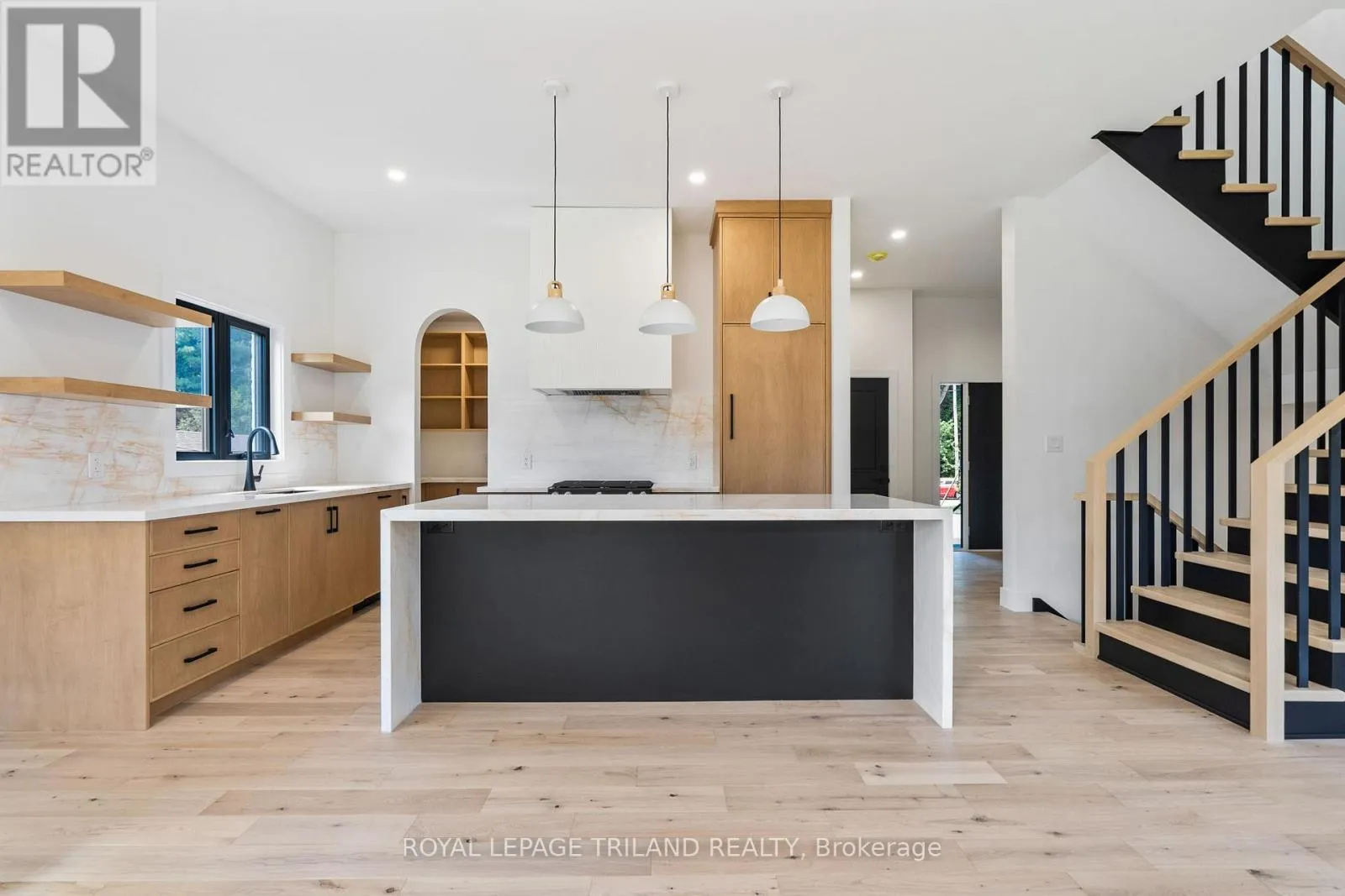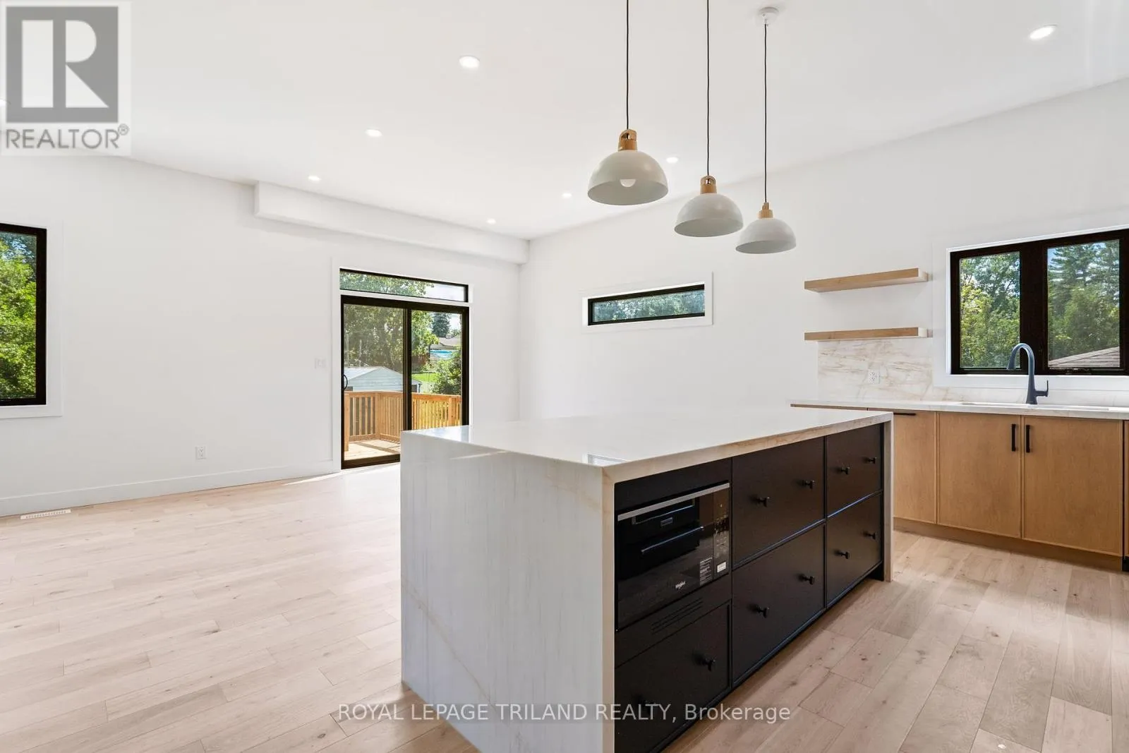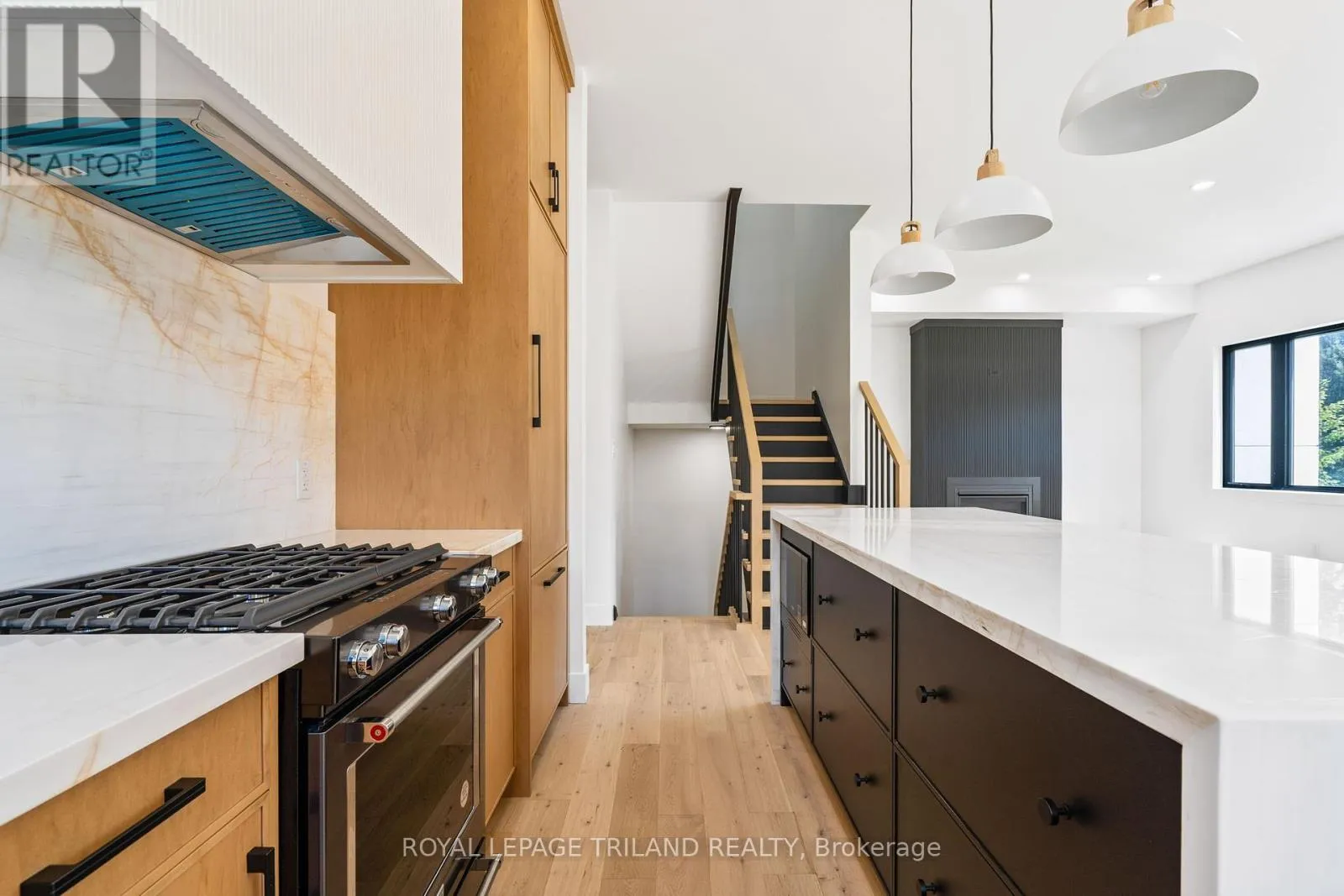 Cross Streets: River Rd. ** Directions: South of Main St, head west toward lake on River Rd, then south on Alberta Street. Welcome to 34 Alberta Street-A Custom Build by Cloverwood Homes, Steps from the Shores of Grand Bend. Located 500 meters from South Beach and minutes to the marina, restaurants, and local shops, this stunning 4-bedroom, 4-bathroom home is the perfect blend of luxury, design, and functionality. Built on a deep 200 ft lot, the home offers 3,248 sq ft of living space across three levels, crafted with exceptional attention to detail and offered with a full Tarion New Home Warranty. Inside you'll find a spacious, open-concept main floor with 10-foot ceilings, oversized windows that fill the home with natural light and engineered hardwood flooring throughout. The kitchen features imported Turkish natural stone countertops and backsplash, a walk-in pantry, and custom built-in appliances, including a Fulgor Milano fridge. Designer tile work, solid core interior doors, and Moen and Delta fixtures add to the refined aesthetic. The second floor boasts vaulted ceilings up to 14 feet, along with a luxurious primary suite complete with a walk-in closet, spa-like ensuite, and a walk-out balcony. The finished basement continues the bright, airy feel with 9-foot ceilings and generous window openings. This home is equipped with high-end mechanical systems, including a 60,000 BTU furnace, 2.5-ton AC unit, HRV system, hot water recovery unit, and a gas manifold. Energy efficiency is prioritized with spray foam-insulated joist pockets in the basement and garage ceilings. Outside, you'll find maintenance-free composite siding, custom glass railings, an exposed concrete driveway, and an oversized garage perfect for storing a boat. The garage itself is insulated and spray-foamed for year-round usability. Sound insulation between homes has also been upgraded for added privacy and comfort. Whether you're looking for a year-round residence or a high-end seasonal escape, 34 Alberta Street offers a combination of location, design, and build quality in one of Grand Bends most sought-after areas. (id:27476)