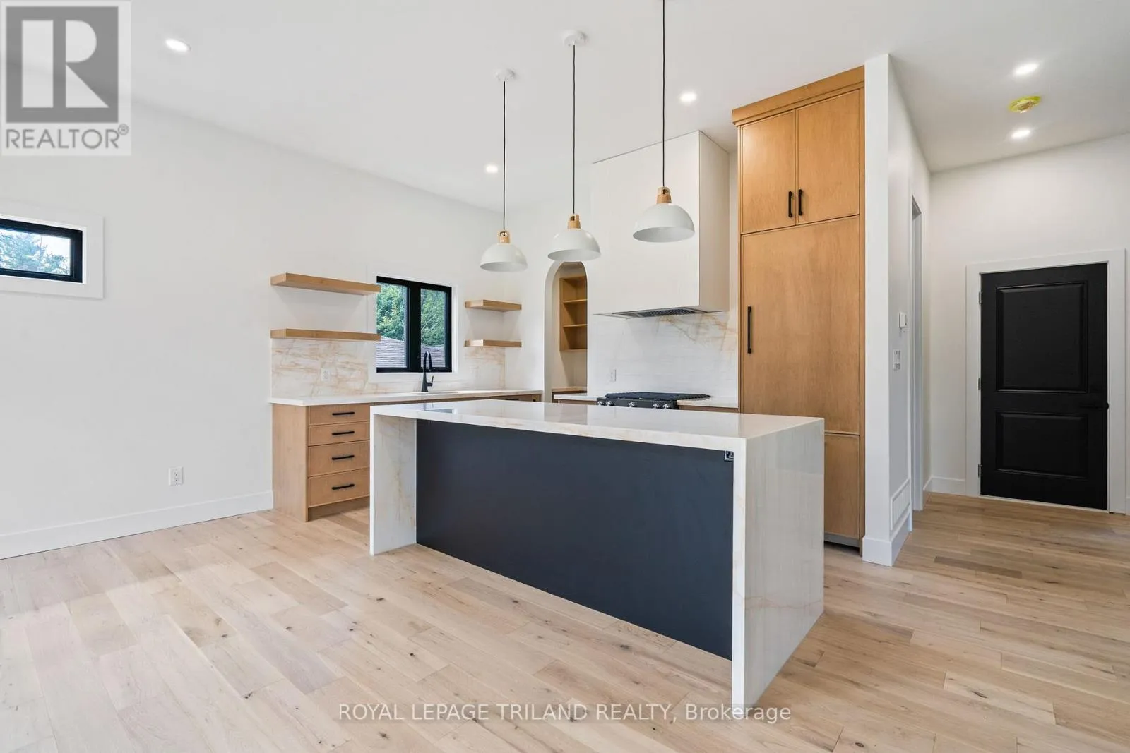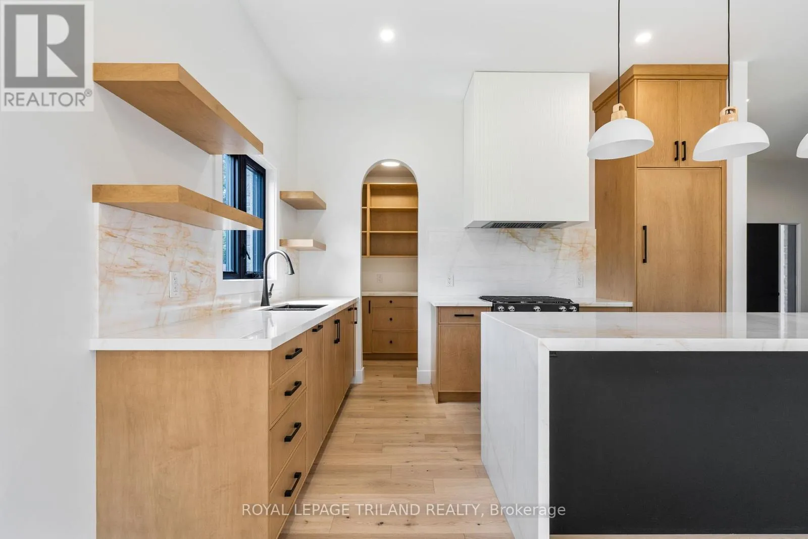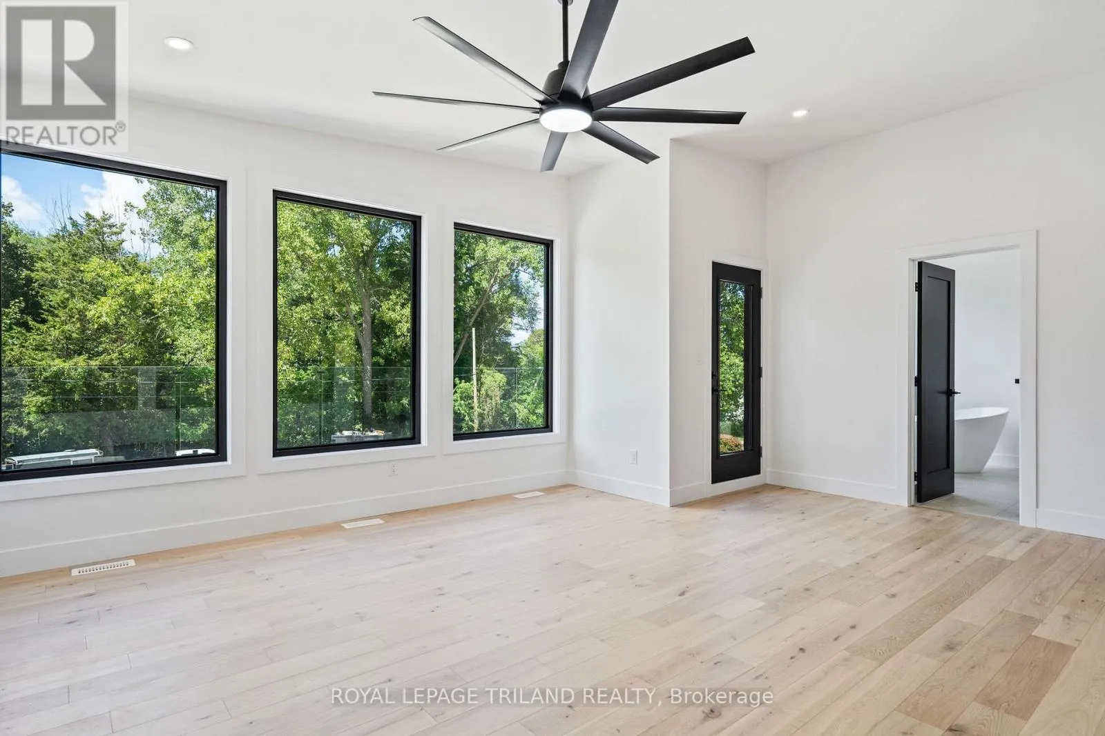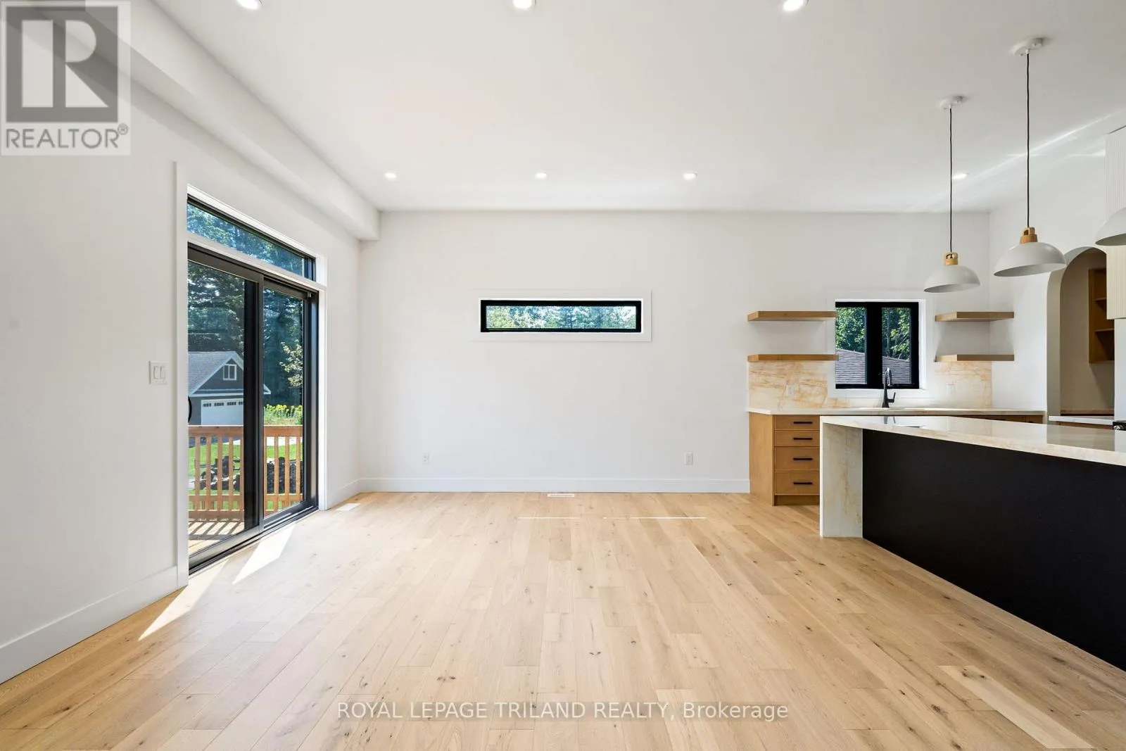 Cross Streets: River Rd. ** Directions: South of Main St, head west toward lake on River Rd, then south on Alberta Street. Welcome to 34 Alberta Street-A Custom Build by Cloverwood Homes, Steps from the Shores of Grand Bend. Located 500 meters from South Beach and minutes to the marina, restaurants, and local shops, this stunning 4-bedroom, 4-bathroom home is the perfect blend of luxury, design, and functionality. Built on a deep 200 ft lot, the home offers 3,248 sq ft of living space across three levels, crafted with exceptional attention to detail and offered with a full Tarion New Home Warranty. Inside you'll find a spacious, open-concept main floor with 10-foot ceilings, oversized windows that fill the home with natural light and engineered hardwood flooring throughout. The kitchen features imported Turkish natural stone countertops and backsplash, a walk-in pantry, and custom built-in appliances, including a Fulgor Milano fridge. Designer tile work, solid core interior doors, and Moen and Delta fixtures add to the refined aesthetic. The second floor boasts vaulted ceilings up to 14 feet, along with a luxurious primary suite complete with a walk-in closet, spa-like ensuite, and a walk-out balcony. The finished basement continues the bright, airy feel with 9-foot ceilings and generous window openings. This home is equipped with high-end mechanical systems, including a 60,000 BTU furnace, 2.5-ton AC unit, HRV system, hot water recovery unit, and a gas manifold. Energy efficiency is prioritized with spray foam-insulated joist pockets in the basement and garage ceilings. Outside, you'll find maintenance-free composite siding, custom glass railings, an exposed concrete driveway, and an oversized garage perfect for storing a boat. The garage itself is insulated and spray-foamed for year-round usability. Sound insulation between homes has also been upgraded for added privacy and comfort. Whether you're looking for a year-round residence or a high-end seasonal escape, 34 Alberta Street offers a combination of location, design, and build quality in one of Grand Bends most sought-after areas. (id:27476)
