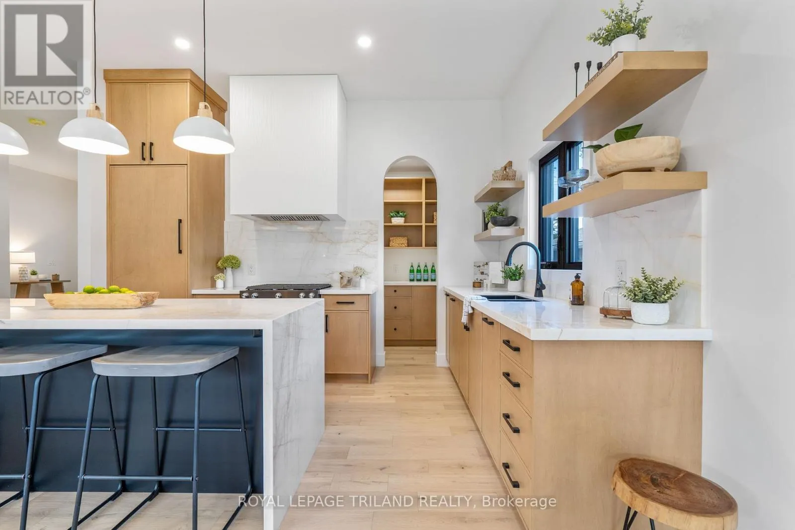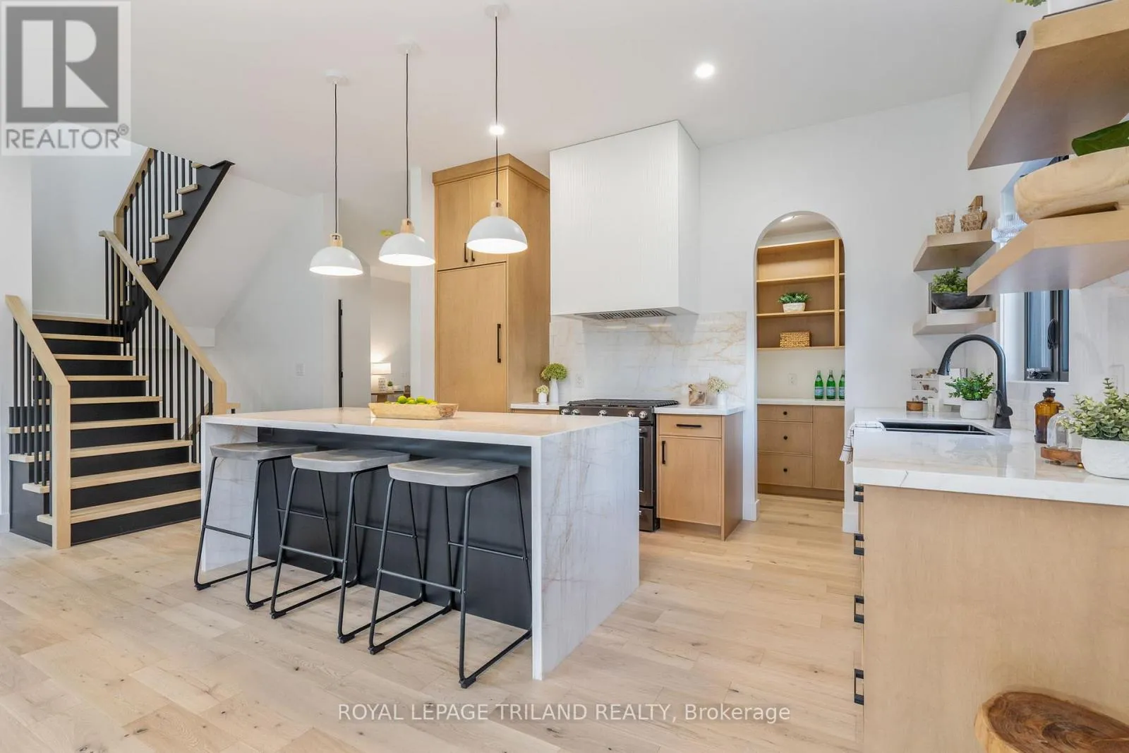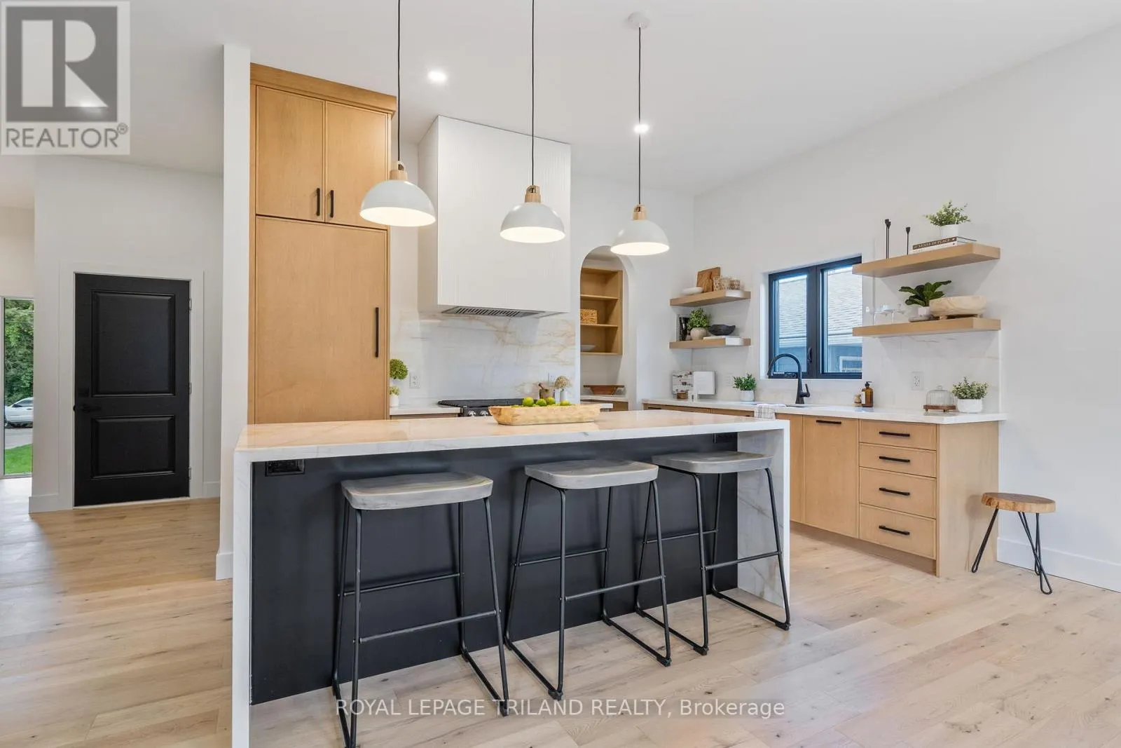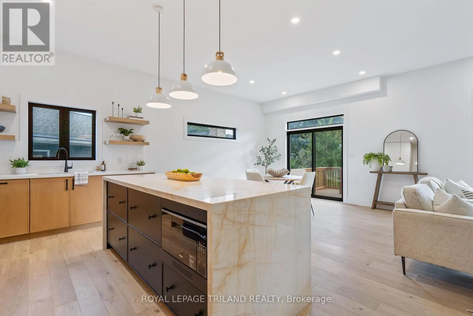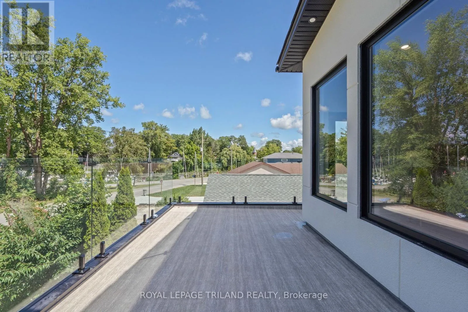 Cross Streets: River Rd. ** Directions: South of Main St, head west toward lake on River Rd, then south on Alberta Street. Welcome to 32 Alberta Street-A Custom Build by Cloverwood Homes, Steps from the Shores of Grand Bend. Located 500 meters from South Beach and minutes to the marina, restaurants, and local shops, this stunning 4-bedroom, 4-bathroom home is the perfect blend of luxury, design, and functionality. Built on a deep 200 ft lot, the home offers 3,463 sq ft of living space across three levels, crafted with exceptional attention to detail and offered with a full Tarion New Home Warranty. Inside you'll find a spacious, open-concept main floor with 10-foot ceilings, oversized windows that fill the home with natural light and engineered hardwood flooring throughout. The kitchen features imported Turkish natural stone countertops and backsplash, a walk-in pantry, and custom built-in appliances, including a Fulgor Milano fridge. Designer tile work, solid core interior doors, and Moen and Delta fixtures add to the refined aesthetic. The second floor boasts vaulted ceilings up to 14 feet, along with a luxurious primary suite complete with a walk-in closet, spa-like ensuite, and a walk-out balcony. The finished basement continues the bright, airy feel with 9-foot ceilings and generous window openings. This home is equipped with high-end mechanical systems, including a 60,000 BTU furnace, 2.5-ton AC unit, HRV system, hot water recovery unit, and a gas manifold. Energy efficiency is prioritized with spray foam-insulated joist pockets in the basement and garage ceilings. Outside, you'll find maintenance-free composite siding, custom glass railings, an exposed concrete driveway, and an oversized garage perfect for storing a boat. The garage itself is insulated and spray-foamed for year-round usability. Sound insulation between homes has also been upgraded for added privacy and comfort. Whether you're looking for a year-round residence or a high-end seasonal escape, 32 Alberta Street offers a combination of location, design, and build quality in one of Grand Bends most sought-after areas. (id:27476)
