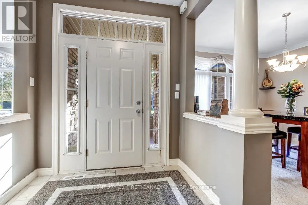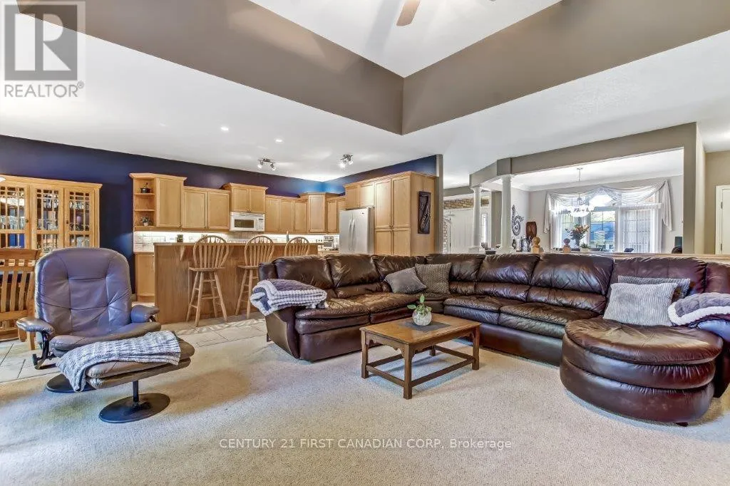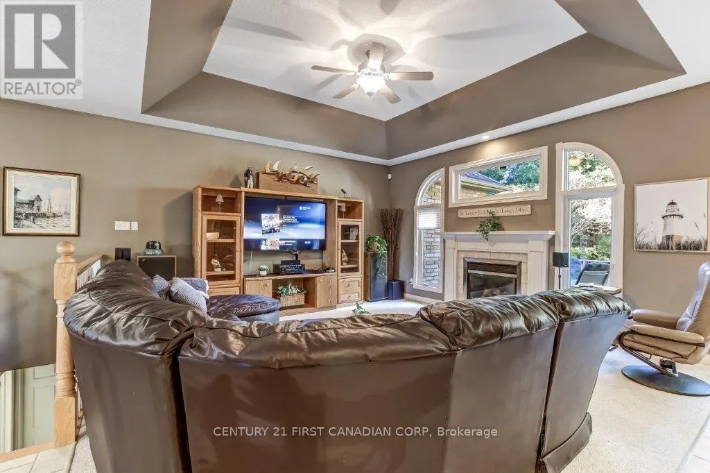 Cross Streets: Merrywood Dr and Meadowlily Cr. ** Directions: Go east on Merrywood Dr from Highway 21. Experience the height of elegance and craftsmanship in this stunning 4,689 sq. ft. executive home, perfectly situated in an exclusive private neighborhood. Designed for those who appreciate both sophistication and function, this residence showcases exceptional quality, modern comfort, and timeless design throughout.A locking block driveway with parking for up to nine vehicles leads to a triple car garage, setting the tone for the grandeur within. Step through the impressive front entrance into a bright, open-concept main floor featuring 10-foot ceilings, extra-wide hallways, and elegant architectural details at every turn.The living room is an entertainer's dream with its coffered ceiling and gas insert fireplace, seamlessly connecting to the gourmet kitchen bathed in natural light. The kitchen features a center island with breakfast bar, vallis and crown lighting accenting the custom cabinetry, and a design that beautifully balances form and function.This home offers 2 spacious bedrooms, including a luxurious primary suite complete with a bedroom-sized walk-in closet - a true dressing retreat with endless possibilities for customization.The lower level adds even more versatility with a fully finished, functional beauty salon, ideal for a home business or conversion to additional living or recreation space.A tiled front porch, smart thermostat, and premium finishes throughout enhance this property's blend of modern innovation and classic luxury.This extraordinary home delivers the ultimate in privacy, prestige, and comfort - a rare opportunity in one of the area's most coveted enclaves.Upgrades include smart thermostat, 22 kilowatt back up generator(2023), furnace and AC unit(2024), extra gravel under foundation, double Big O drainage tile, new tiled porch. This property can be bought with the vacant builders lot located right next door. (id:27476)