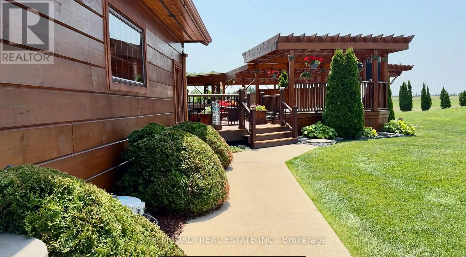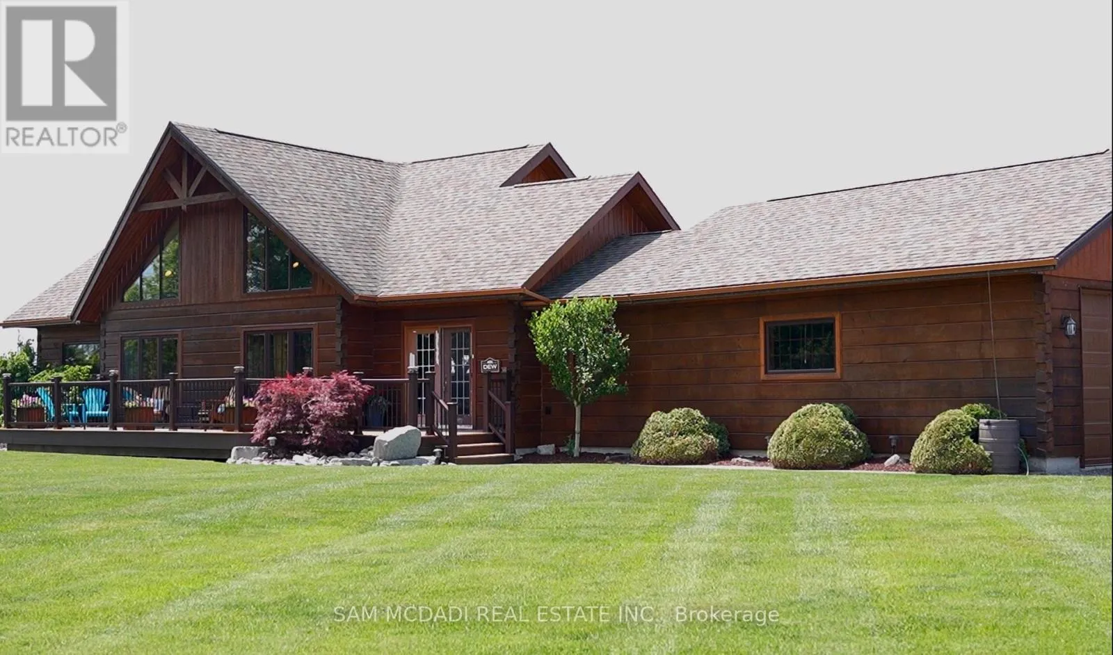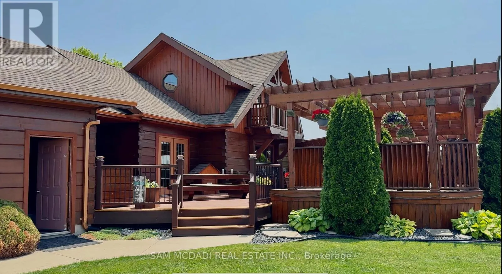 Cross Streets: Kinnaird Rd & Proof Line. ** Directions: Turn right to Kinnaird Rd from Proof Line. Welcome to this truly one-of-a-kind, custom-built log-style home set on a sprawling private lot - where rustic charm meets modern luxury. Perfectly situated just minutes from Grand Bend, Pinery Provincial Park, and Ipperwash Beach, this property is ideal as a full-time residence, weekend retreat, or investment getaway.Step inside to discover a stunning open-concept design highlighted by soaring 20-ft cathedral ceilings, heated floors on all levels, and abundant natural light. The finished lower level is an entertainer's dream - complete with a spacious recreation area, two additional bedrooms, a custom bar, and a pool table.Enjoy seamless indoor-outdoor living with a 12' x 49' back deck featuring a built-in outdoor kitchen, wood-fired pizza oven, and relaxing hot tub - all overlooking peaceful, tree-lined surroundings. The beautifully landscaped grounds include a decorative rock garden, water fountain, and inviting front porch for morning coffee.Recent upgrades include new windows (2022), dual A/C units for the main floor and loft (2023), and a new boiler (2023). A heated 3,710 sq.ft. workshop offers exceptional space for hobbies, business use, or storage. With both municipal and well water available, this property checks every box for comfort, versatility, and lifestyle appeal. (id:27476)