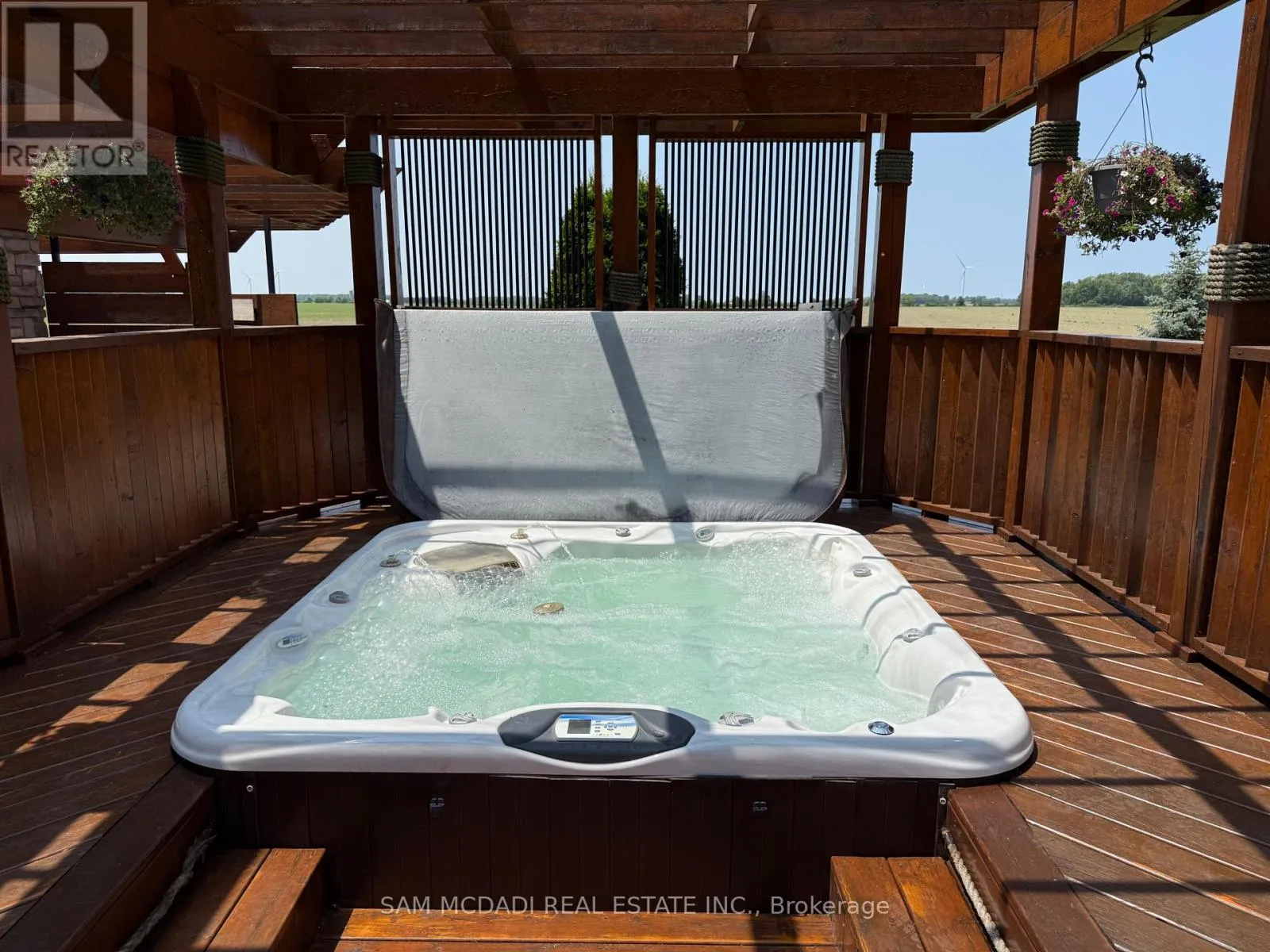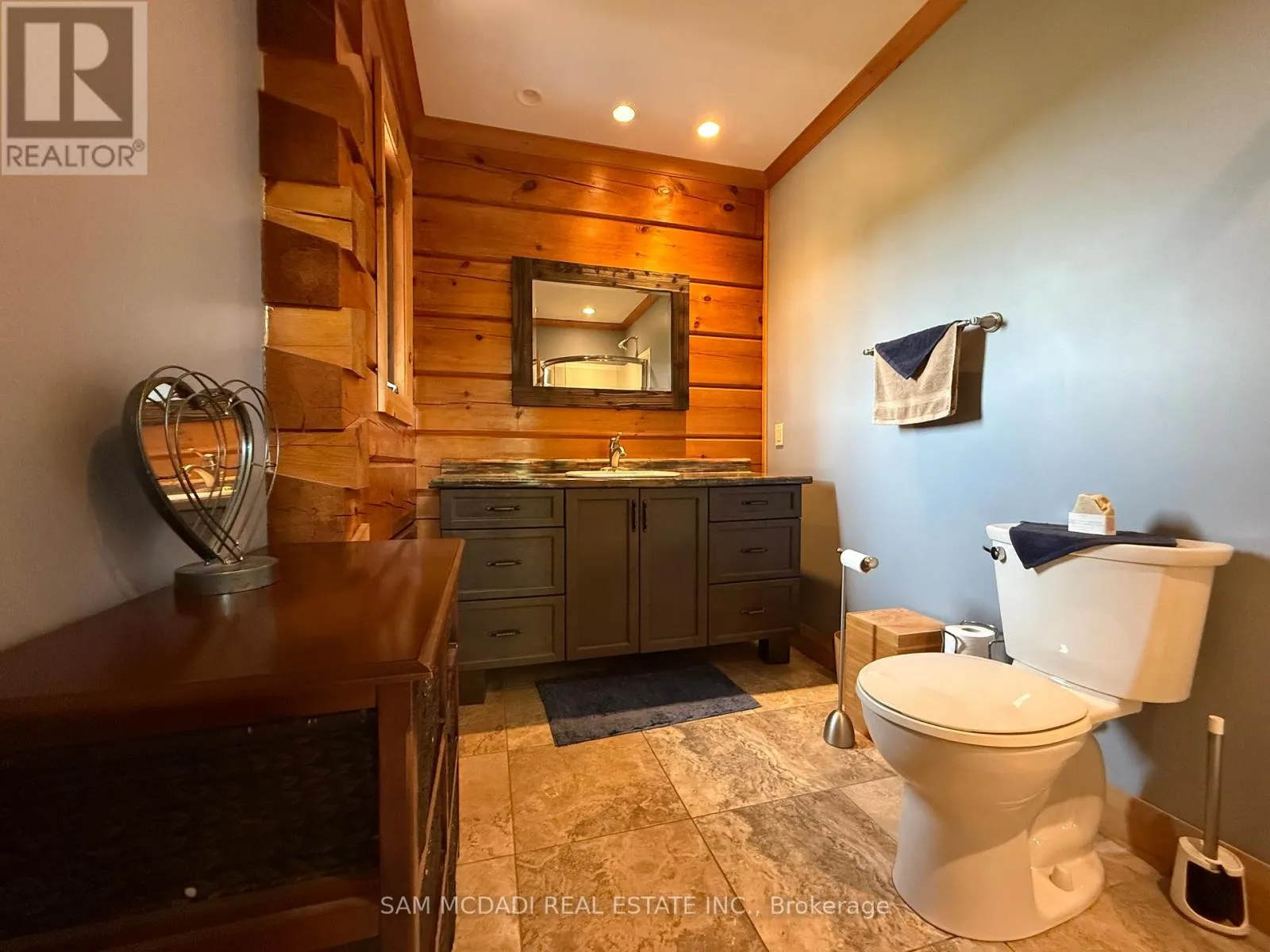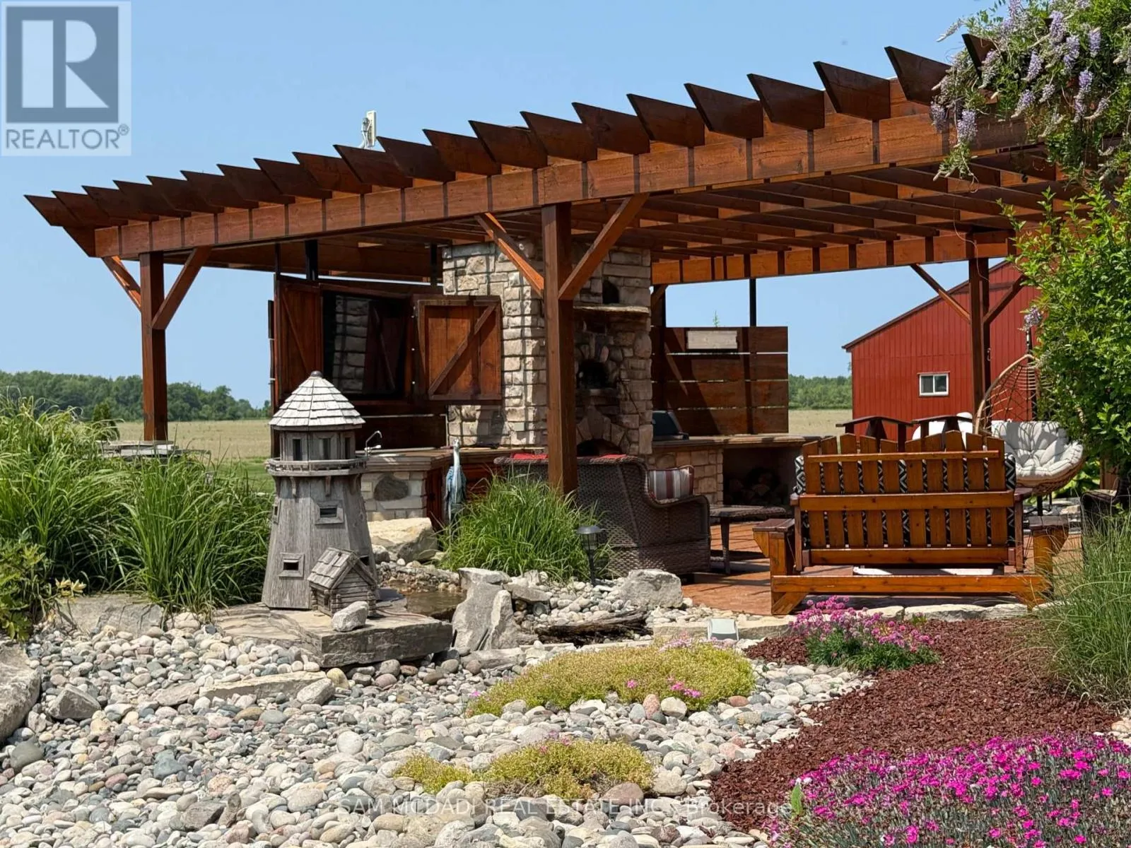 Cross Streets: Kinnaird Rd & Proof Line. ** Directions: Turn right to Kinnaird Rd from Proof Line. Welcome to this truly one-of-a-kind, custom-built log-style home set on a sprawling private lot - where rustic charm meets modern luxury. Perfectly situated just minutes from Grand Bend, Pinery Provincial Park, and Ipperwash Beach, this property is ideal as a full-time residence, weekend retreat, or investment getaway.Step inside to discover a stunning open-concept design highlighted by soaring 20-ft cathedral ceilings, heated floors on all levels, and abundant natural light. The finished lower level is an entertainer's dream - complete with a spacious recreation area, two additional bedrooms, a custom bar, and a pool table.Enjoy seamless indoor-outdoor living with a 12' x 49' back deck featuring a built-in outdoor kitchen, wood-fired pizza oven, and relaxing hot tub - all overlooking peaceful, tree-lined surroundings. The beautifully landscaped grounds include a decorative rock garden, water fountain, and inviting front porch for morning coffee.Recent upgrades include new windows (2022), dual A/C units for the main floor and loft (2023), and a new boiler (2023). A heated 3,710 sq.ft. workshop offers exceptional space for hobbies, business use, or storage. With both municipal and well water available, this property checks every box for comfort, versatility, and lifestyle appeal. (id:27476)