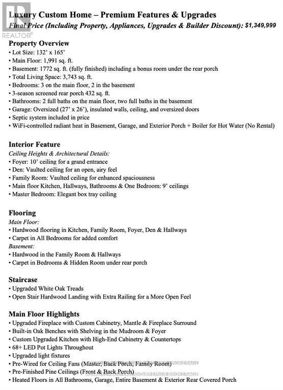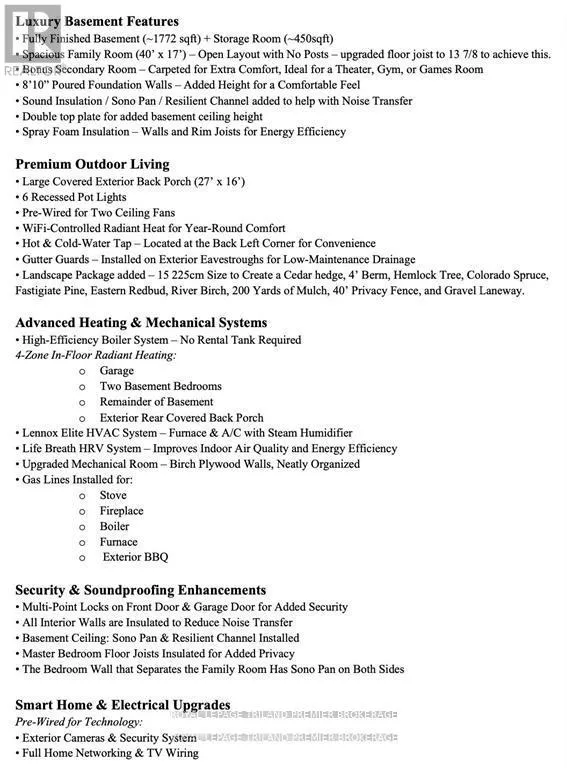 BETWEEN GILLESPIE AND PORT FRANKS ROAD This coastal-inspired luxury home offers every imaginable amenity and is currently under construction by Spheero Homes. Nestled in the trees, this 3+2 Bed home boasts over 3740 sq ft of finished expertly designed living space. As you approach the property, take in the beautiful curb appeal and serene surrounding. Enter through the front door into the grand foyer featuring 10ft ceilings and custom oak bench through to the open concept main level including generous kitchen boasting custom high-end cabinetry and countertops, island with breakfast bar, hidden prep area with additional sink and pantry; dinette with access to the backyard and covered porch; bright great room with soaring vaulted ceiling, and cozy gas fireplace with custom surround and mantle; convenient main floor laundry/mud room with custom storage and bench; 3-piece bathroom; & 3 spacious bedrooms including primary suite with box tray ceiling, walk-in closet, & spa-like ensuite with double sinks and tiled shower with glass enclosure. The fully finished lower level boasts an additional 2 beds, 2 baths, family room and potential bonus room. Enjoy the sights and sounds of nature on your covered front porch or on the 432 sq ft covered porch at the rear of the property. Features include: fully insulated 27'x26' garage with oversized 10'x9' doors, side mount garage door openers, hardwood flooring throughout main level and basement (excluding bedrooms, baths and flex basement room), heated floors in all bathrooms, oversized basement windows, 8'10" foundation walls for high basement ceiling, gutter guards, wifi controlled radiant in floor heat in garage, basement and rear porch, gas line for stove & BBQ, Lennox HVAC with steam humidifier, boiler with on demand hot water & more! Wiring roughed in for: future hot tub, future EV charger, 2 ceiling fans on rear porch, theatre & security systems. Rear cedar hedge with privacy fence. A must see home where no detail was missed! (id:27476)